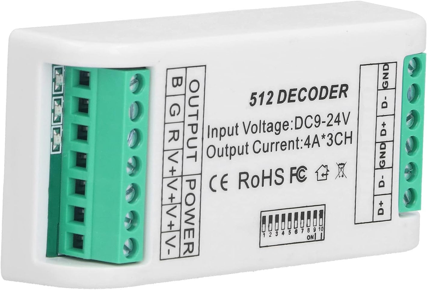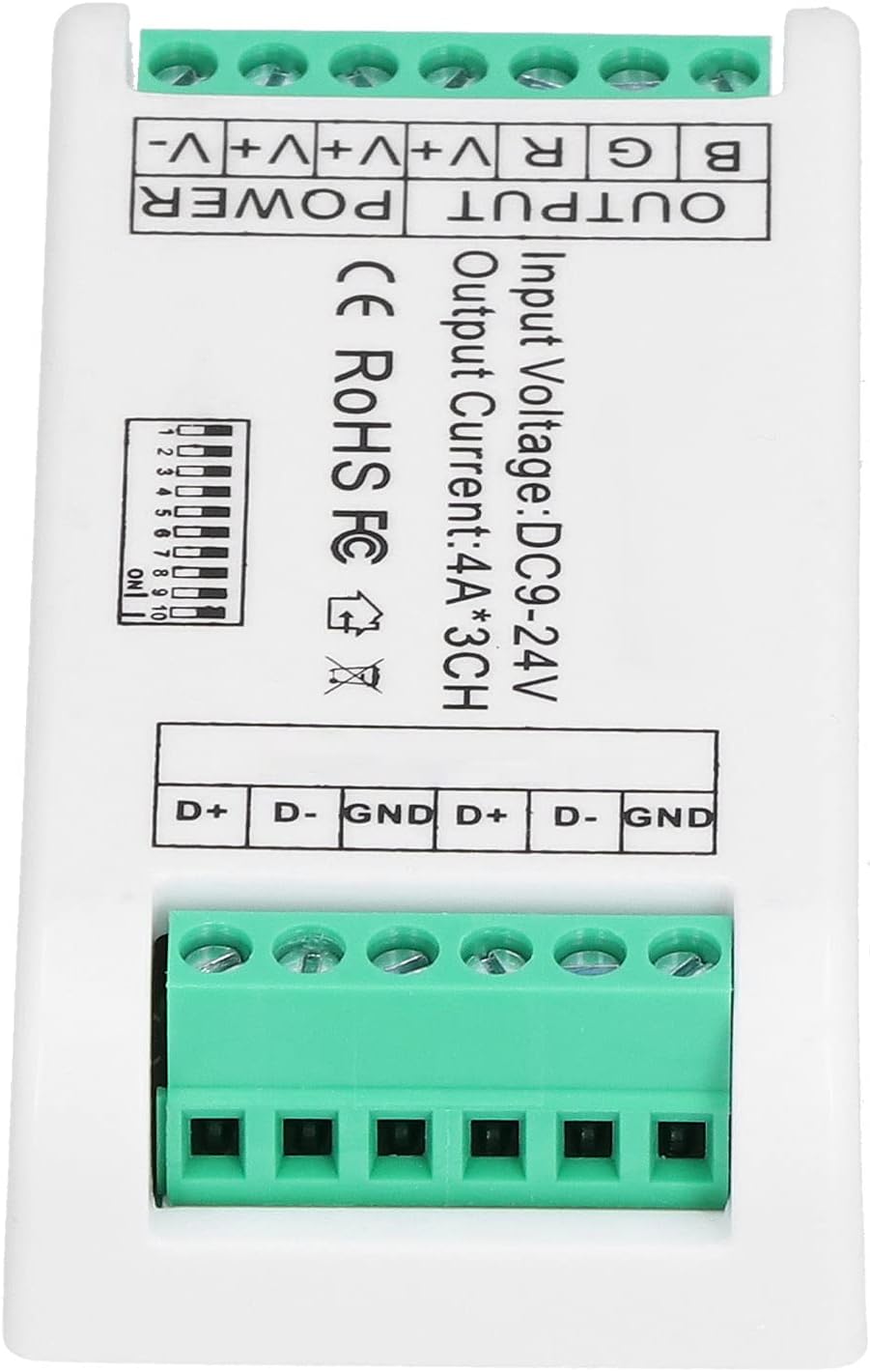 RGB Controllerled ST Controller DecoderRGB Demoder. 【Costruzione robusta】 - Costruito per durare, il decoder a LED è realizzato in plastica di alta qualità che non migliora la durata, ma garantisce anche una durata di una durata fino a 50.000 ore. Questa impressionante durata della vita significa che non dovrai preoccuparti di frequenti sostituti, rendendola una soluzione economica per i tuoi sistemi di illuminazione. Il suo design robusto garantisce la resilienza anche in condizioni impegn Controller B Controllo della tensione costante 9? 24V 【Uscita di corrente alta】 - Capace di produrre una potente corrente 4A, il nostro decodificatore RGB è progettato per gestire le applicazioni di illuminazione ad alta richiesta senza sforzo. Questa funzione lo rende ideale per l'uso con barre di luce a LED, moduli a LED, luci di lavatrice a parete e luci di palcoscenico, garantendo che le installazioni abbiano la potenza di cui hanno bisogno per funzionare in modo efficiente e coerente 【Compatibilità versatile】 - Il nostro decodificatore a LED si adatta senza sforzo a vari dispositivi con il suo input che si regola automaticamente a DC9V ~ DC24V. Con la possibilità di controllare l'illuminazione RGB su tre separati, questo incredibile dispositivo può funzionare sia a luci singoli che a lampade RGB senza problemi. Questa versatilità garantisce che qualunque sia le tue esigenze di illuminazione, il nostro decodificatore è di soddisfarli, fornendo illuminazione su una vast 【IP44】 - Progettato con il tuo in mente, il nostro controller RGB viene fornito con un IP44, che lo salvaguarda e. Ciò aggiunto di durata aiuta a mantenere prestazioni ottimali, anche in ambienti tutt'altro che ideali. Che si tratti di display interni o eventi esterni, stare tranquilli, le luci RGB brilleranno e rimarranno protette. La vita di per luce a DC9V ~ DC24V 3 può collegare corrente. decodificatore facile e plastico automaticamente 【Facilità d'uso】 - Con un controllo di tensione costante, il controller a strisce LED è incredibilmente semplice da utilizzare. La configurazione intuitiva significa che è possibile collegare i tuoi accessori di illuminazione e iniziare a godere di colori vivaci ed effetti dinamici quasi istantaneamente. configurazione complicata o manuali pesanti: semplici funzionalità che ti consentono di farlo su ciò che conta davvero: goderti il tuo spazio meravigliosamente illuminato. Tipo di