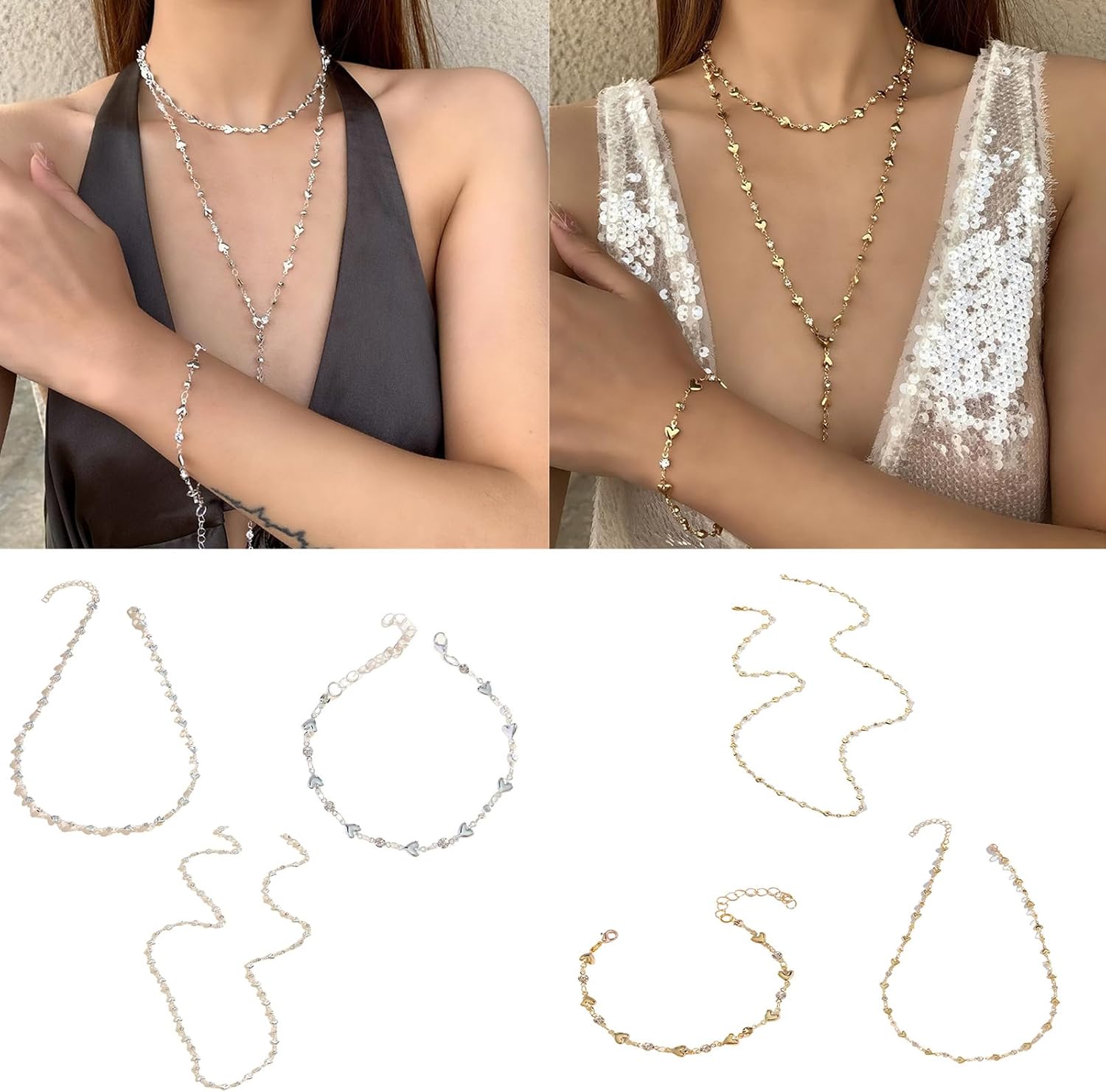 Set 3 eleganti collane e braccialetti con catena a Y per le donne, gioielli per feste, giornate calde, design regolabile, catena a clavicola Caratteristiche: Migliora tuo stile con questa lussuosa collana a forma Y in zircone con catena regolabile da 80 cm, realizzata in lega prima qualità per un'eleganza duratura e maggiore resistenza all ossidazione versatile set gioielli da 3 comprende catena lunga alla clavicola, collana corta e un braccialetto, tutti progettati con struttura leggera estensioni flessibili vestibilità perfetta. Perfetto per le donne alla che cercano accessori sofisticati che trasformino perfettamente dall'abbigliamento da ufficio alle feste e agli eventi festivi nelle giornate calde suo design minimalista a forma Y abbina abiti con scollo a V, top con spalle scoperte e abiti formali, rendendolo ideale per matrimoni, anniversari o gite informali del fine settimana. Questo set gioielli anallergici combina eleganti motivi a cuore con pratica possibilità regolazione, offrendo soluzione regalo premurosa per compleanni, lauree o occasioni sentimentali. Specifiche: Materiali: lega Stili lunghi Circonferenza: 80 cm/31,50 pollici Peso: 13 g Modello corto Lunghezza: 45+5 cm/17,71+1,96 pollici Peso: 8 g Misura del braccialetto: 17+5 cm/6,69+1,97 pollici Peso: 3 g Tipo: oro/argento La confezione include: 3 set eleganti collane e bracciale in lega a forma Y Nota: prega consentire errori 1-2 cm dovuti alla misurazione manuale. A causa delle differenze tra i diversi monitor, l'immagine potrebbe non riflettere colore effettivo articolo