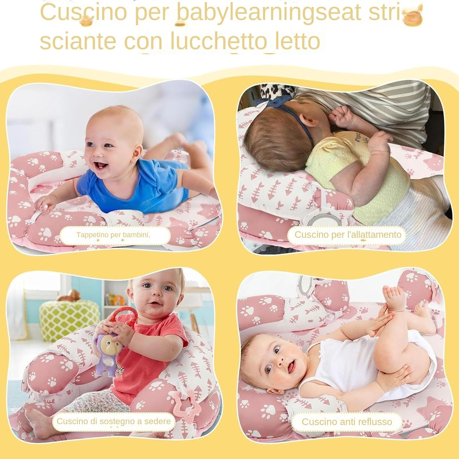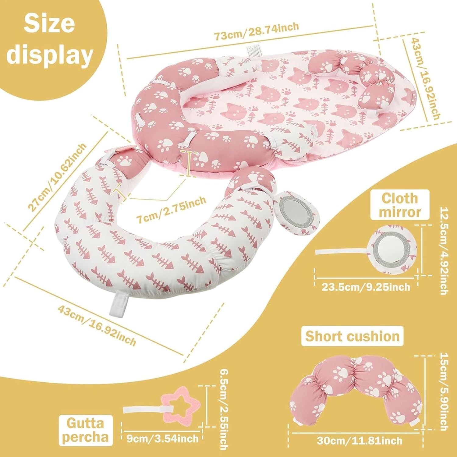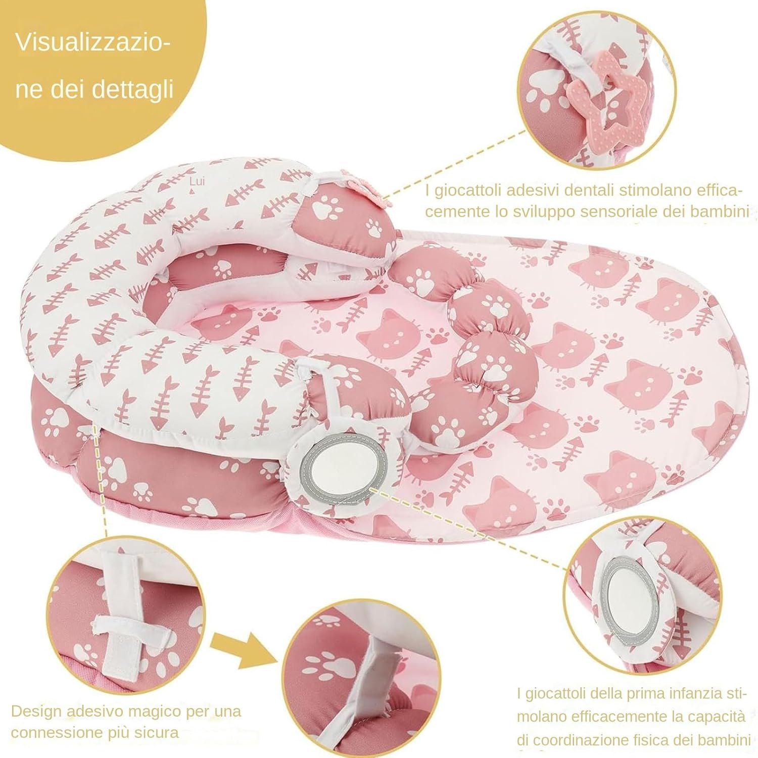 Adattamento flessibile: questo tappetino staccabile e di cuscini si evolve con le esigenze del tuo bambino, allineandosi con le loro fasi di sviluppo per fornire supporto affidabile durante il di pancia e le routine di seduta, promuovendo in modo efficiente la crescita delle abilità motorie fondamentali Soluzione di pulizia pratica: realizzata con tessuto tocco delicato che è sia traspirante che lavabile, abbinato a robuste superfici pulite di pulizia per mantenere l'igiene, offrendo al contempo un supporto aziendale affidabile per un uso esteso Apprendimento interattivo di gioco: fornisce un sicuro e rilassante per le gengive per dentire, incoraggiando le capacità di afferrare e la formazione di coordinamento durante il processo di gioco multisensoriale progettato per migliorare le pietre miliari dello sviluppo Design a misura di viaggio: il mat di di pancia versatile fornisce funzionalità senza sforzo, all'interno o all'esterno, con una struttura pieghevole che supporta l'alimentazione e le esigenze di gioco durante il viaggio Pratica baby shower presente: progettata per supportare la crescita del tuo bambino, questa combinazione di tappetini e cuscini funge da baby shower pratico presente, allentando le sfide genitoriali e adattandosi perfettamente per l'uso di bambini durante il processo di gioco attivo