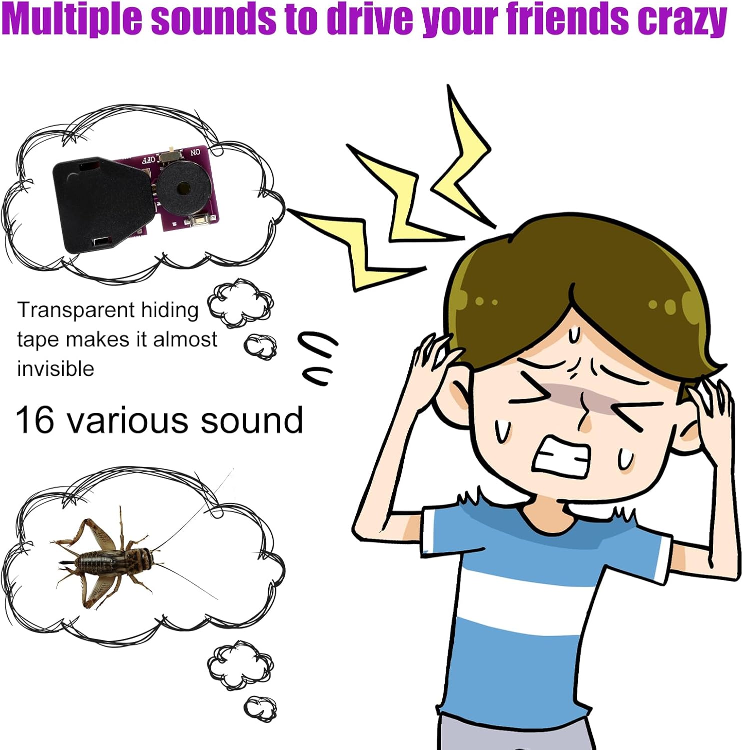 Contenuto della confezione: riceverai 3 gadget per creatori di rumore di cricket che producono 16 suoni diversi. È un ottimo strumento per divertirsi con i tuoi amici e partner in qualsiasi occasione speciale. Esperienza divertente: il noisemaker può emettere suoni di cricket, cinguettio di uccelli, suoni di telegrafo, suoni di allarme, bip e altro ancora, rendendo la tua festa o ufficio più vivace e portando risate a tutti con questi piccoli gadget. Facilmente occultabile: le dimensioni compatte e il design di questi gadget li rendono incredibilmente facili da nascondere. Puoi metterli in un cassetto, sotto una scrivania o altrove. Regalo perfetto per bavaglio: con un set di 3 macchine, è possibile effettuare più suoni contemporaneamente. Fai impazzire i tuoi amici con risate o fastidi: è il regalo perfetto per scherzi o scherzi. Ampia applicazione: queste cose per la produzione di rumore sono pronte per qualsiasi luogo e occasione. Usali alle feste di compleanno, in ufficio, a casa.