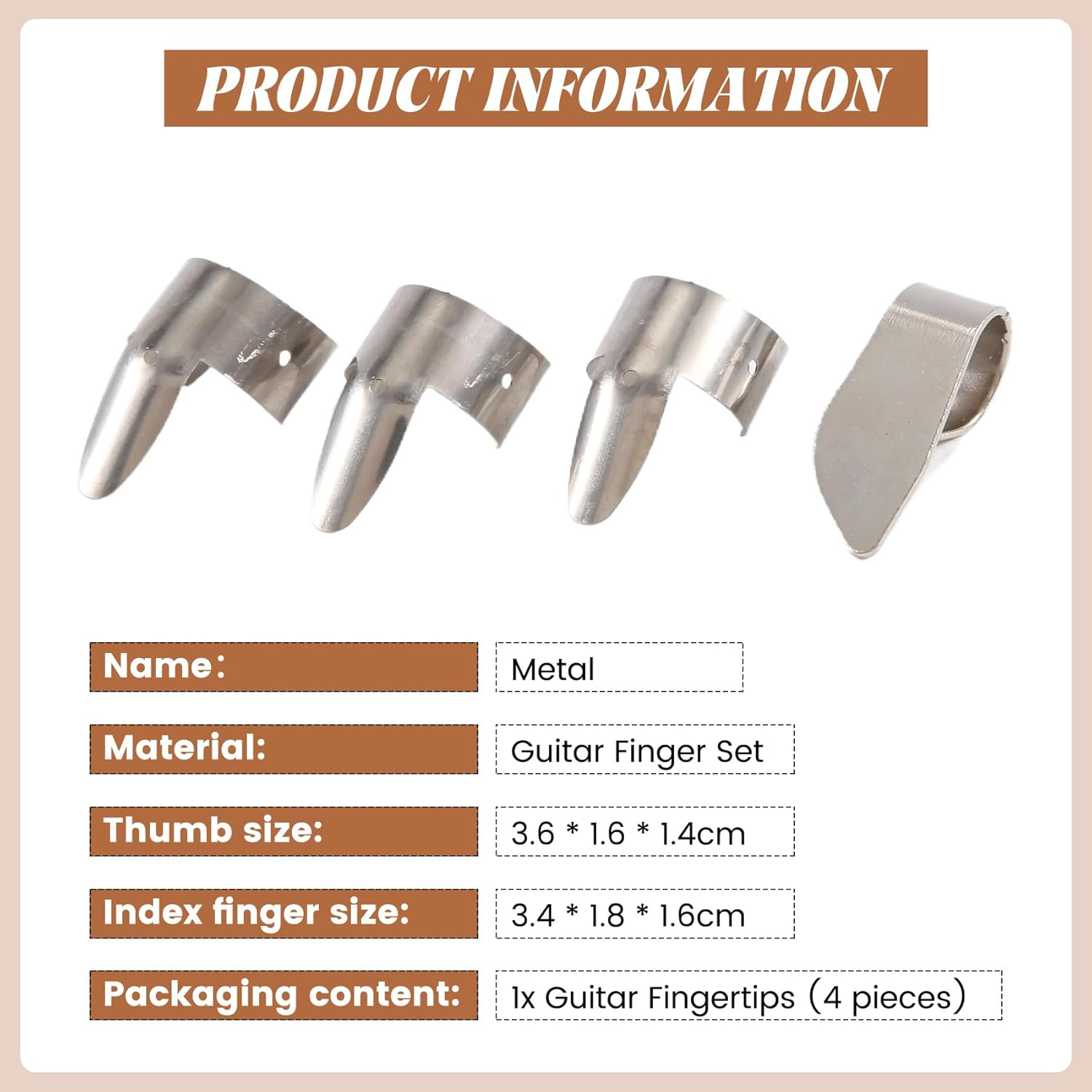Materiale: metallo dimensione: pollice: 3,6 * 1,6 * 1,4 cm colore: Adatto per suonare la chitarra rock. Indice: 3,4 * 1,8 * 1,6 cm