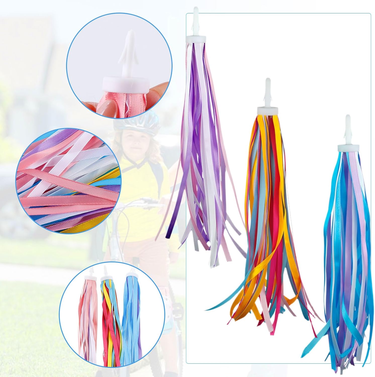 【Lista di imballaggio】Riceverai 3 paia di streamer decorativi per bici per bambini di diversi colori, lunghezza 25 cm per le cinghie, lunghezza 2 cm per il manico in plastica, adatti al manubrio della maggior parte delle bici, tricicli e scooter per bambini. 【Alta qualità】 Frangia del manubrio realizzata in resistente poliestere e plastica, ricca di colori e lucida come un arcobaleno, morbida e liscia e per la decorazione delle maniglie della bicicletta, aggiunge più divertimento e bellezza durante la guida. 【Facile da installare】 Gli streamer per manubrio della bici erano molto facili da installare, basta collegarli ai lati del manubrio! 【Ampia gamma di usi】 I pompon per manubrio sono perfetti per decorare biciclette, tricicli e scooter per bambini, rendendoli più morbidi, più attraenti e più belli e aggiungendo divertimento e bellezza. Può essere utilizzato anche per forniture per feste, bellissime decorazioni per l'artigianato e altro ancora. 【Regalo perfetto】 Nappe del manubrio della bicicletta dai colori meravigliosi e lucide più accattivanti per i bambini. Queste cinghie per manubrio da bici per bambini sono un fantastico regalo per ogni bambino con una bicicletta!