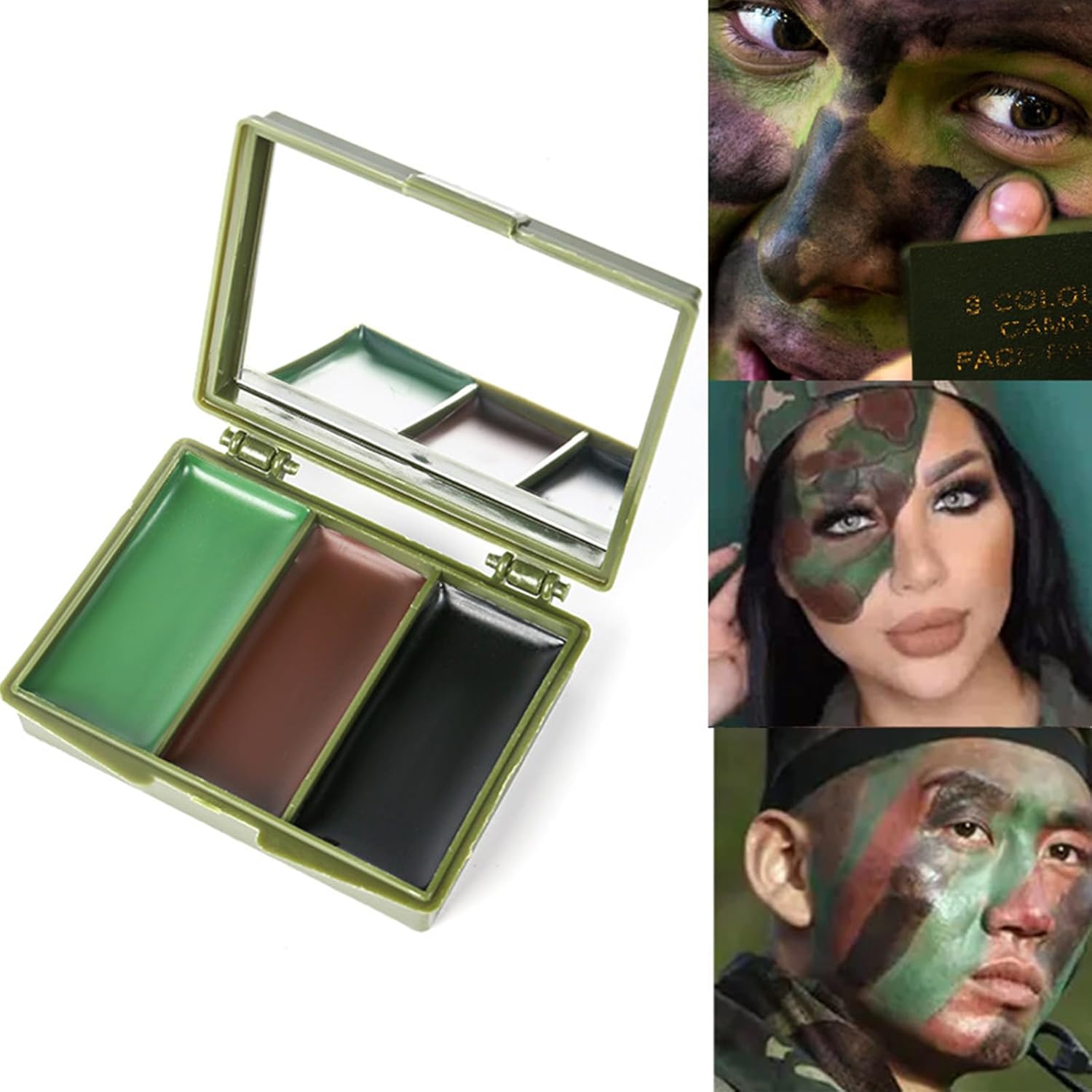 Offre camuffamento ottimale con tre colori ed effetto camaleonte, garantendo prestazioni affidabili in avventure all'aperto, sopravvivenza e attività tattiche. È resistente al sudore, mantenendo la sua efficacia durante le attività fisiche all'aperto. La sua dimensione compatta, con un coperchio che impedisce sporco, rende facile da trasportare in tasche o borse. Include uno specchio per un'applicazione più conveniente, ideale per prendere qualsiasi posto in cui è necessario camuffare rapido ed efficace. Ha una consistenza delicata e cremosa che viene applicata senza sforzo, consentendo disegni precisi. Viene facilmente eliminato con acqua calda e sapone, senza lasciare gli sprechi e la sua applicazione non genera una sensazione di pesantezza o torte. È versatile per diverse occasioni, come la caccia, la pesca e le vacanze di Halloween o sport come baseball, calcio o hockey. Viene applicato su viso, mani e collo per ottenere un camuffamento completo.