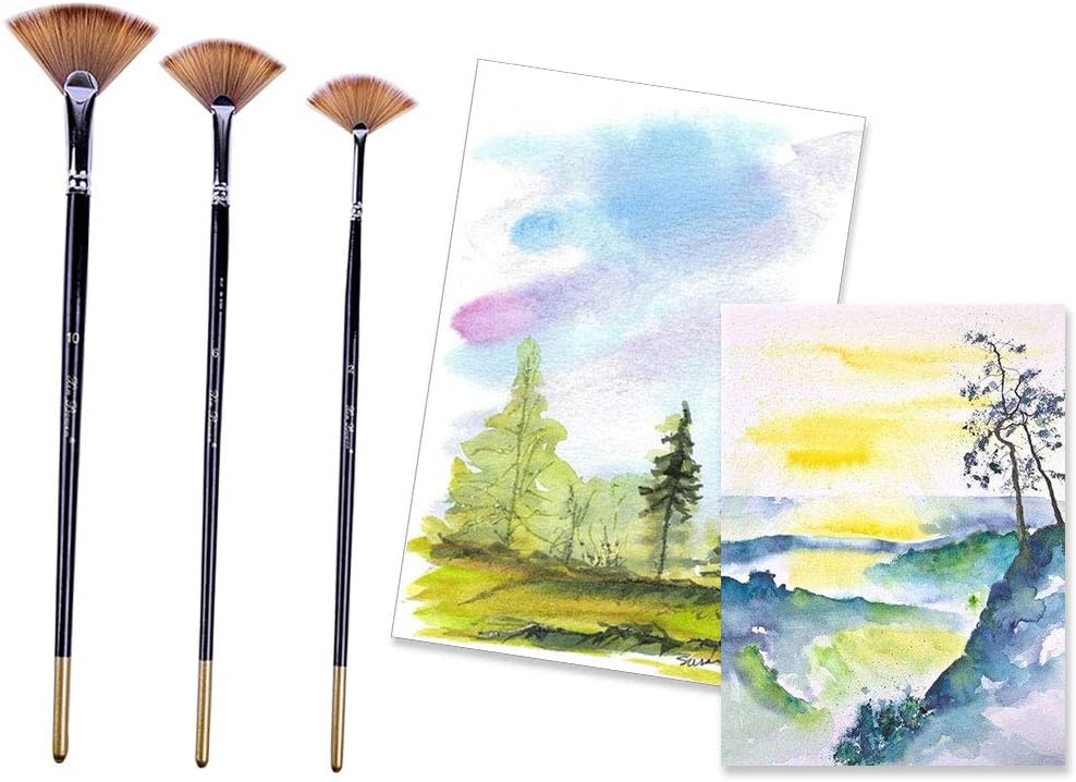 3 spazzole a forma di ventaglio in rame Tubo in rame antiruggine + manico in legno: setole morbide e flessibili, manico in legno per un controllo e una presa ottimale e una grande sensazione al tatto Ampia varietà: questi pennelli sono ideali per acquerello, olio, pittura acrilica, corpo, unghie, pittura del viso, miniatura, modello, ceramica, pittura artistica. Ideale per bambini, principianti, artisti o chiunque si diverta a dipingere Versatilità: questo fantastico set di 3 pennelli è per qualsiasi artista, dai principianti ai professionisti o al tipo di pittura. Che siate pennelli per hobby, pennelli per bambini o pennelli, questo set di pennelli per artisti vi piacerà Facile da pulire: per pulire, passare i pennelli sotto l'acqua calda, lavare la vernice e utilizzare delicatamente le dita per rimodellare