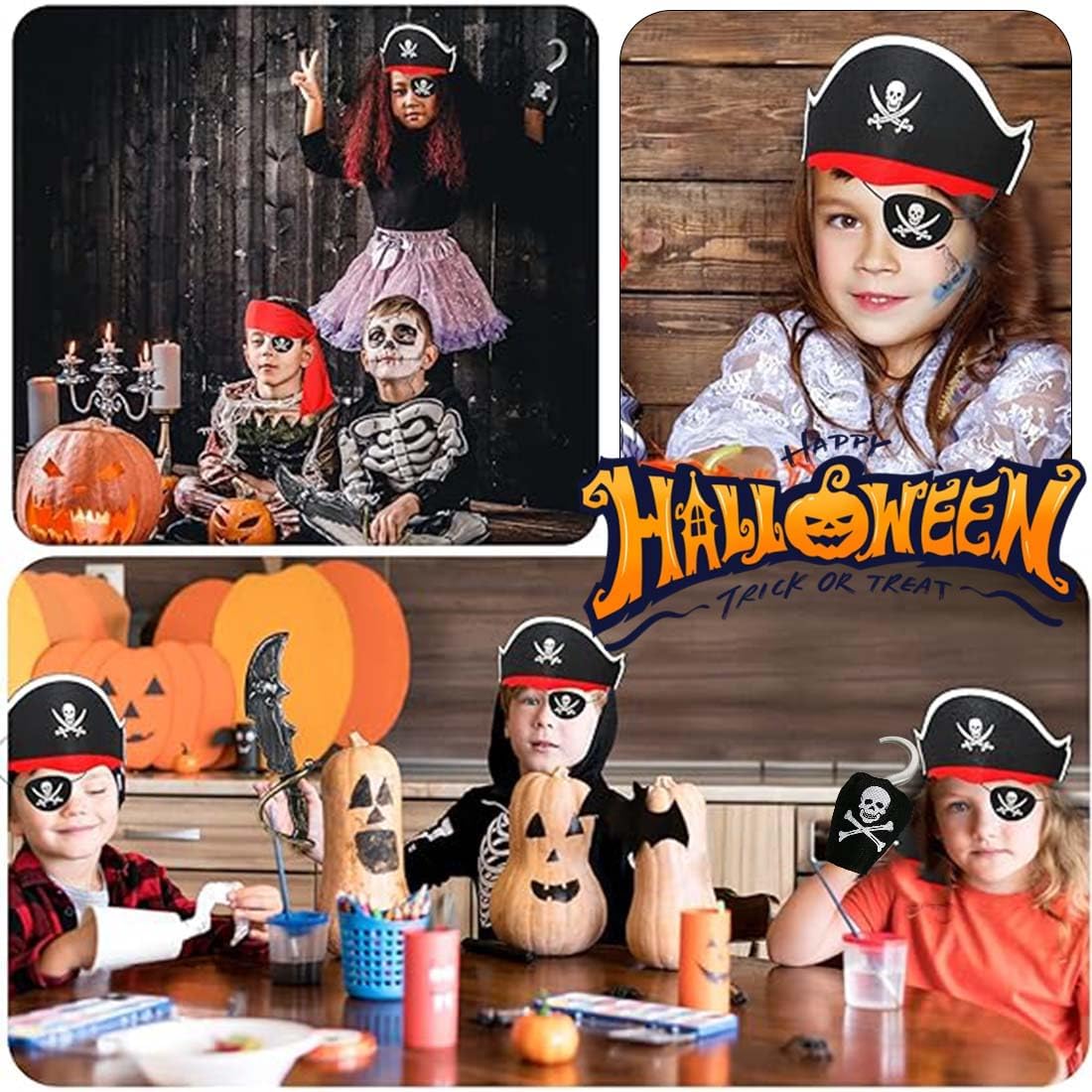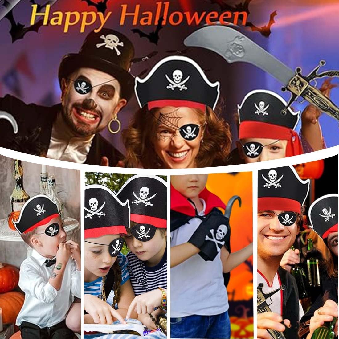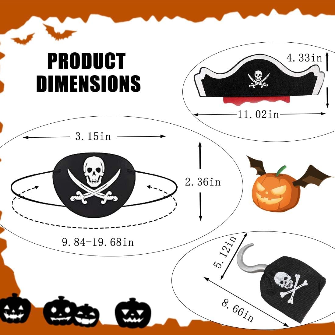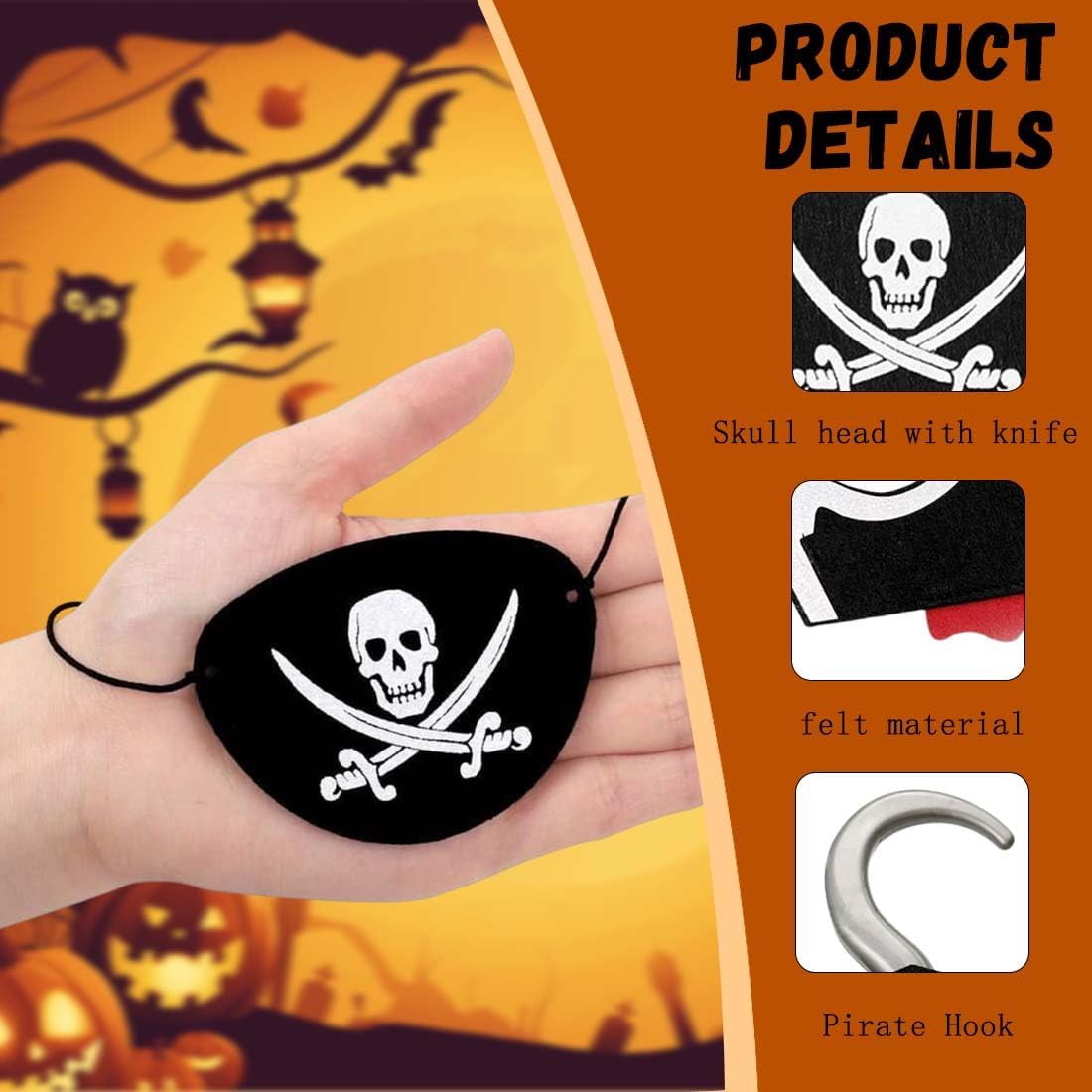 【Contenuto del set】riceverete tre pezzi di accessori per il travestimento da pirata, ci sono i classici cappelli da pirata, oltre a ganci di stoffa da pirata con motivi a teschio e maschere da pirata con un occhio solo, perfetto per bambini, ragazzi, ragazze e adulti. 【Materiali di alta qualità】Accuratamente realizzati con attenzione ai dettagli, il nostro set pirata utilizza materiali di alta qualità per garantire durata e comfort. Materiale resistente che assicura che i tuoi accessori mantengano la loro lucentezza attraverso innumerevoli viaggi. 【Design unico】cappelli pirata, gancio impronte di mano, patch occhio etichetta cranio, questi disegni ripristinare l'immagine dei pirati, ogni accessorio è realizzato con cura, cappello da pirata con attenzione ai dettagli e autenticità, i nostri accessori sono progettati per distinguersi. 【Adatto a tutte le età】il cappello da pirata per bambini e le maschere per gli occhi sono progettate in dimensioni universali per cosplay, feste di Halloween, feste a tema pirata, Giornata Mondiale del Libro, spettacoli di scena scolastica e possono farti risaltare tra la folla, dandoti un tempo meraviglioso della festa. 【Scatena il tuo capitano interiore】Pronto a gridare "Ahoy!" e prendere in carico il tuo equipaggio? Con questi accessori pirata, puoi giocare il ruolo di un capitano pirata, fingere di navigare sul mare e goderti il divertimento della caccia al tesoro.