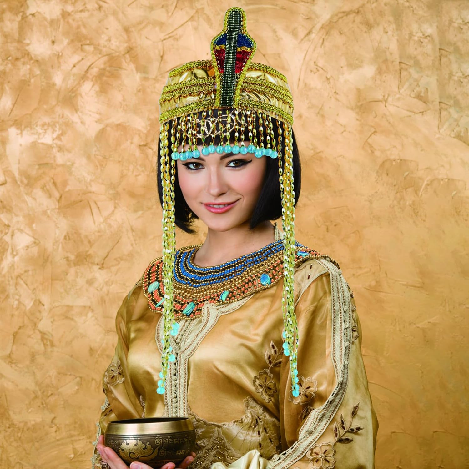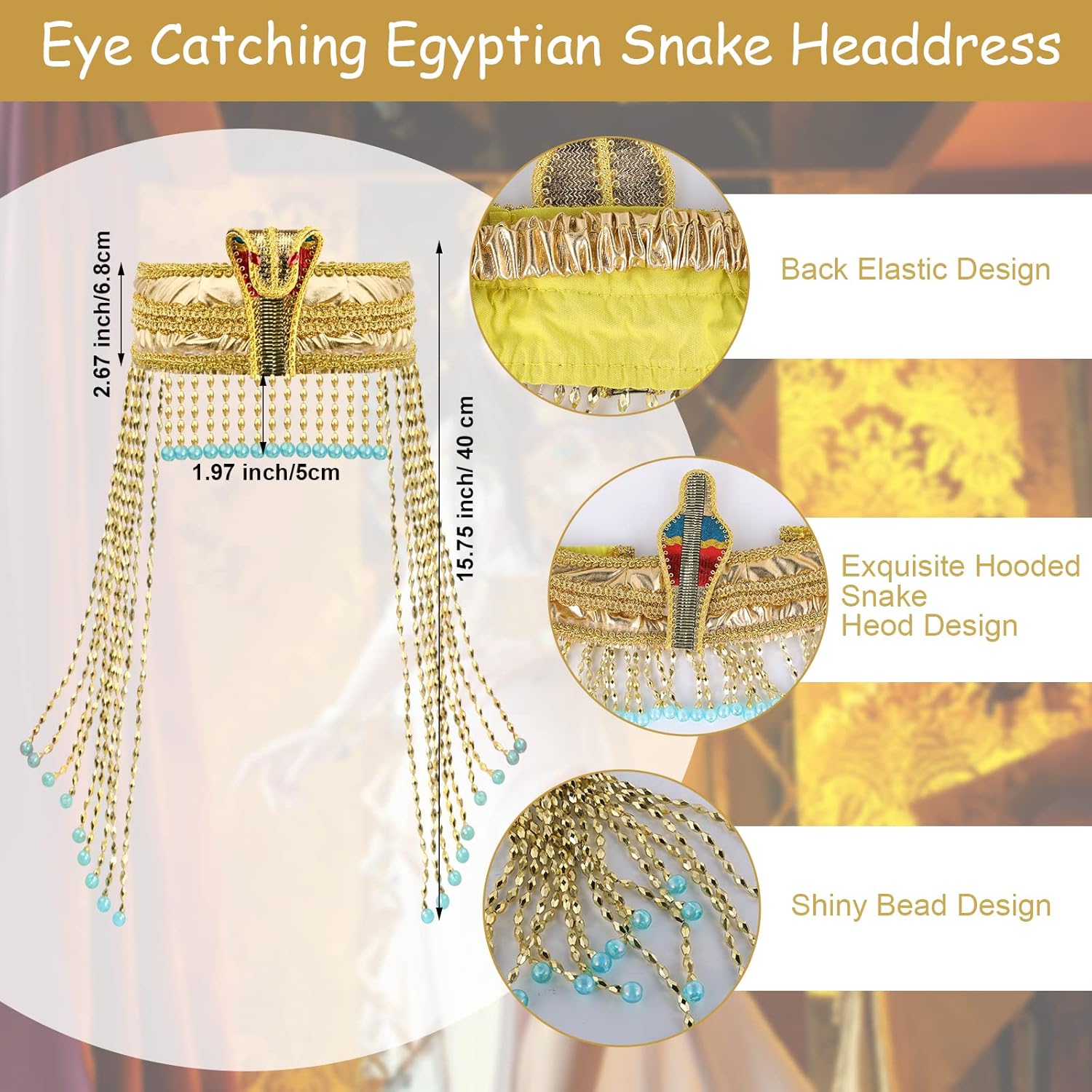 3 Pezzi Accessori per Costume Egiziano da Cobra Egiziano, Corona della Regina d'Egitto, Bracciale da Serpente Dorato, Bracciale a Serpente, Costume Cleopatra della Regina del Nilo