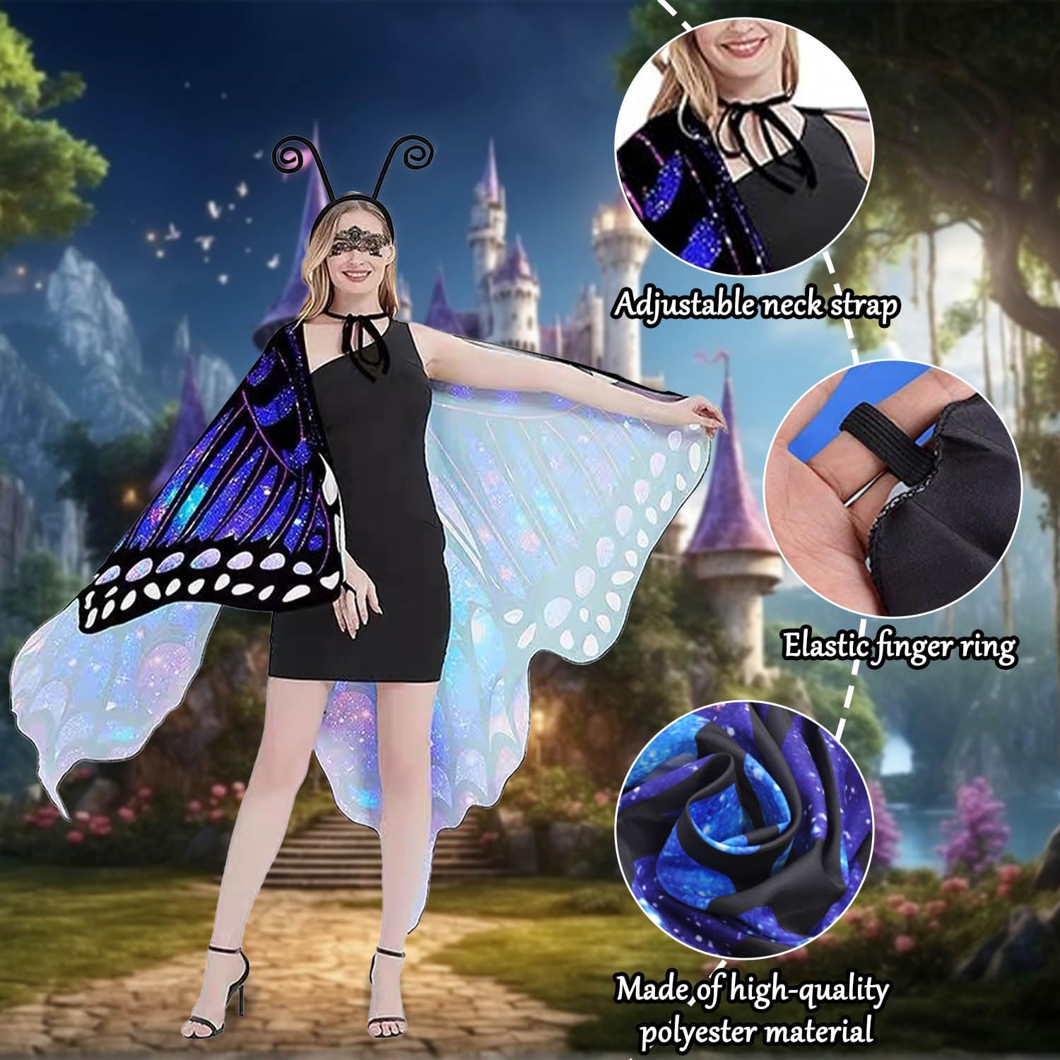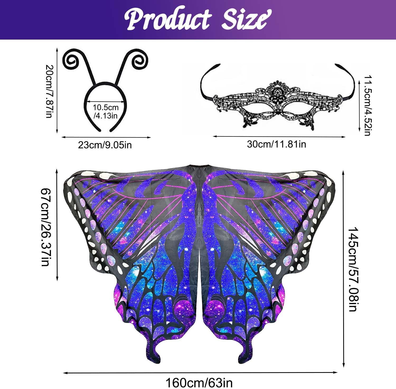 🦋【Costume da farfalla donna】Confezione contiene 1 pezzo costume farfalla donna, 1 pezzo di fascia per capelli e 1 pezzo di maschera. Lo scollo è dotato di fascia elastica per regolare liberamente la taglia. 🦋【Materiale qualità】Ali di farfalla sono realizzati in tessuto chiffon, morbido e delicato sulla pelle, traspirante ed elastico. La dimensione può essere regolata liberamente senza farti sentire a disagio. 🦋【Facile da indossare e da togliere】Questo ali farfalla adulti da indossare e da togliere, basta indossare il colletto e avvolgere l'elastico attorno alle dita. 🦋【Motivo a farfalla】Questo ali da farfalla è ispirato alle farfalle in natura. La forma e il motivo sono leggeri e belli come le ali di una farfalla. 🦋【Occasioni multiple】Questo ali farfalla è perfetto per feste di Halloween, feste di carnevale, feste, feste in spiaggia, oggetti di scena per la danza, servizi fotografici, feste di famiglia e feste in maschera. Può anche essere regalato come regalo unico ad amici, familiari e colleghi.