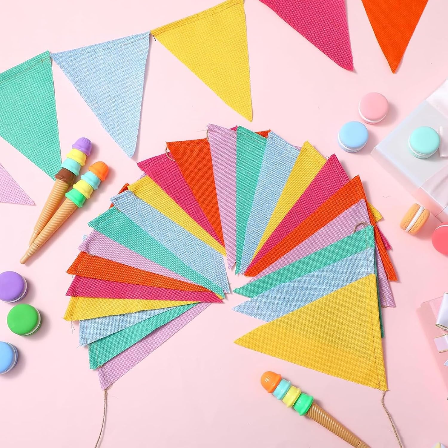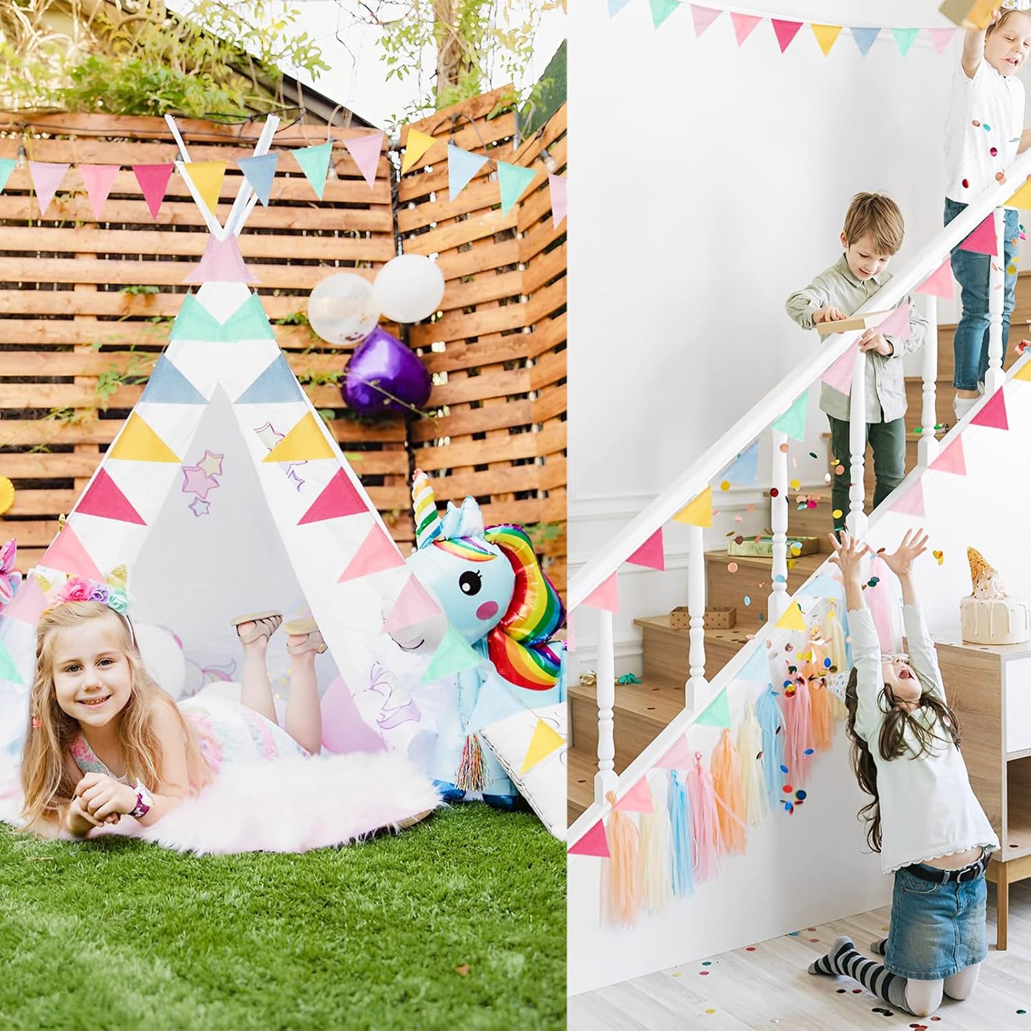 Quantità e Dimensioni Della Confezione:Riceverai 3 catene di bandierine, ciascuna con 12 pezzi di bandierine colorate, e le dimensioni di un singolo pezzo sono 12.5 X 17 cm, perfette per decorare la tua festa, le attività all'aperto o il giardino. bandierine triangolari colorate rende la tua festa piena di colore e vitalità Colore Brillante:Le bandierine triangolari sono realizzate con materiali di alta qualità, comodi, atossici e inodori. Le bandierine compleanno multicolori possono creare un'atmosfera allegra per la tua festa e le bandierine colorate portano divertimento e sorpresa alla tua festa di compleanno all'aperto Facile da Usare:Tutte queste 12 bandierine triangolari sono collegate tramite corde e possono essere facilmente agganciate insieme per adattarsi a diverse lunghezze. Puoi collegare le bandierine triangolari insieme in base alla lunghezza desiderata o appenderle separatamente. La distanza tra queste bandierine colorate può essere regolata in base alle tue esigenze Resistente:Le bandierine triangolari colorate per esterni sono fissate tramite corde, che sono resistenti e non facili da danneggiare. bandierine colorate decorazioni è molto robusto e non si rompe facilmente, quindi può essere conservato e riutilizzato a lungo. Questo festone colorato non è adatto solo per esterni, ma è anche piacevole alla vista in interni Scene Applicabili:Questo bellissimo e colorato bandierine compleanno è adatto per decorare compleanni, aule scolastiche, riunioni di classe, matrimoni, baby shower, Pasqua, giardini o altre feste. Puoi anche decorare questo bandierine colorate sulla parete o sul soffitto di casa tua o della cameretta dei bambini per aggiungere colori vivaci alla tua casa o stanza