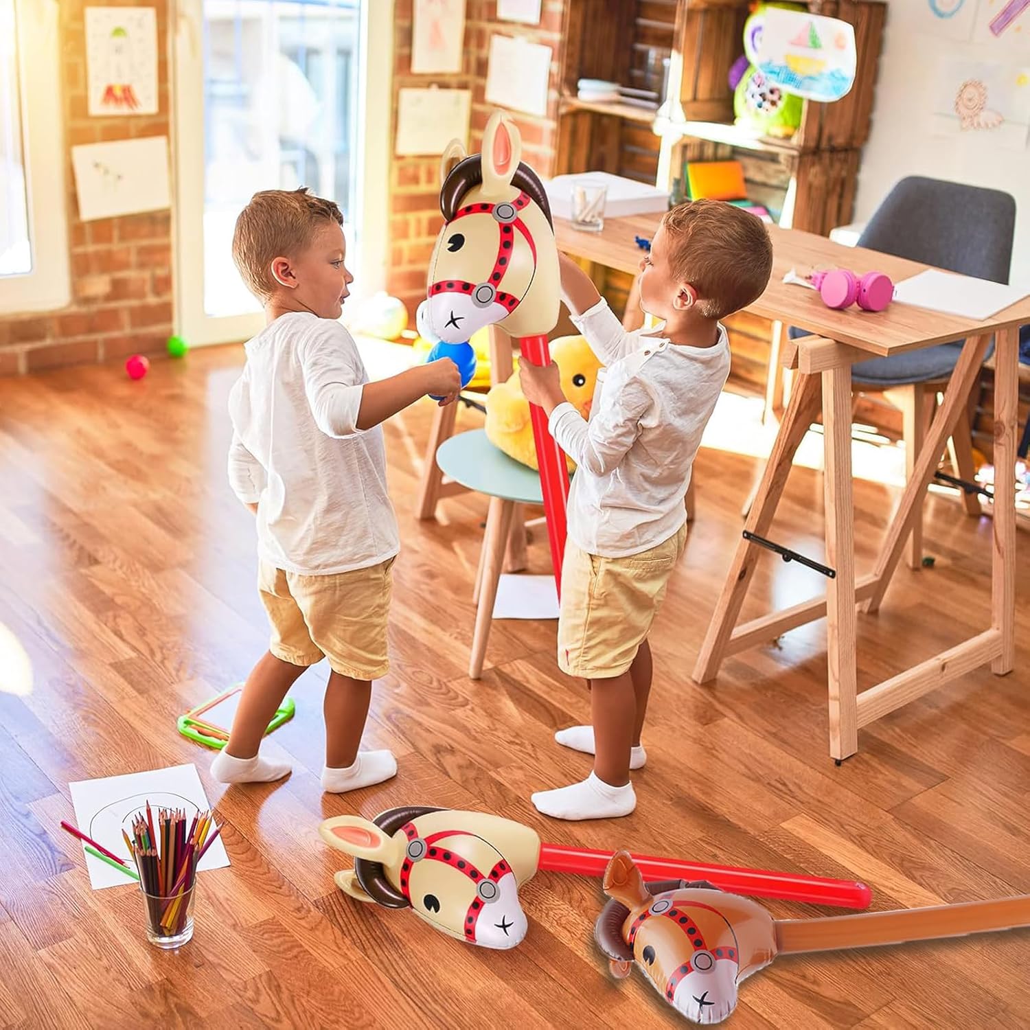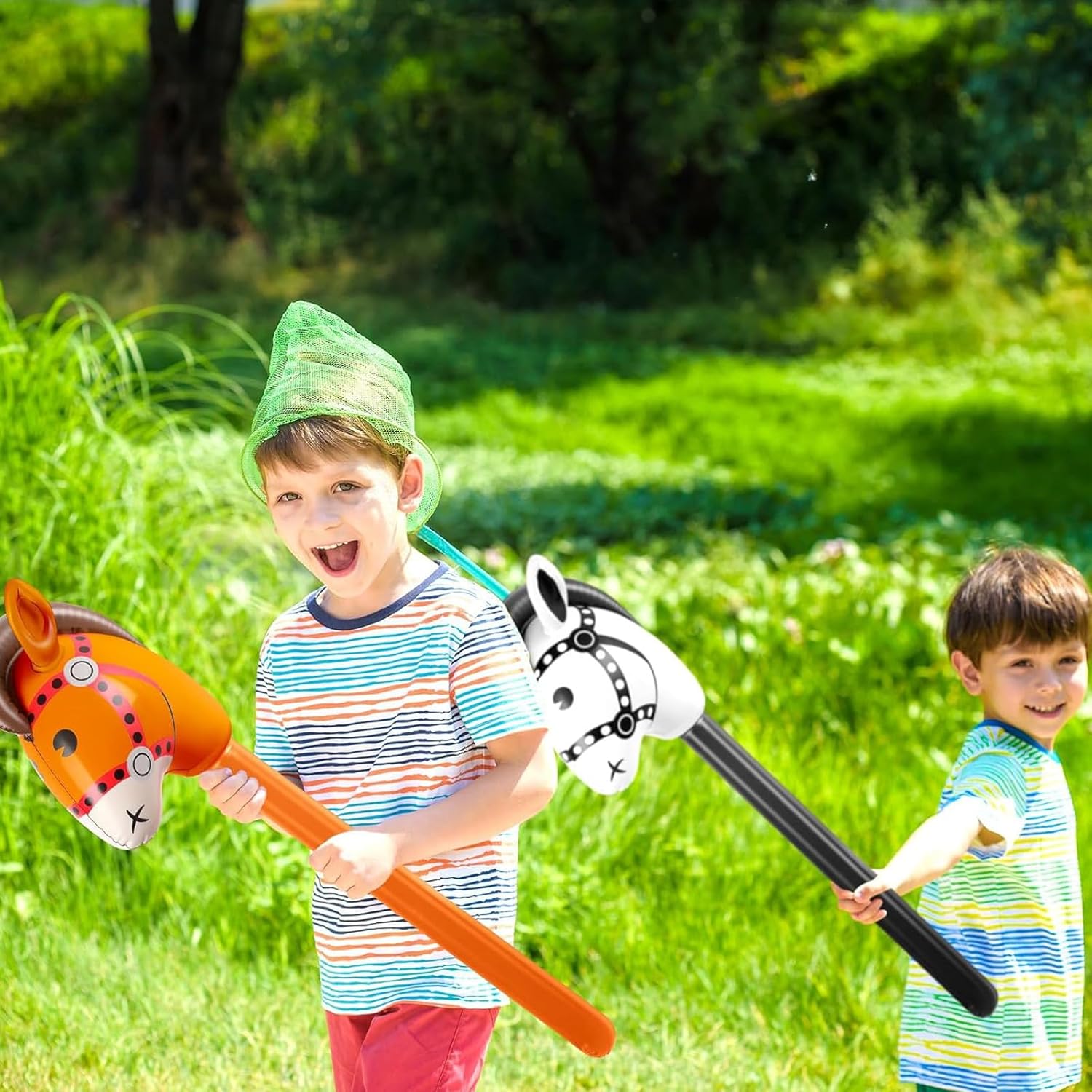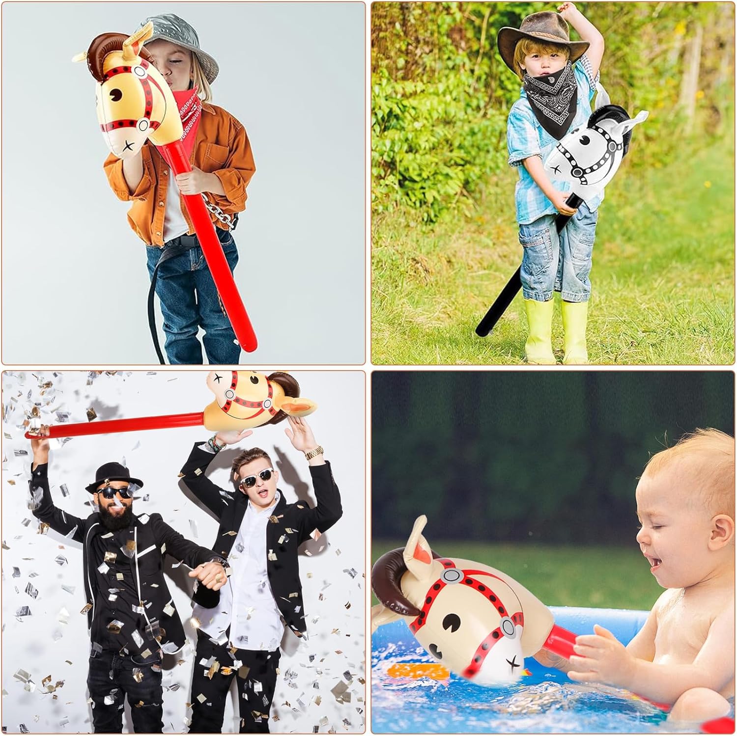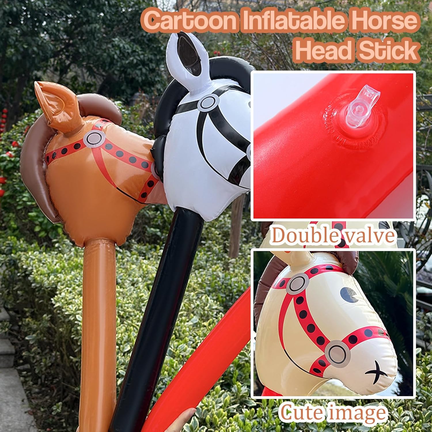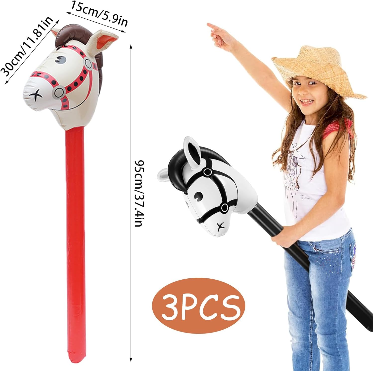 Materiali di Alta Qualità: Bastone da cavallo gonfiabile è realizzato in PVC, flessibile e robusto. Offre un'eccellente resistenza all'usura e all'acqua, e non si rompe facilmente anche dopo un uso ripetuto. cavallo giocattolo offre un'esperienza di intrattenimento duratura, confortevole e sicura, e i bambini possono giocare in tutta tranquillità in diversi ambienti, sia all'interno che all'esterno Dimensioni Perfette: Gonfiabile per bambini è lungo circa 95 cm dopo il gonfiaggio. È progettato per l'altezza dei bambini, facile da guidare e da tenere in mano, ed è facile e divertente da usare. Bastone da Cavallo Gonfiabile tiene conto sia della praticità che del divertimento, consentendo ai bambini di provare un maggiore senso di partecipazione e un'esperienza immersiva nel gioco Aspetto Raffinato: Giocattoli Gonfiabili adotta un design vivace e carino a forma di cavallo, con colori vivaci e brillanti, e l'effetto visivo complessivo è più vivido. bastone da cavallo gonfiabile non è solo un giocattolo divertente, ma anche una decorazione ideale per le feste, aggiungendo un'atmosfera sognante e una bellezza artistica alle attività dei bambini Facile da Usare: Cavallo giocattolo è dotato di un foro di gonfiaggio standard nella parte inferiore. Basta collegare la pompa manuale e gonfiarlo facilmente in pochi clic, per un utilizzo rapido. Dopo aver utilizzato gonfiabile per bambini, basta premere la base per sgonfiarlo rapidamente. Il contenitore pieghevole non occupa spazio, il che lo rende comodo da trasportare, migliorando notevolmente la praticità e l'efficienza d'uso Contenuto Della Confezione: 3 pezzi di Bastone da Cavallo Gonfiabile, ciascuno con un'altezza di 95 cm. Accessori Per Giochi Di Cavalli è adatto a una varietà di occasioni, come feste di compleanno, feste di Natale, feste a tema equestre, carnevali, attività natalizie, ecc. Può anche essere utilizzato come galleggiante da piscina, scenografia o come accessorio per giochi all'aperto per soddisfare diverse esigenze di intrattenimento