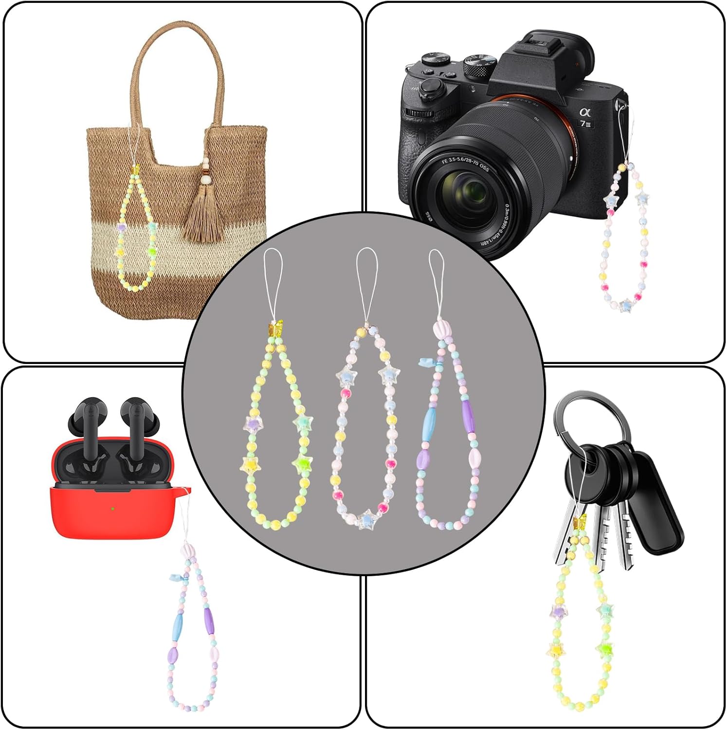 Specifiche del prodotto Materiale: Acrilico Colore: Multicolore Dimensioni: Lunghezza circa 20 cm La confezione include: 3 * Cordino per Cellulare Perline