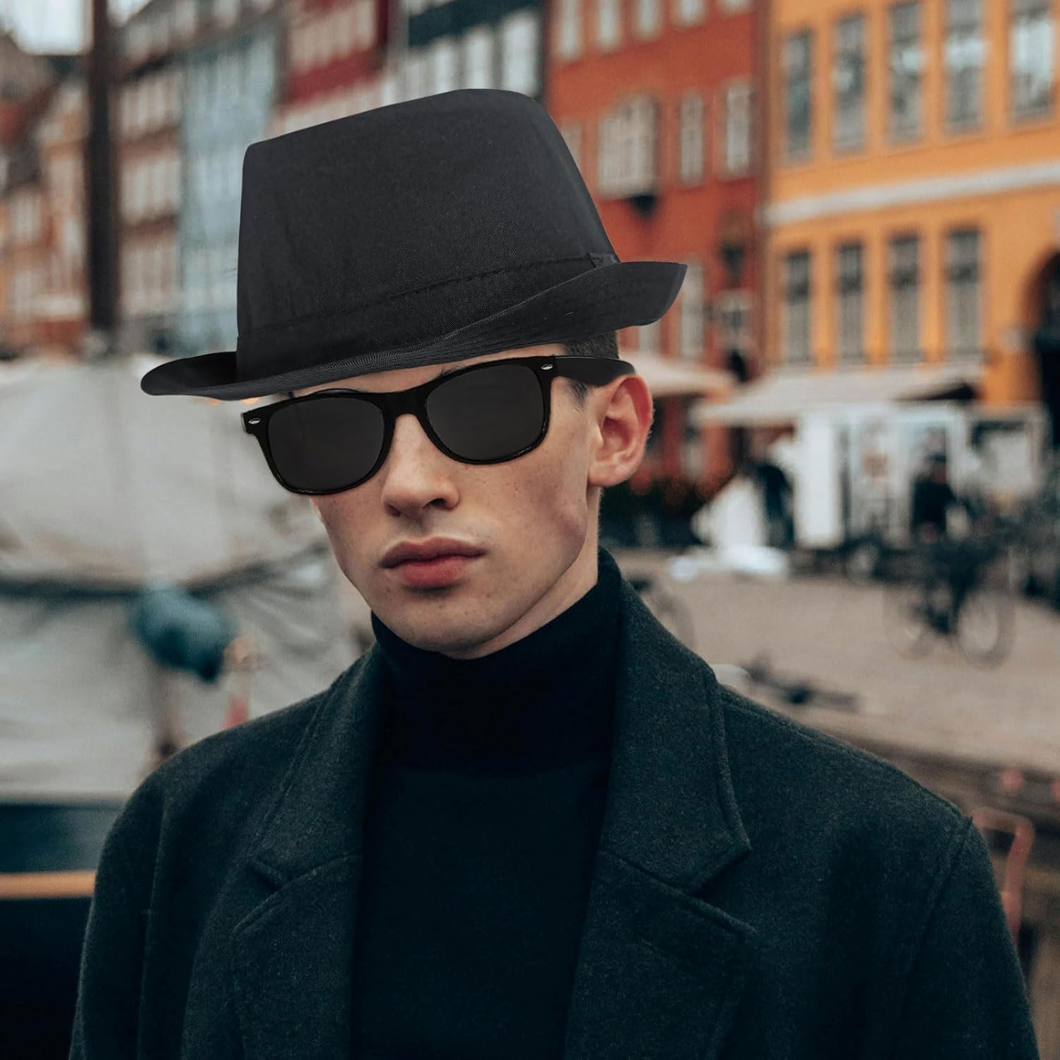 Descrizione prodotto Specifiche tecniche: Materiale: Fedora Colore: nero. Dimensioni: Il cappello da gangster: circonferenza della testa: 58 cm. La cravatta: 42 cm x 8 cm. Gli occhiali: 4,8 x 14,4 x 14 cm. La confezione include: 1 cappello da gangster nero. 1 cravatta nera. 1 paio di occhiali neri. Avviso di sicurezza No