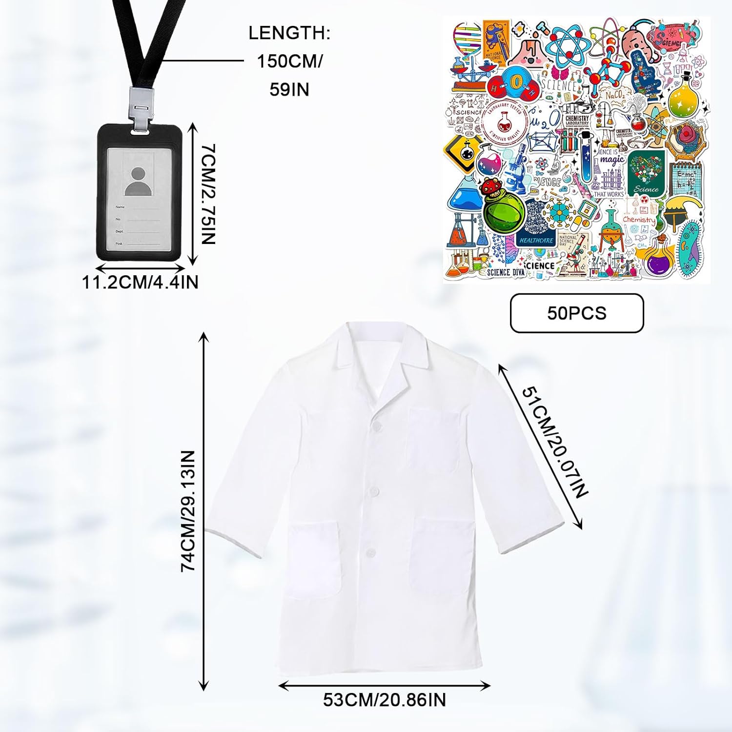 Set di costumi da scienziato di grande valore: riceverai un pezzo di camice da laboratorio bianco, un pezzo di carta d'identità e un set di adesivi scientifici dei cartoni animati, che possono essere regalati come regalo a sorpresa ai bambini. Materiale del prodotto: i vestiti sono realizzati con materiali lavabili di alta qualità, puoi stare certo che tuo figlio si travestirà da scienziato o medico e lo lascerà giocare felicemente in un ambiente sicuro. Capacità di sviluppo: questo set di costumi da scienziato può stimolare l'interesse dei bambini per la scienza, la medicina, la matematica e l'ingegneria e sviluppare la capacità di pensiero e la creatività dei bambini. È un buon aiuto per l'apprendimento e la crescita. Ampia applicazione: perfetta per feste a tema di laboratorio, cosplay di scienziati o medici, Halloween, carnevale, spettacoli scolastici, mascherate scolastiche, oggetti fotografici, ecc. Regalo perfetto: il set di esperimenti da scienziato è il regalo perfetto da utilizzare in esperimenti di gioco di finzione, perfetto per feste in maschera, eventi scolastici, compleanni e Natale.