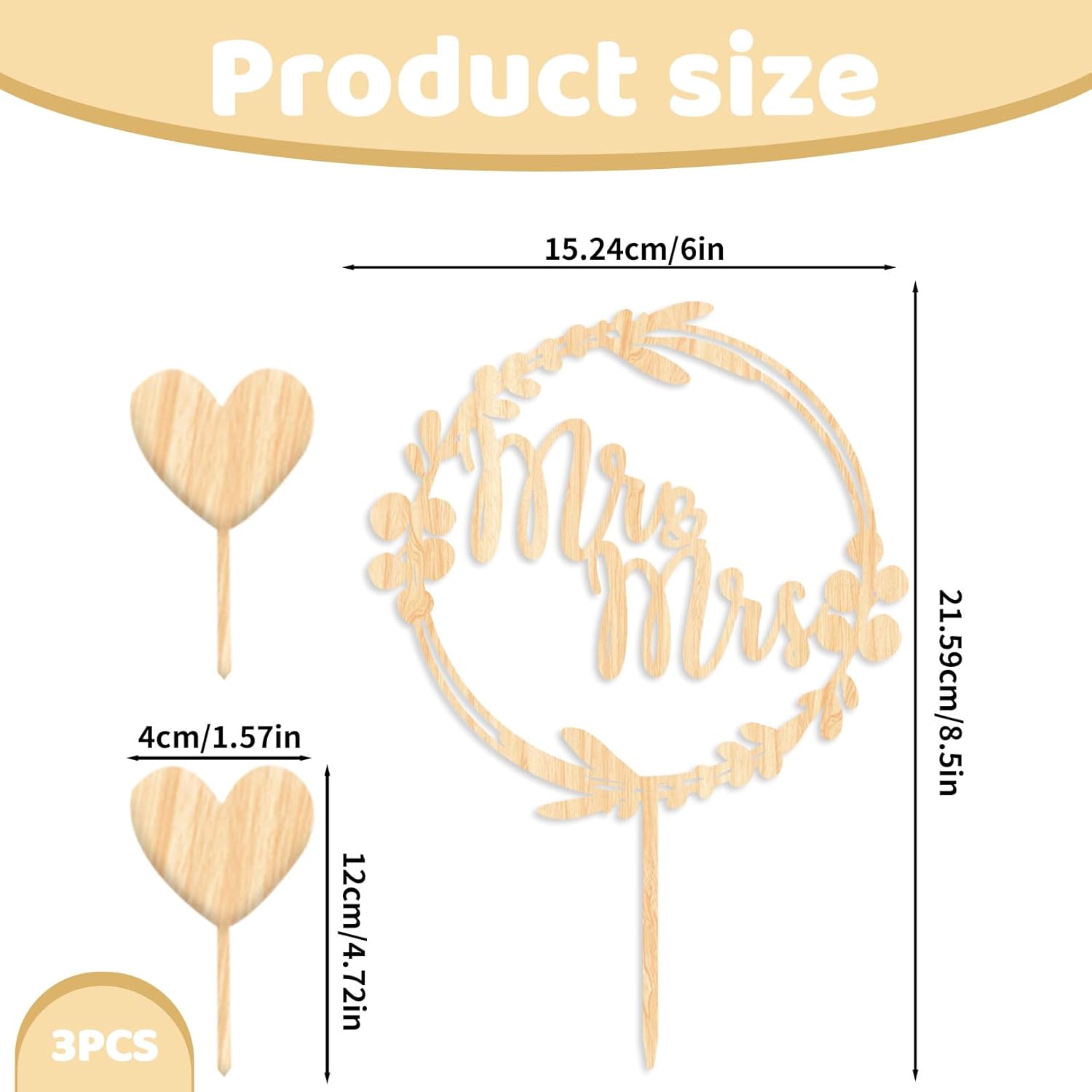 Quantità e dimensioni del prodotto: questo set contiene 3 decorazioni nuziali Mr & Mrs. I toppers per torta sono larghi 15 cm (circa 15,24 cm) e alti (circa 21,59 cm), il che fornisce una dimensione perfetta per torte di diverse dimensioni. DESIGN E MATERIALE: Realizzati in legno, questi toppers per torta presentano un elegante design "Mr & Mrs" in un bellissimo carattere incorniciato da un topper in alluminio. Il legno è di buona qualità, con una superficie liscia che aumenta il valore del decoro. Utilizzo: Ideale come topper per torta nuziale, ma adatto anche per compleanni, fidanzamenti o richieste di auguri. Aggiungono un tocco romantico e festoso alle tue occasioni speciali. Durata e qualità: il materiale in legno è robusto e durevole, quindi i toppers per torta mantengono la forma e la qualità anche dopo un uso prolungato. Sono resistenti ai danni e possono essere riutilizzati senza problemi. Estetica e atmosfera: con il loro design semplice ma elegante, queste decorazioni nuziali Mr & Mrs portano un'atmosfera romantica e festosa al matrimonio o ad altre celebrazioni. Sono un ottimo modo per rendere l’atmosfera del matrimonio ancora più invitante.
