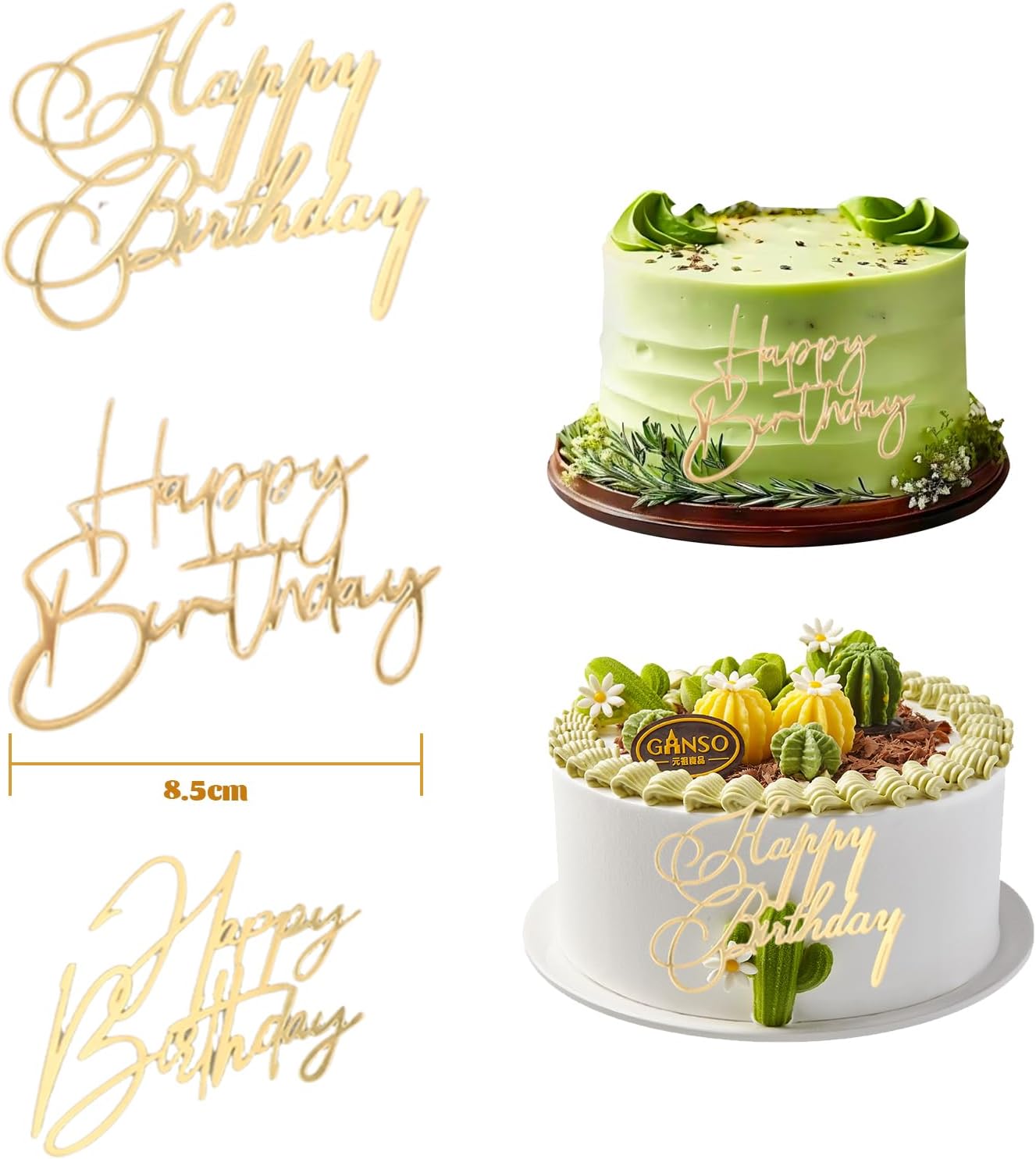 [Eleganti decorazioni per torte dorate (confezione da 3)]: include tre splendide decorazioni per torte dorate con la scritta "Happy Birthday", progettate per adattarsi alla maggior parte delle dimensioni e degli stili di torta. Perfette per creare un centrotavola memorabile. [Design raffinato e accattivante]: l'elegante scritta in corsivo e la finitura dorata scintillante impreziosiscono istantaneamente la tua torta di compleanno, aggiungendo fascino e stile a qualsiasi celebrazione. [Materiale acrilico di alta qualità]: realizzato in acrilico resistente e di alta qualità, impermeabile e riutilizzabile. Progettato per mantenere la sua bellezza, così puoi festeggiare più occasioni senza pensieri. [Facile decorazione per torte]: leggero e facile da usare. Basta inserire la decorazione nella torta per un tocco di stile immediato che non danneggerà né appesantirà il dessert. [Perfetto per qualsiasi celebrazione]: ideale per compleanni, anniversari, matrimoni e altro ancora. Questa decorazione versatile dona eleganza e festosità a tutti i momenti speciali della vita.