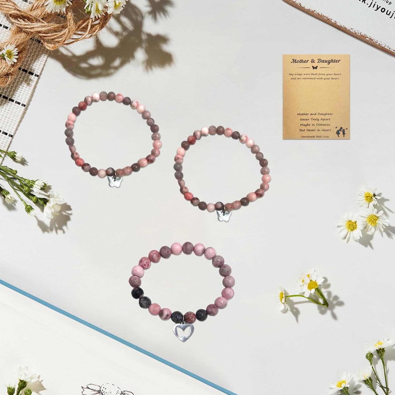 Descrizione prodotto Caratteristiche Dettagliate Bracciale Farfalla Con Carta Materiale: Metallo, Pietra Naturale Formato: Circa 15 + 5 Cm Colore: Rosa Quantità: 3 (Con 1 Carta) Caratteristica 1.Questo Prodotto È Realizzato In Metallo E Pietra Naturale, E Il Design Del Bracciale Utilizza Un Motivo A Farfalla Cava Per Aggiungere Eleganza E Agilità. 2.Adatto Come Una Madre-Figlia Genitore-Bambino Gioielli O Un Regalo Per Amiche E Amici, È Dotato Di Carte Squisite E Può Scrivere Benedizioni. Avviso di sicurezza No