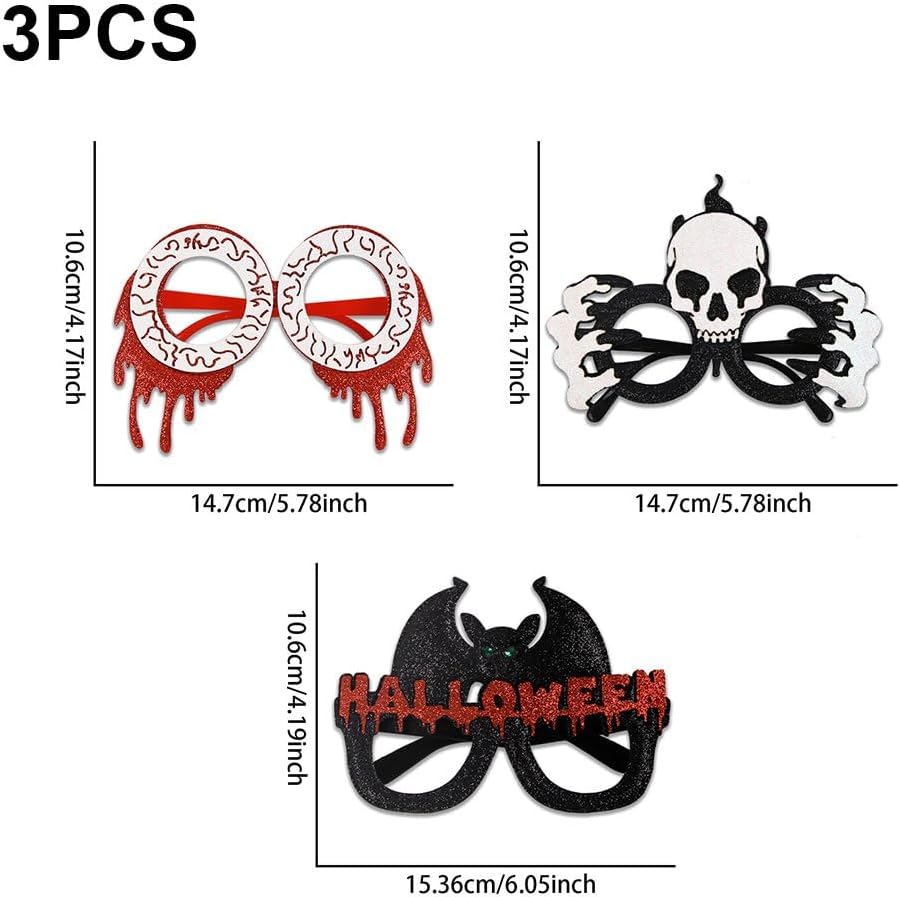 【Design speciale】Questi occhiali vista per Halloween sono disponibili in una varietà di stili. Con design a tema distintivi e colori vivaci, avrai oggetti di scena fotografici personalizzati. 【Materiale di qualità】Questi occhiali per feste di Halloween sono realizzati in materiale di alta qualità, inodore, robusto e infrangibile. 【Quantità sufficiente】Riceverai 3 occhiali vista per Halloween. Ci sono molti occhiali per feste di Halloween che sicuramente renderanno tua festa molto divertente. 【Taglia adatta alla maggior parte】 Le dimensioni di questo set di occhiali per feste di Halloween consentono di riporre gli occhiali in tasca o in borsa senza occupare troppo spazio. 【Ampie applicazioni】Gli occhiali vista di Halloween, eleganti e divertenti, sono perfetti per feste di Halloween, feste di compleanno, eventi cosplay e molti altri raduni.