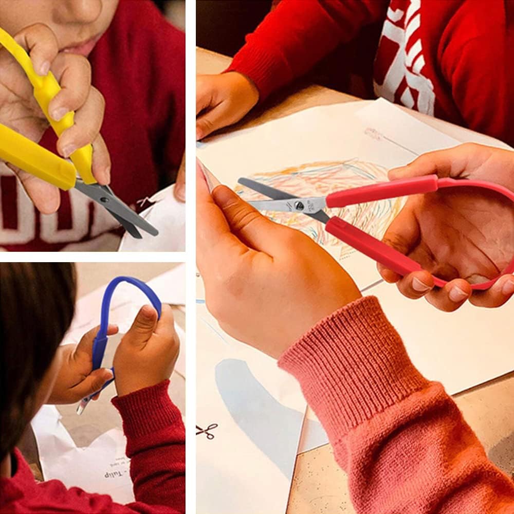 Materiale: Sono realizzate in acciaio inox di alta qualità che con manici in polipropilene, robuste e leggero. Forbici ad anello: Qeste forbici facili da spremere aiutano adolescenti, Tutte le forbici del set sono caricate a molla e sono state progettate per aprirsi dopo i tagli per rendere più facile il controllo e la stabilità. Facile da usare: Il comfort e l'efficienza delle forbici ad anello lo rendono ideale per bambini, Questo è importante per chi ha una mancanza di forza della mano in quanto aiuta a ridurre la tensione. Confezione: Include 3 forbici circolari, con 3 colori giallo, rosso e blu. Che possono soddisfare le vostre diverse esigenze. Applicazione: Le punte delle lame sono arrotondate in modo che siano più sicure da usare rispetto alle forbici standard. Un'ottima aggiunta alle scuole, alle aule con studenti con bisogni speciali o anche a casa per le arti e i mestieri regolari.