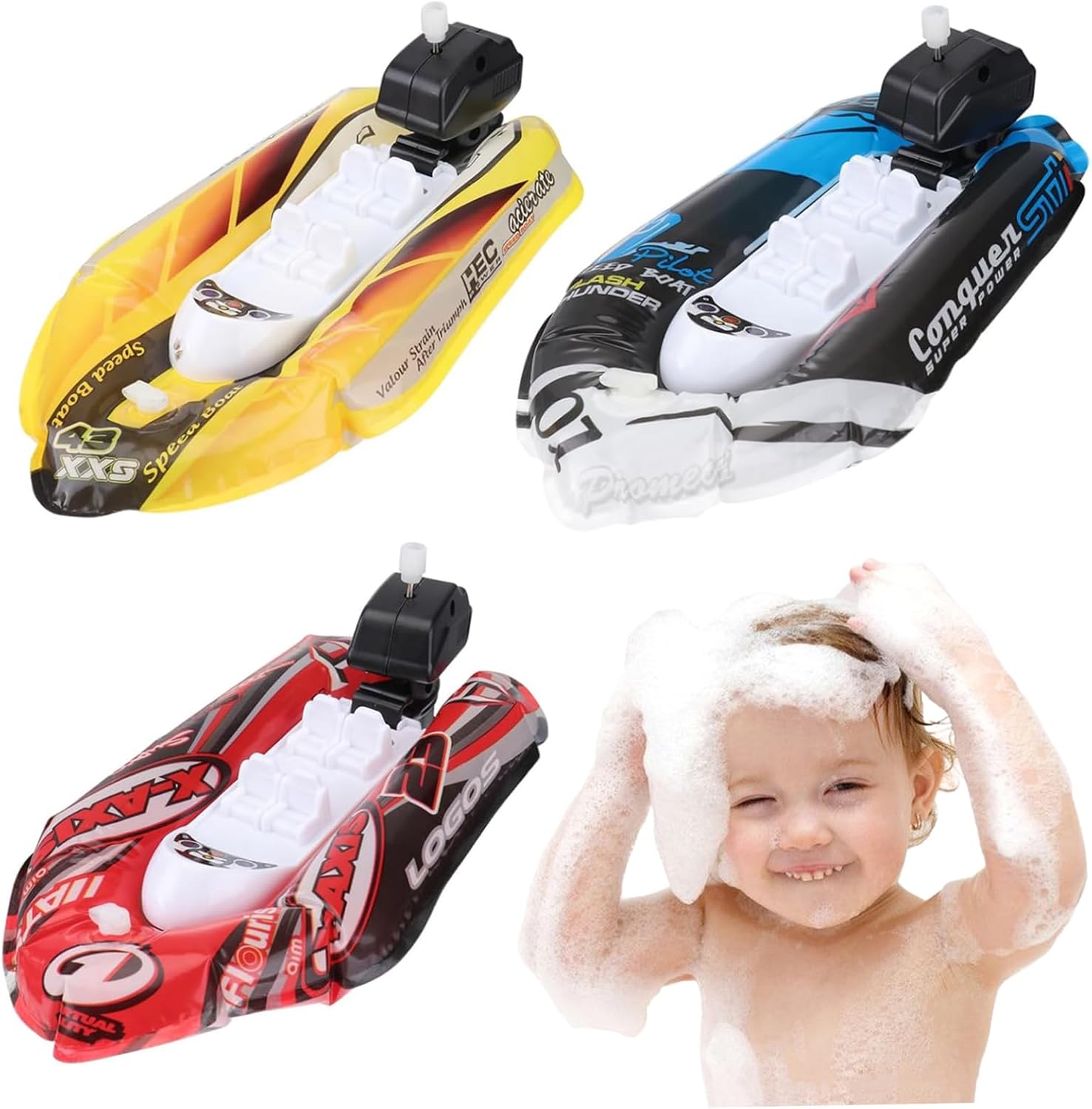 Divertente azione galleggiante: queste barchette da bagno a molla galleggiano, girano e muovono nell'acqua, offrendo ai bambini ore di divertimento..Perfetto per incoraggiare lo sviluppo delle capacità motorie e la coordinazione occhio-mano durante il bagno, il gioco in piscina o il divertimento in spiaggia. Design luminosi e accattivanti: le barche sono dai colori vivaci e presentano design divertenti e adatti ai bambini che catturano l'attenzione dei più piccoli..Il loro aspetto vivace intratterrà sicuramente i più piccoli promuovendo allo stesso tempo lo sviluppo sensoriale. Uso versatile: queste mini barche da bagno gonfiabili sono perfette per qualsiasi ambiente acquatico, sia nella vasca da bagno, in piscina o in spiaggia..La loro funzione di ricarica mantiene i bambini impegnati e incoraggia i giochi acquatici fantasiosi. Sicuri e adatti ai bambini: realizzati in plastica priva di BPA, questi giocattoli da bagno sono progettati pensando alla sicurezza del tuo bambino..I materiali atossici garantiscono un gioco senza preoccupazioni, consentendo ai genitori di rilassarsi mentre i bambini godono il bagno o il tempo in piscina. Perfetto per i più piccoli: che sia per compleanni, vacanze o semplicemente perché, questa confezione da 3 barchette giocattolo da bagno è perfetta per i bambini dai 2 ai 4 anni..Divertente, educativo e sicuro: la combinazione perfetta per i bambini!