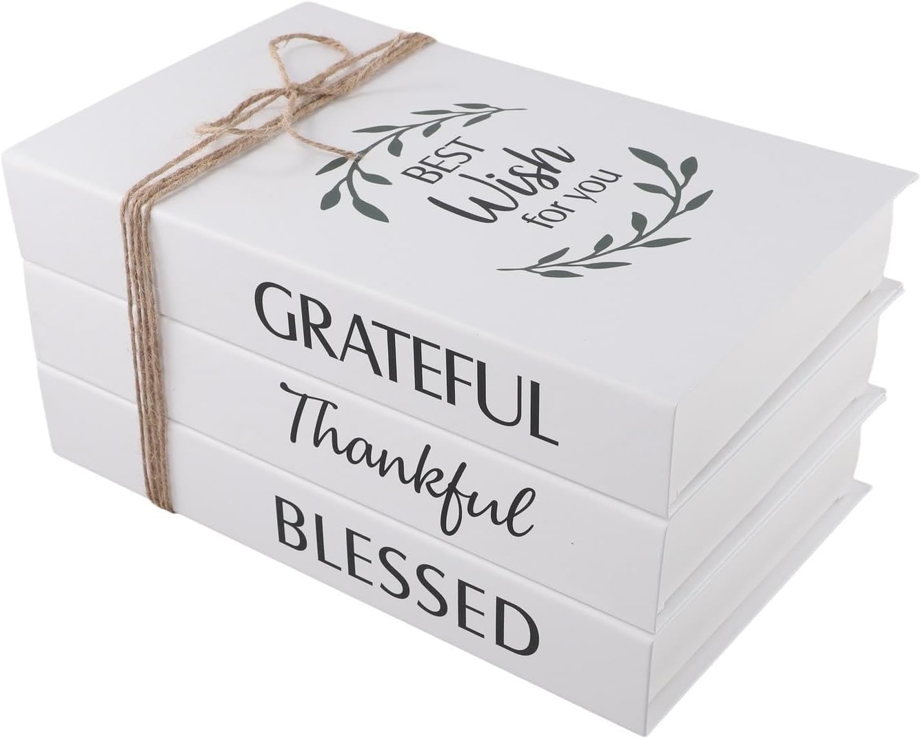 Decorazione rustica della fattoria: Trasforma qualsiasi spazio con questi 3 libri di simulazione in bundle dall'aspetto autentico, ciascuno misura 26,7 x 17 x 4,2 cm, realizzato in carta grigia di alta qualità con rilegatura in corda di canapa per quella perfetta estetica vintage che porta calore e carattere ai tuoi spazi abitativi. Design facile da montare: arriva in confezione piatta per una comoda spedizione e stoccaggio, questi libri decorativi pieghevoli richiedono un semplice montaggio all'arrivo: basta aprire e organizzare per creare pile di libri realistiche che mantengono la loro forma e aspetto per una decorazione domestica duratura senza occupare troppo spazio di archiviazione. Stile versatile per la casa: perfetti per tavolini, librerie, caminetti, vassoi, comodini, ingressi e cesti, questi libri di simulazione bianchi neutri completano vari temi di arredamento, dalla moderna fattoria al cottage rustico, offrendo infinite possibilità di stile in tutta la casa o lo spazio ufficio. Aspetto realistico del libro: progettati per imitare autentici libri vintage con rilegatura dettagliata e texture stagionata, questi pezzi ornamentali aggiungono fascino intellettuale e atmosfera sofisticata a qualsiasi stanza mentre servono come antipasti di conversazione che si fondono perfettamente con le vere collezioni di libri. Scelta regalo premurosa: è un regalo eccellente per feste di inaugurazione della casa, amanti dei libri o chiunque apprezzi l'arredamento rustico della casa, queste pile decorative di libri ti consentono di condividere il fascino della fattoria con amici e familiari aggiungendo accogliente ai loro spazi abitativi.