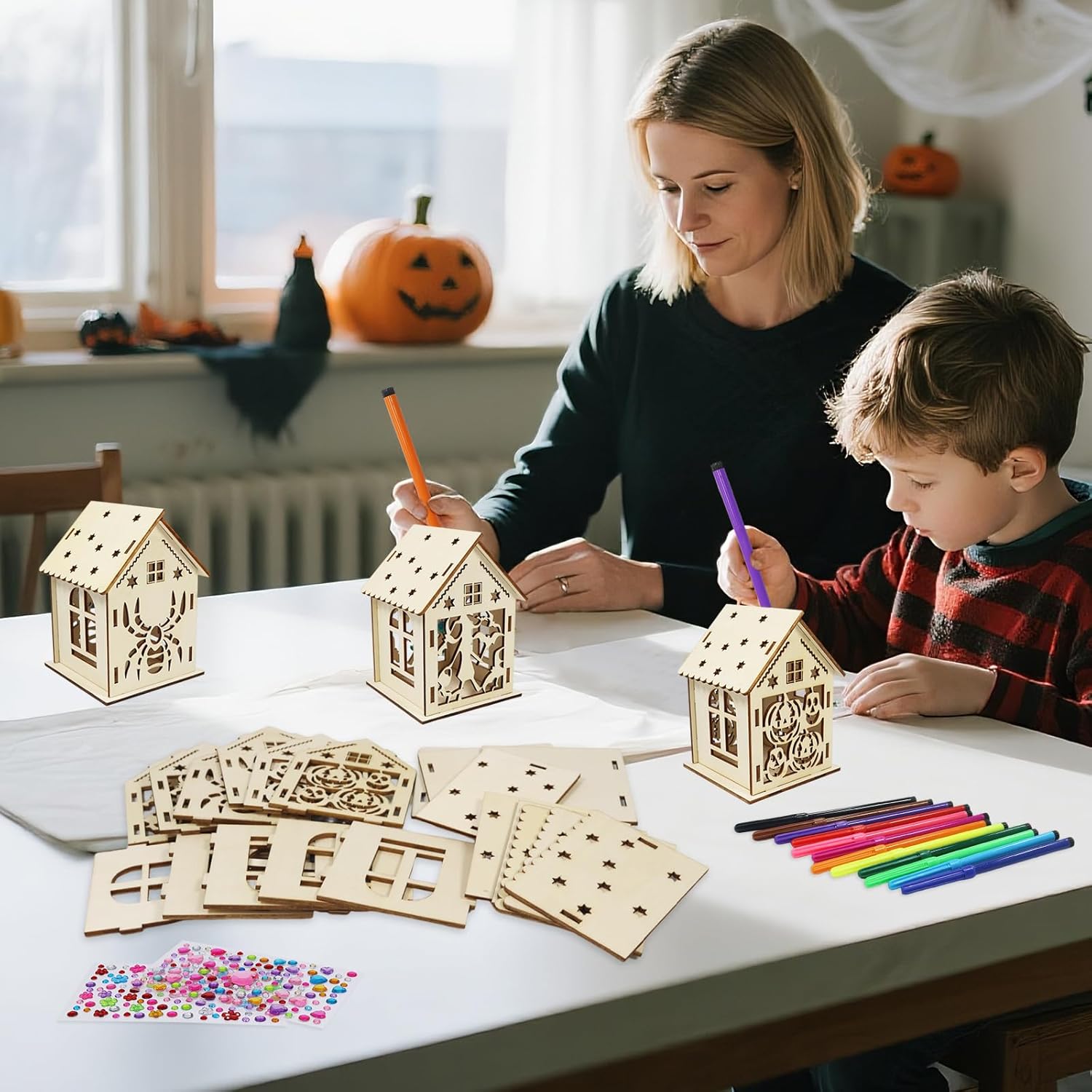 Lavoretti Creativi per Bambini: riceverete 3 decorazioni in legno per Halloween in diversi design + 12 matite acquerellabili + 2 adesivi con paillettes + 3 luci LED. Il set per Halloween crea un'atmosfera suggestiva di Halloween ed è perfetto per la decorazione di Halloween con i bambini Materiale di alta qualità: il Lavoretti Creativi per Bambini Halloween realizzato in legno di alta qualità, ogni pezzo di legno è già pre-tagliato e dotato di fessure, quindi non sono necessari attrezzi. È resistente e ha bordi lisci, quindi non danneggia le mani. (Fonte di alimentazione: luci LED) Montaggio semplice: basta dipingere e assemblare i pezzi di legno, inserire le luci a LED e poi incollare gli adesivi con paillettes, ed è pronta una casetta perfetta per Halloween! Le decorazioni di Halloween fatte dai bambini avranno un significato molto speciale in questa serata di Halloween Lavoretti Creativi per Bambini Halloween: questo kit fai da te per la casa di Halloween può essere utilizzato anche come kit da pittura Scatena la tua immaginazione e dipingi la casa di Halloween, ogni set per bricolage in legno deve avere il suo aspetto unico. Con il nostro set di decorazioni in legno per Halloween, i bambini possono migliorare le loro abilità artigianali e pensiero Regali Halloween per bambini: il nostro Lavoretti Halloween è il regalo ideale per bambini di tutte le età. Sia come regalo di compleanno, regalo di Halloween, regalo di Natale o semplicemente come sorpresa per i bambini, questo kit fai da te è sempre un buon pensiero