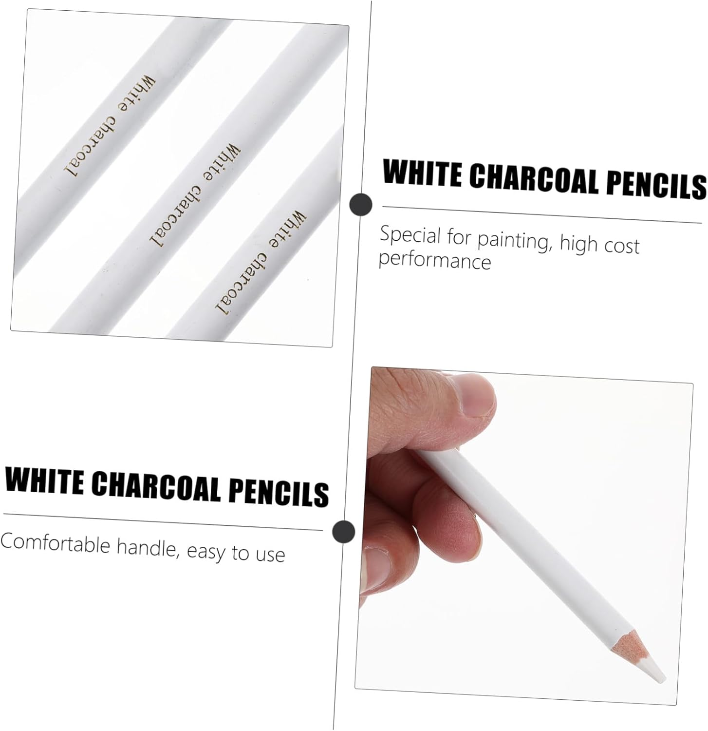 Matite per schizzi: possono essere utilizzate da sole o per aggiungere punti luce agli schizzi a carboncino nero, possono offrire colori uniformi, dipingere a carboncino Utilizzo versatile: ideale per schizzi, evidenziazione di disegni a carboncino o come strumenti di disegno autonomi, offrendo infinite possibilità creative, da disegno, matite a carboncino bianche per artisti Matite bianche: ottimo strumento per schizzi per studenti, artisti, adulti, principianti, ecc., matite per schizzi per artisti Matite per disegnare: non sono utilizzate solo da pittori professionisti o insegnanti, ma sono adatte anche per studenti d'arte e principianti, matite per dipingere Ideale per tutti i livelli di abilità: che tu sia uno studente, un hobbista o un artista professionista, questo strumento per schizzi è perfetto per migliorare le tue capacità di disegno e creare opere d'arte, schizzi, pittura a carboncino bianco, schizzi a