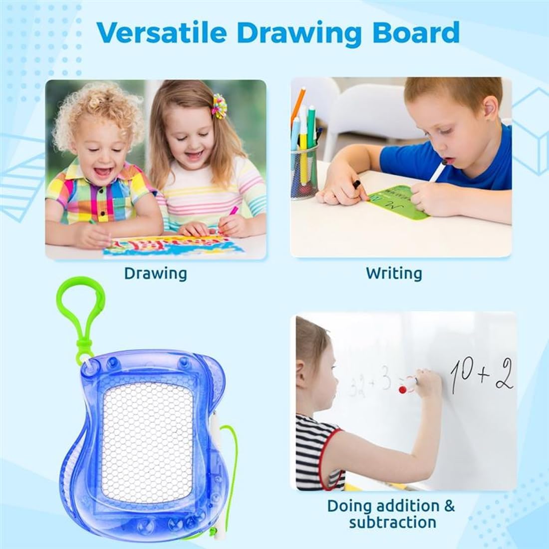 Set creativo per disegnare: Questo set di 12 mini lavagnette magnetiche è perfetto per bambine e bambini dai 3 anni in su. Ogni lavagnetta è confezionata singolarmente e può essere utilizzata come portachiavi per zaini o mazzi di chiavi. Ideale per stimolare la creatività e l'immaginazione, offrendo ore di divertimento sia a casa che in viaggio Portachiavi pratici: Le mini lavagnette magnetiche sono leggere, compatte e perfette per l'uso in movimento. I bambini possono creare disegni infiniti senza sprecare carta. Basta passare per cancellare e iniziare un nuovo disegno. Ideale per intrattenere durante viaggi in auto o attese, adatto a bambine e bambini dai 3 anni Stimola creatività e apprendimento: Queste mini lavagnette incoraggiano l'immaginazione e supportano lo sviluppo della motricità fine. I bambini possono imparare giocando e dare vita alle loro idee. Ogni lavagnetta misura 8,5 cm x 10 cm ed è confezionata singolarmente, rendendola un giocattolo educativo ideale per attività creative Perfetto per regali e feste: Le mini lavagnette magnetiche sono un'ottima scelta per regali di compleanno, sacchetti sorpresa, regali di festa o sorprese natalizie. I genitori apprezzeranno l'alternativa pratica ai dolci, mentre i bambini adoreranno esprimere la loro creatività. Un regalo perfetto per ogni occasione Materiali di alta qualità: Le nostre mini lavagnette magnetiche sono robuste, durevoli e progettate appositamente per le mani dei bambini. Offrono un modo sicuro e divertente per stimolare l'immaginazione. Ideali come regali per feste di compleanno o per riempire una pignatta, regalando un sorriso a ogni bambino
