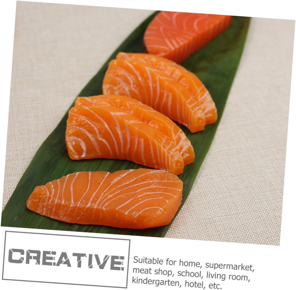 Cibo finto realistico: fantastica decorazione di salmone simulato per centri commerciali, case, snack bar o altri luoghi, vetrina di salmone artificiale Di salmone: il design bello e realistico è molto attraente e il di carne di pesce artificiale decorativo è molto, modelli di simulazione di salmone Da tavolo a forma di salmone: hanno un design semplice, ma sono molto pratici da usare, offrendoti degli accessori per le foto Accessori di salmone simulato: la fetta di salmone finta è adatta per la decorazione della casa, accessori per la fotografia, esposizione di modelli di stanze, accessori per il cibo da esporre Decorazioni di cibo finto: pregevole fattura con aspetto attraente e realistico, un bel decoro per la tua casa, salmone finto