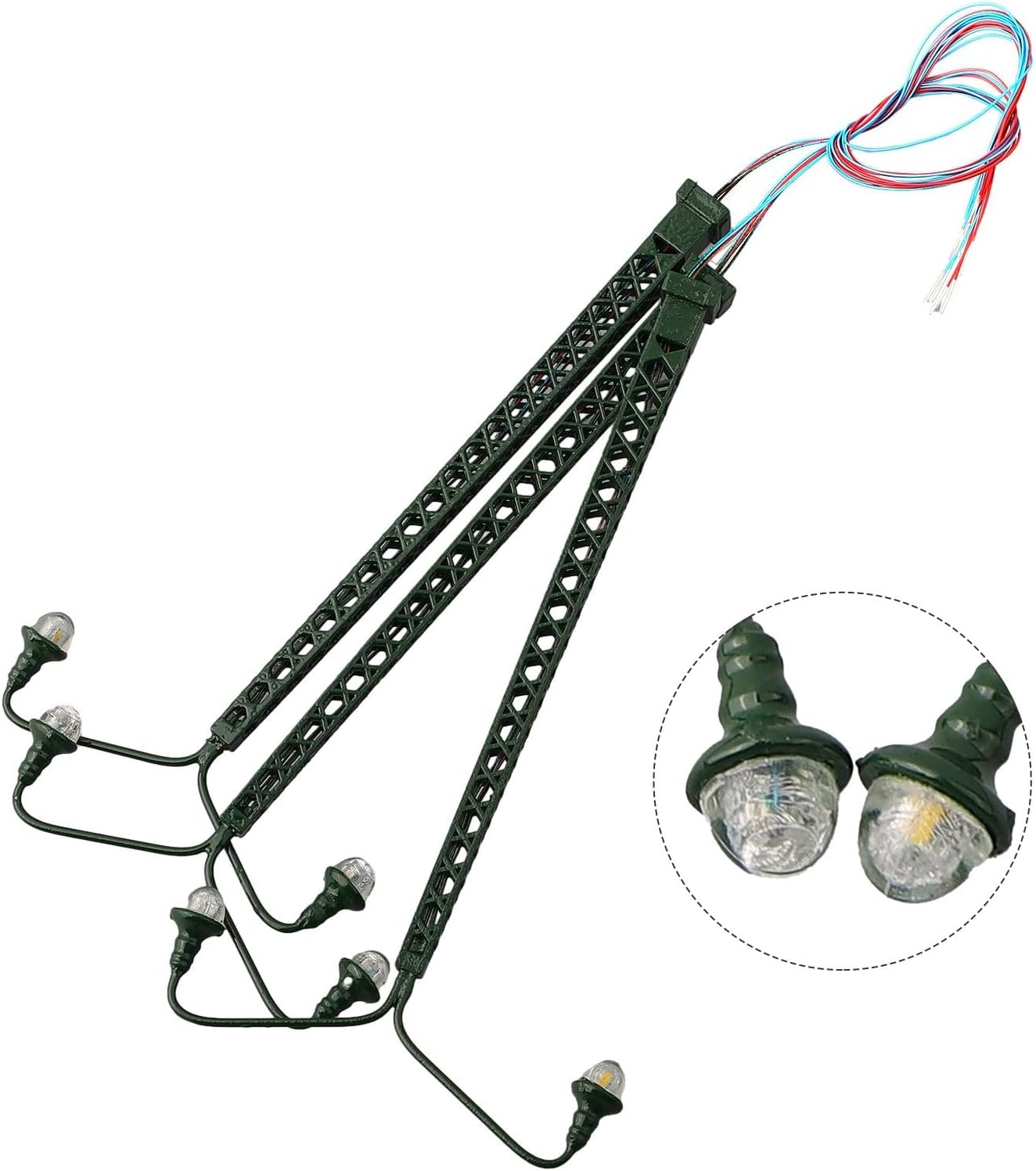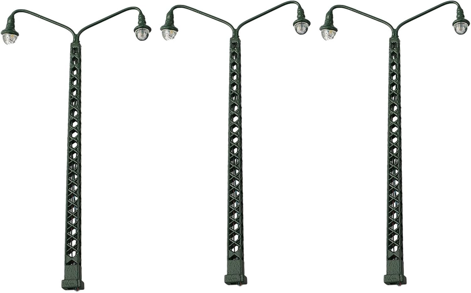 Perfette per layout di scartamento: queste luci dettagliate su palo in rete metallica sono progettate specificamente per modellini di treni e diorami di costruzione, aggiungendo un'illuminazione realistica al tuo mondo in miniatura con un design autentico Set completo: ogni set include 3 lampadine LED in metallo più 3 resistori in serie per un collegamento sicuro a sistemi di trasformatore da 12-16 V, corretto funzionamento a 3 V/20 mA per prestazioni LED di lunga durata senza rischio di danni Illuminazione a LED realistica: alimentate da LED a risparmio energetico, queste luci forniscono una luce calda e realistica, perfetta per migliorare le scene della stazione ferroviaria, del cortile aree o layout industriali, creando un accattivante realismo operativo notturno. Facile installazione: con i resistori di serie inclusi, queste luci sono facili da integrare nei sistemi esistenti da 12-16 V. Basta collegare il resistore incluso alla linea di alimentazione per una configurazione immediata e un funzionamento affidabile. Costruzione in metallo per autenticità: realizzate con materiali metallici durevoli, queste luci a traliccio presentano dettagli intricati che resistono alla manipolazione mantenendo la precisione della scala per il tuo scenario ferroviario in miniatura