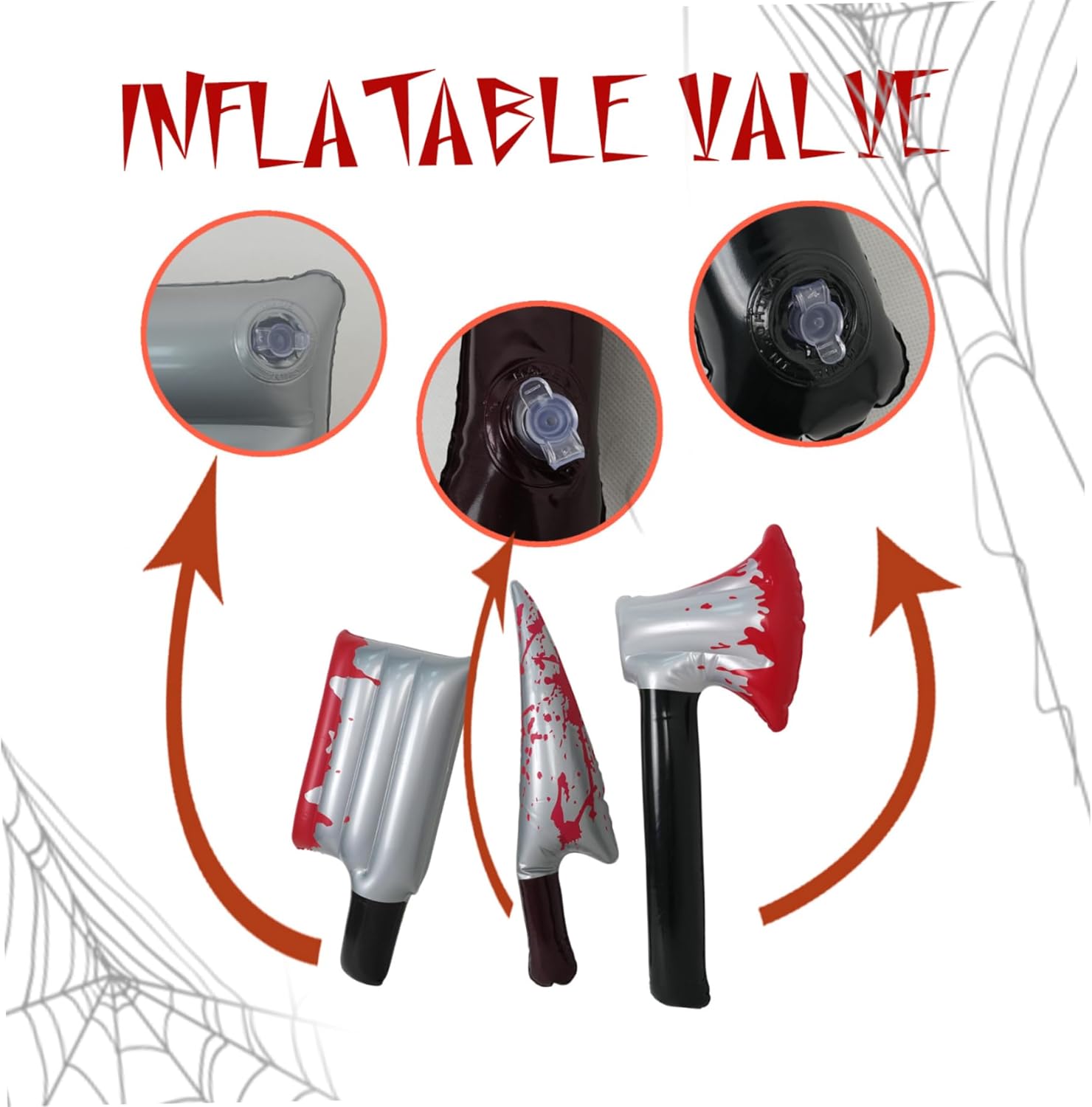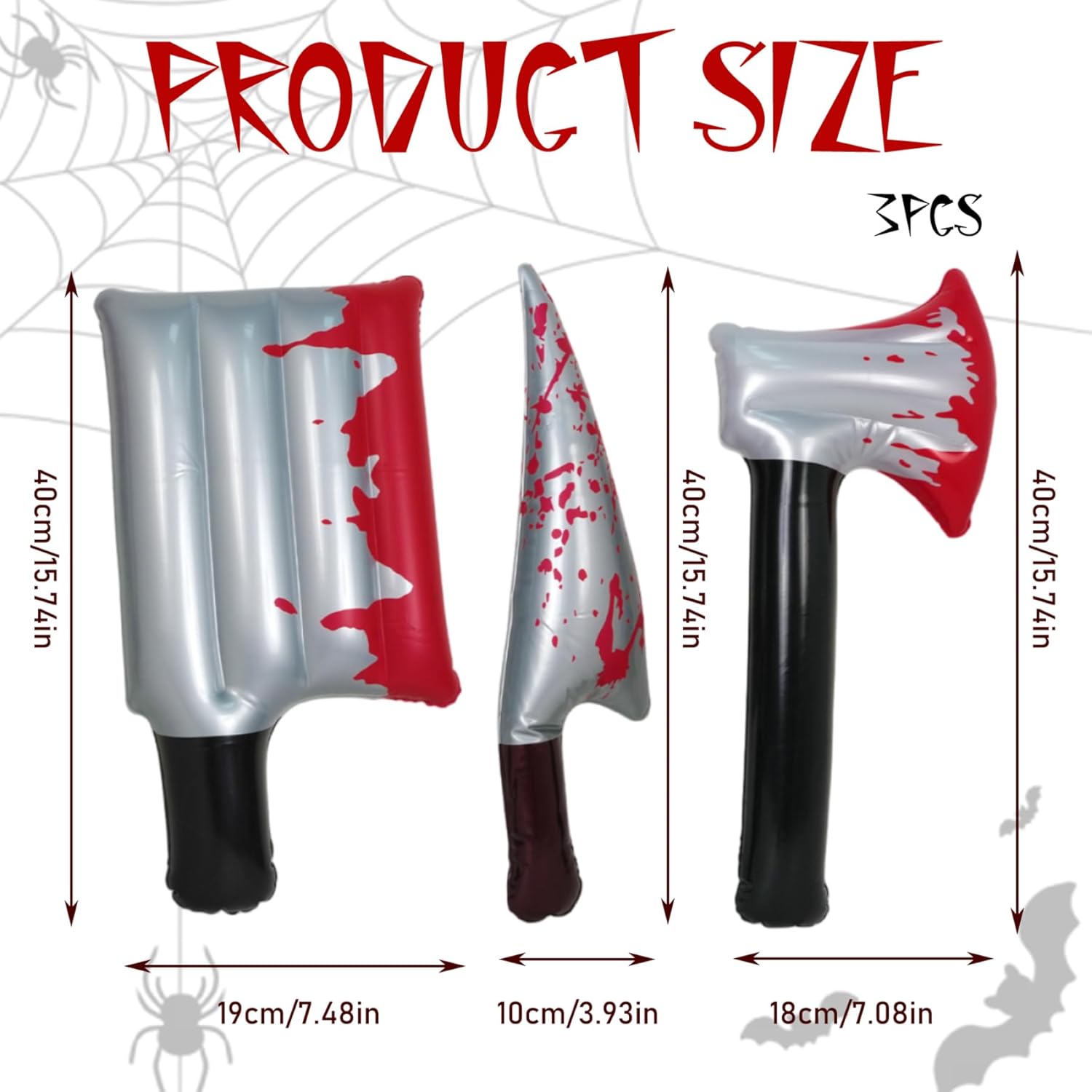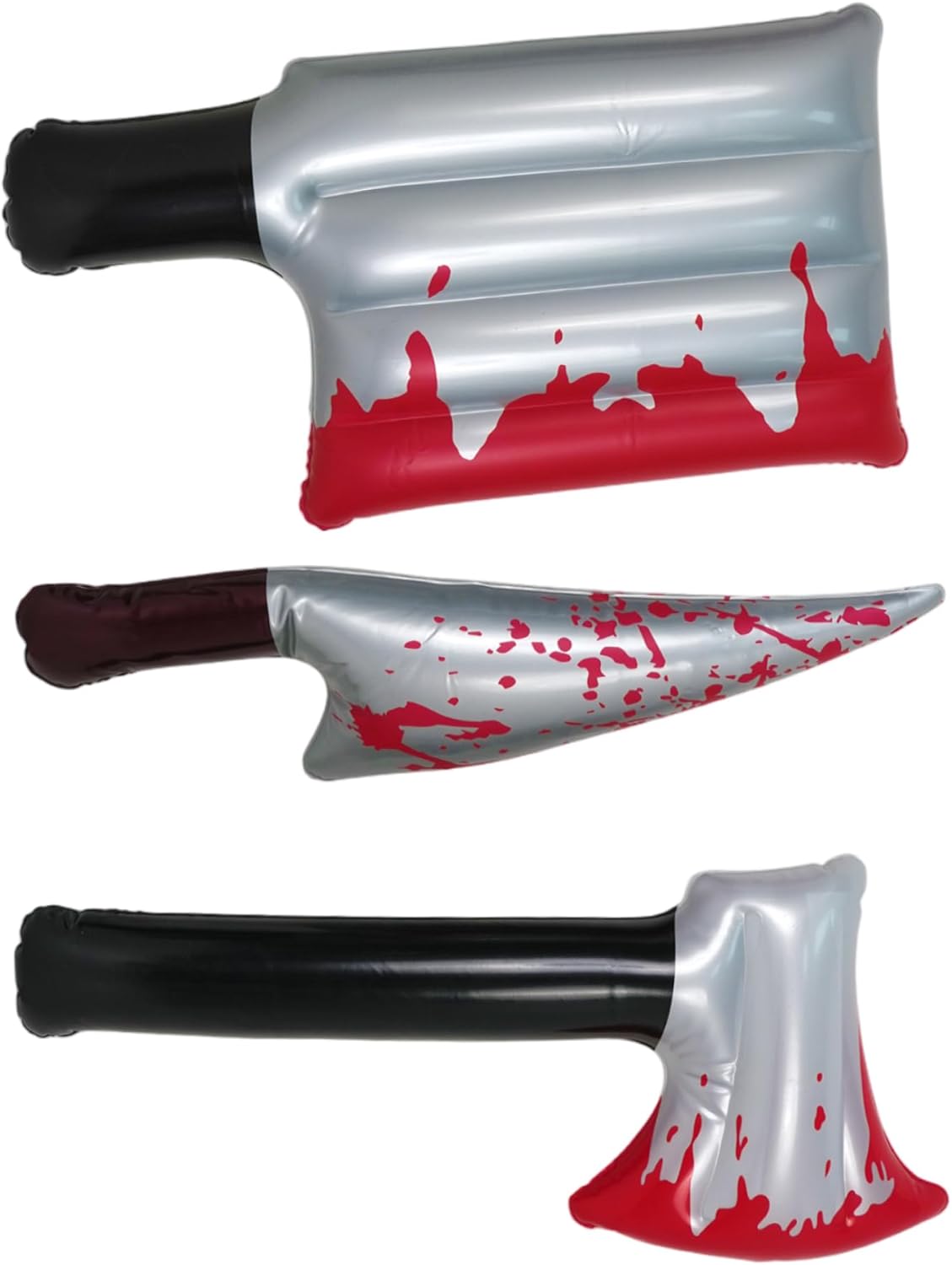 Versatili per feste e cosplay: perfette per feste di Halloween, eventi a tema, case infestate e cosplay, queste finte asce gonfiabili migliorano l'atmosfera e completano perfettamente i costumi. Oggetti di scena di Halloween Oggetti di scena realistici di Halloween: questi set da 3 pezzi sono dotati di asce e coltelli insanguinati simulati da 16 pollici, che aggiungono autentiche vibrazioni horror alle tue decorazioni di Halloween e alle tue esibizioni di cosplay. effetti spettrali..Ascia di scena leggera e portatile: gli oggetti di scena gonfiabili sono facili da trasportare e riporre quando sgonfiati, il che li rende molto convenienti per eventi, servizi fotografici e spettacoli senza l'ingombro degli oggetti di scena tradizionali.. Oggetti di scena gonfiabili Effetti sangue accattivanti: la vivida simulazione del sangue rosso sulle lame migliora l'estetica spettrale, attira l'attenzione e rende le tue decorazioni o costumi più accattivanti per gli ospiti e il pubblico e più indimenticabili.. Design gonfiabile per casseforti con ascia finta: questi oggetti di scena sono realizzati in robusto, materiale in PVC leggero con una valvola facile per un rapido gonfiaggio e sgonfiaggio per uso interno ed esterno..Ascia giocattolo