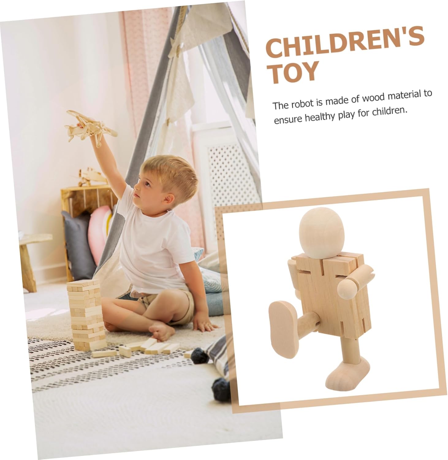 Ornamento in legno: giunti flessibili per variazioni di posa illimitate: i giunti del robot sono progettati per essere flessibili, consentendo variazioni di posa illimitate e giochi fantasiosi, figure in legno con giunti regolabili Robot in legno fai da te: incoraggiano a usare la loro immaginazione e a partecipare al gioco di finzione e alla narrazione, modelli di robot in legno Robot in legno fai da te: offre possibilità per il fai da te, consentendo di creare design unici, piccoli ornamenti in legno per robot Robot artigianali in legno - pittura per design unici - puoi liberare la tua creatività realizzando tu stesso il robot con pennarelli o vernici per creare design unici, robot incompiuto fai da te Robot di pittura: stimola la creatività e consente loro di esprimersi decorando il burattino di legno, piccolo robot di legno