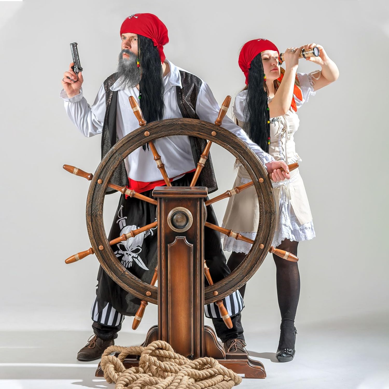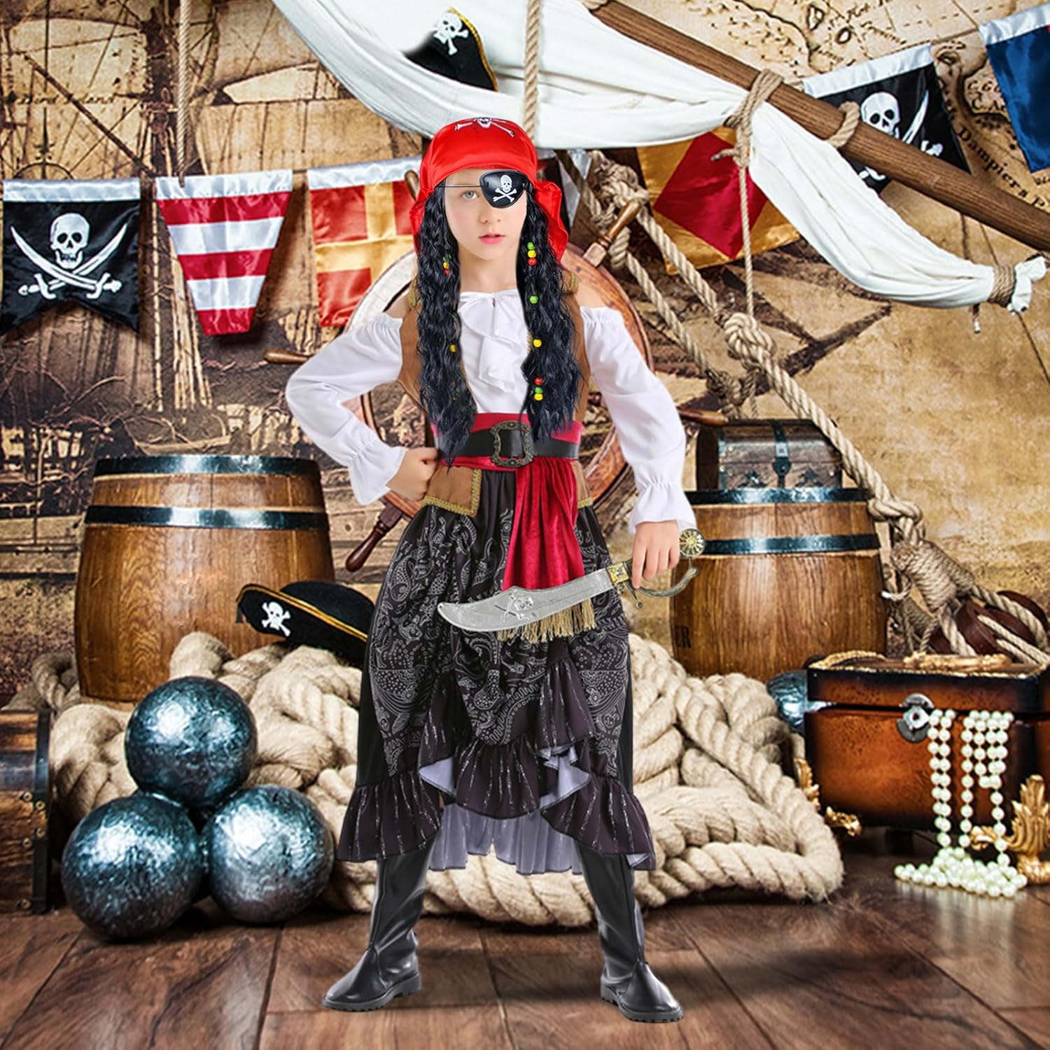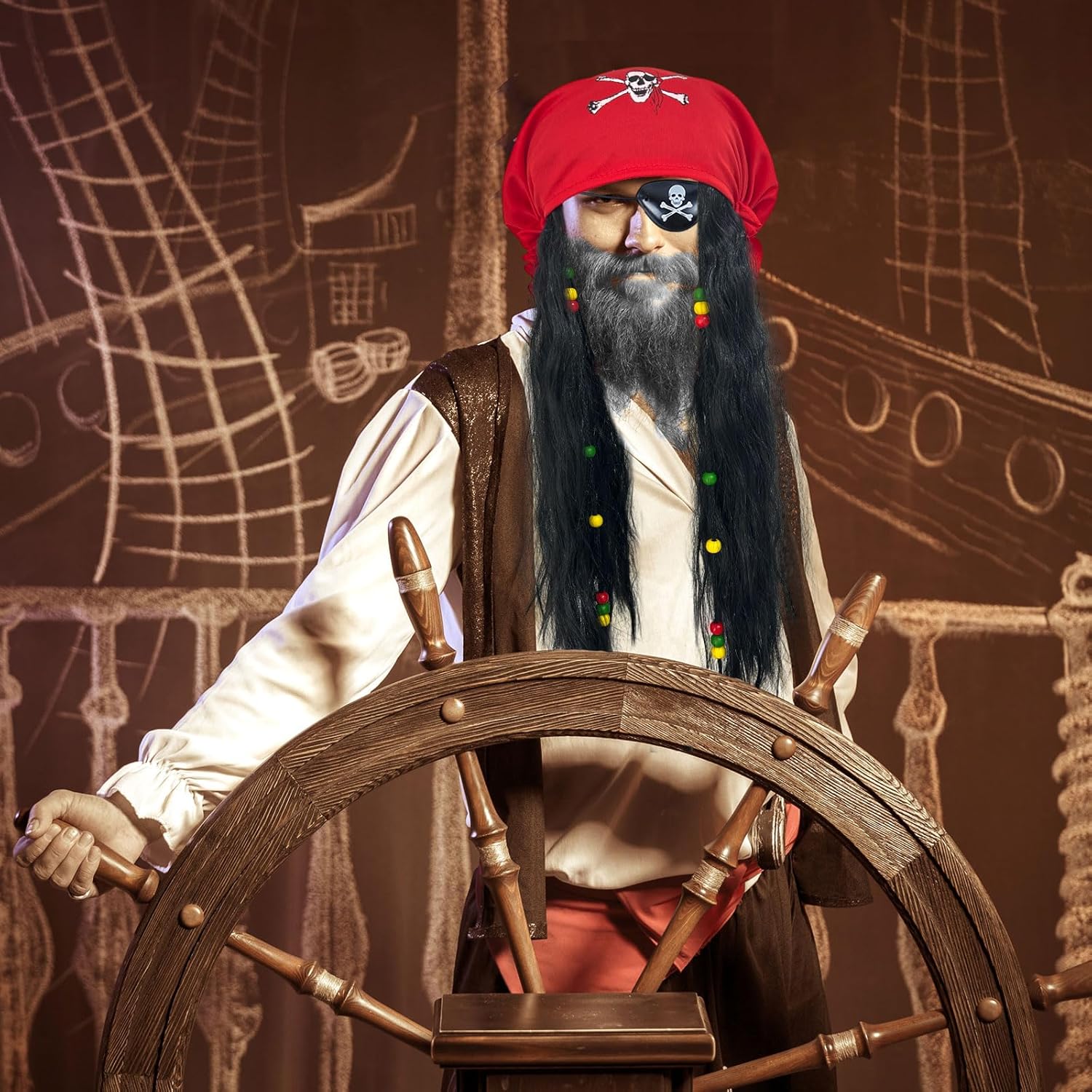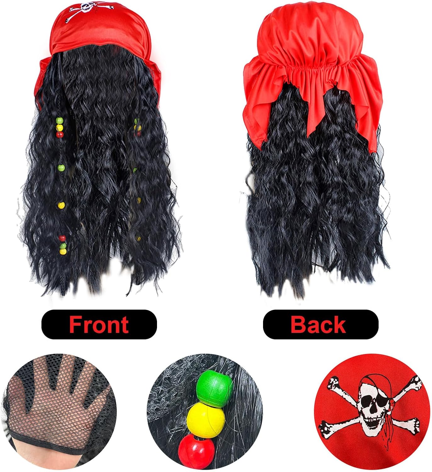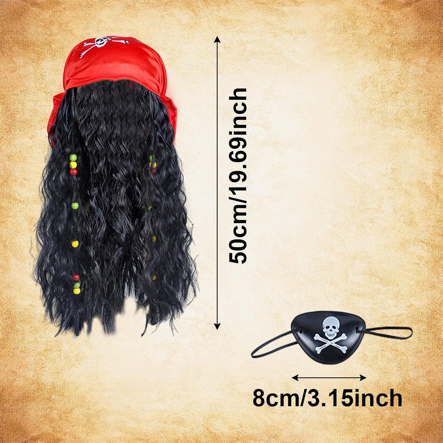 Pacchetto: 1 parrucca da pirata 1 * cappello da pirata 1 * maschera per gli occhi con teschio Materiale: fibra sintetica Persone applicabili: adulti, bambini Caratteristiche Il costume da pirata è completo di accessori, compresi tutti gli accessori necessari per travestirti da pirata, così non dovrai più preoccuparti dell'abbinamento. Parrucche e cappelli da pirata hanno elastici incorporati per adattarsi alla maggior parte delle persone Che si tratti di Halloween, carnevale o festa di cosplay, possiamo offrirti un look da pirata perfetto Diventa un grande pirata con questo set di costumi da pirata da 3 pezzi!