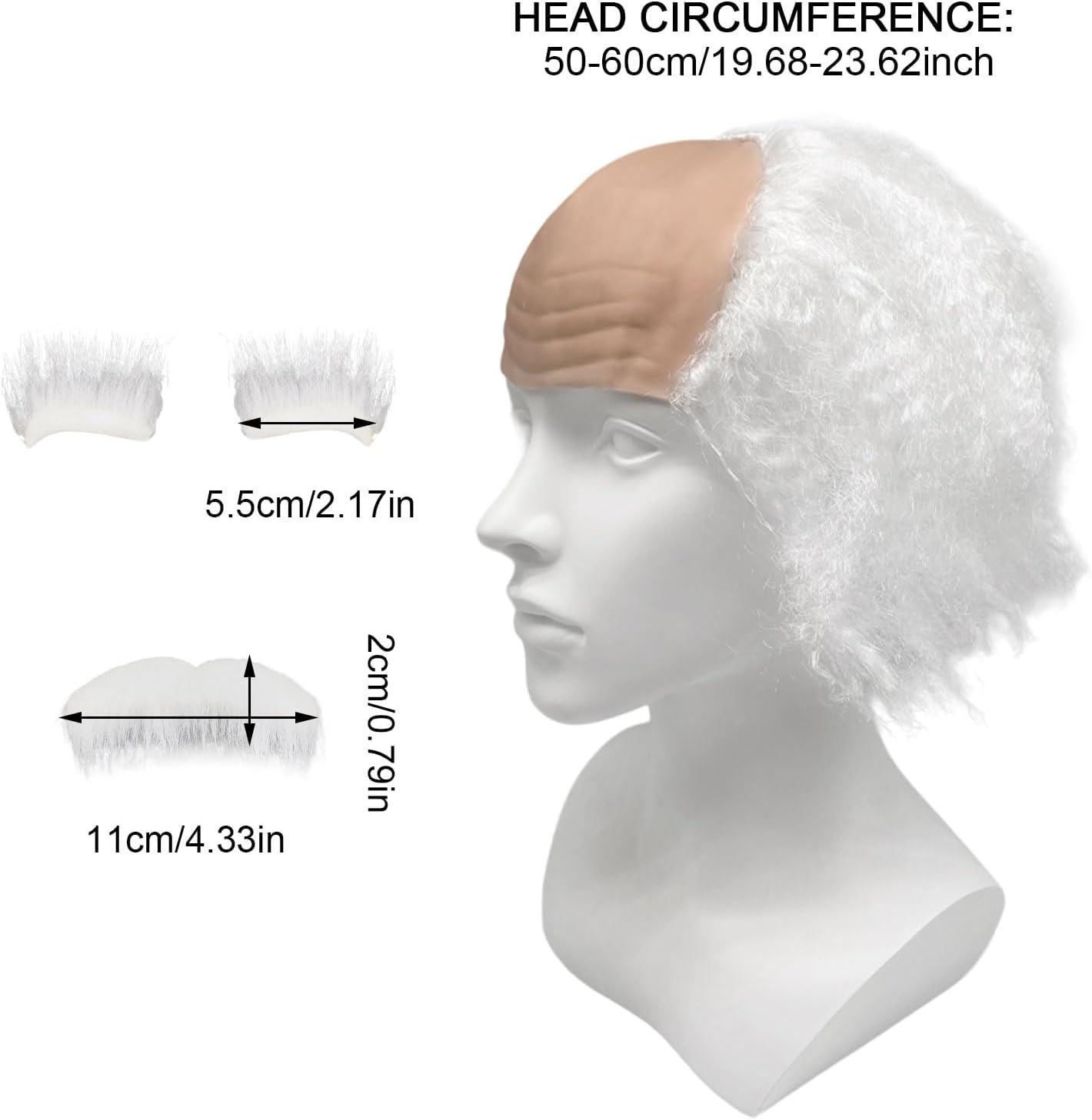 Set per lo styling del nonno: include una parrucca bianca riccia e calva, baffi e un paio di sopracciglia finte per travestirsi da nonno pazzo! Materiale di alta qualità: la parrucca calva per anziani è realizzata con parrucca artificiale e lattice naturale, che non è tossico, non sbiadisce facilmente, ha una forma realistica, facile da indossare e riparare, può essere utilizzata più volte ed è adatta per la maggior parte degli adulti e dei giovani. Design innovativo: la parrucca del vecchio calvo utilizza una parrucca bianca abbinata a un cuoio capelluto glabro per creare un effetto interessante. Gli anziani che possono essere imitati, così come gli scienziati pazzi, i professori, ecc., sono molto creativi. Abbinalo a barba e sopracciglia finte: il design raffinato di barba e sopracciglia finte rende il tuo look più realistico e aggiunge bellezza dettagliata al tuo outfit. Uso multiuso: il nostro set è perfetto per la parrucca da vecchio, la parrucca da scienziato o la parrucca da professore pazzo, vari personaggi e temi, adatti per Halloween, carnevale, feste in costume ed eventi speciali, mostra il tuo fascino unico nella festa.