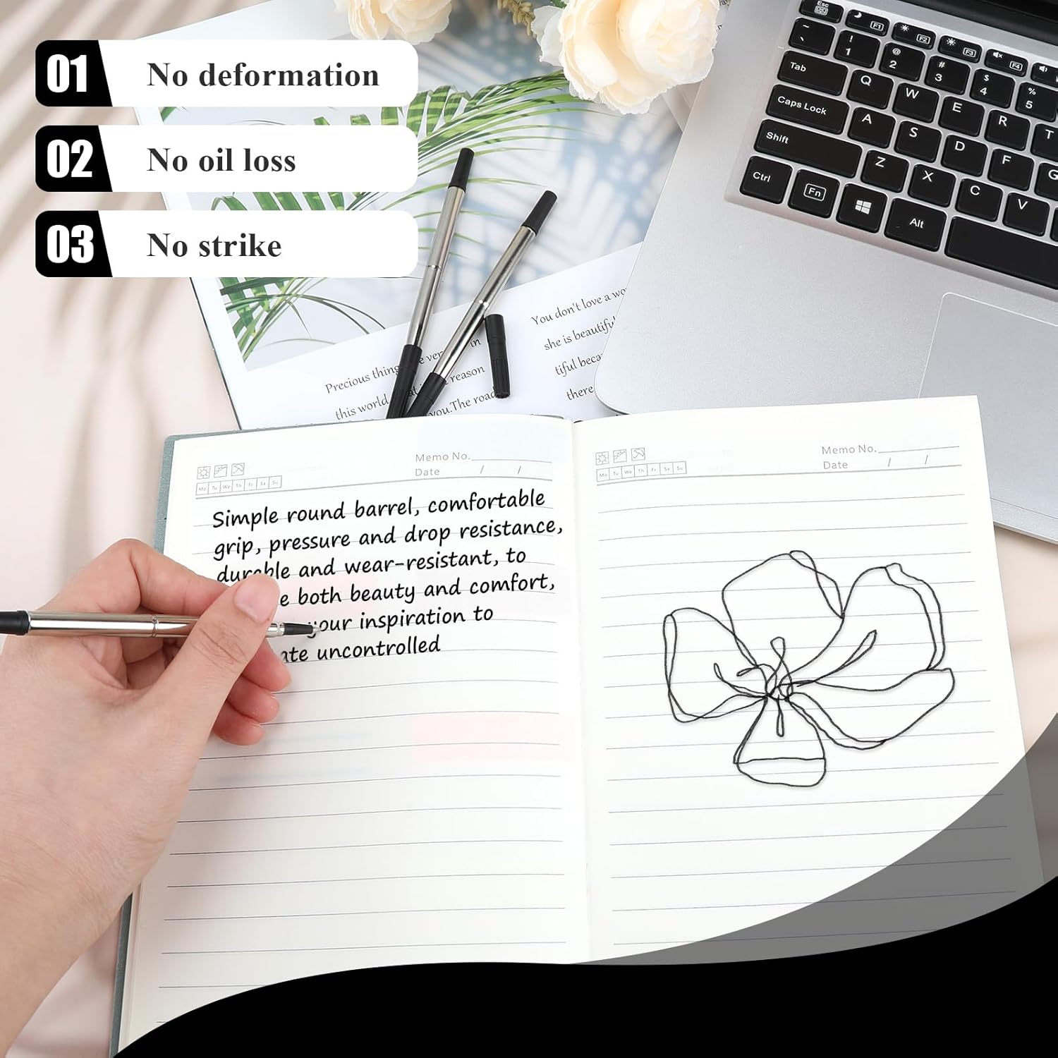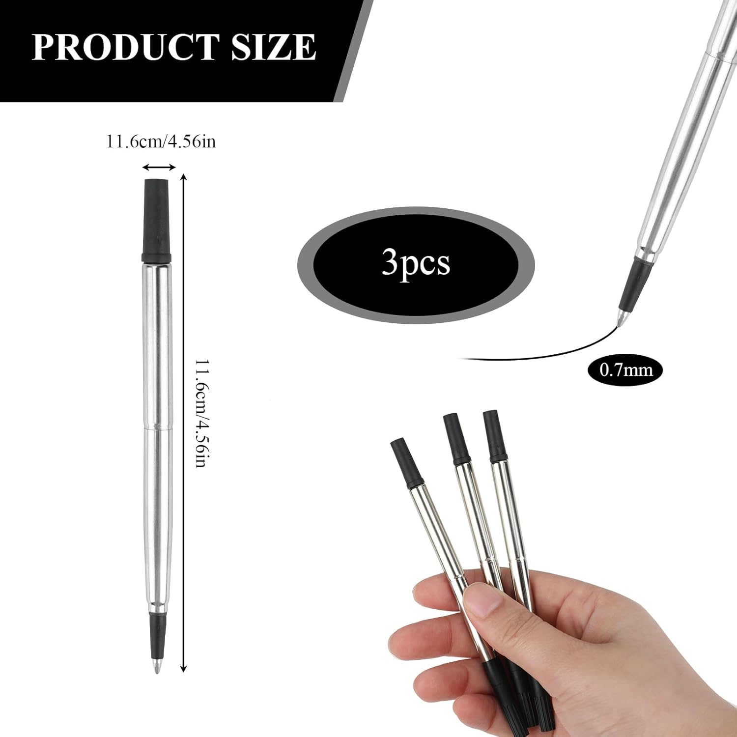 Perfetta vestibilità per le penne Parker Quink: sapientemente progettate per tutti i modelli di roller Parker Quink, queste ricariche per penne offrono una sostituzione perfetta e senza problemi, garantendo una scrittura fluida e continua e la compatibilità con le tue penne preferite. Inchiostro premium per una scrittura di qualità: ogni ricarica per roller Parker è caricata con inchiostro Quink nero di alta qualità, garantendo un flusso fluido e costante per una scrittura uniforme su vari tipi di carta, ideale sia per uso professionale che personale. Inchiostro nero vivido ed espressivo: l'inchiostro nero riccamente pigmentato contenuto in queste ricariche per penne roller migliora la tua scrittura con chiarezza e vivacità senza pari, perfetto per qualsiasi cosa, dagli appunti rapidi alla corrispondenza dettagliata. Punta media per una scrittura versatile: la ricarica del roller con punta media da 0,7 mm offre un equilibrio ideale per una varietà di attività di scrittura, perfetta per prendere appunti dettagliati o firme in grassetto e adatta per usi artistici e pratici. Confezione da tre per un'ampia fornitura: questo set include tre ricariche per penne Parker con inchiostro nero di qualità superiore, fornendo una soluzione duratura per le tue esigenze di scrittura in qualsiasi ambiente, che si tratti di ufficio, accademico o diario personale.