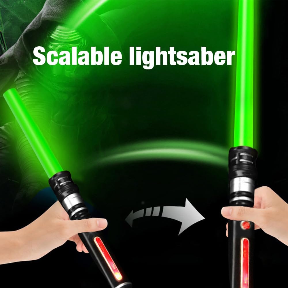[Design retrattile due in uno]: la sciabola leggera per bambini adotta un design retrattile e regolabile, e la lunghezza può essere estesa tra 46 cm e 84 cm, che è conveniente per i bambini da riporre e trasportare. Dotato di connettori speciali, due spade laser possono essere unite in una spada laser extra lunga e il metodo di gioco è più vario. [Luci colorate a 12 colori]: la spada luminosa per bambini ha una modalità lampeggiante a LED integrata (inclusi 3 colori opzionali di viola, blu e rosso), con blu, rosso e verde come colori principali, e 12 colori possono essere commutati liberamente attraverso la corrispondenza dei colori. Quando la battaglia si scontrano, la spada laser emetterà in modo sincrono effetti sonori ed luminosi che corrispondono alla scena per migliorare l'esperienza interattiva. [Effetti sonori Somata]: La sciabola leggera per bambini con effetti sonori somatosensoriali ha una funzione di rilevamento somatosensoriale. Ogni collisione attiverà un effetto sonoro elettronico che corrisponde all'azione, consentendo ai bambini di ottenere un'esperienza di combattimento realistica in giochi immersivi o giochi di ruolo. 2 colori con suono FX è comodo e sicuro e non ci sarà alcun peso anche se lo tieni più volte. [Funzionamento ultra conveniente]: (1) Premere il pulsante una volta per accenderlo o spegnerlo; (2) Le prime 7 pressioni passano a un singolo colore, e l'ottava pressione avvia il ciclo automatico a 7 colori lampeggiante; (3) Premere due volte rapidamente per attivare la modalità stroboscopica colore; (4) La sciabola leggera per i bambini può essere impiombata attraverso il filo di collegamento; (5) La sciabola luminosa con suono ha una voce indipendente interruttore controllato elettronico, che può attivare o disattivare l'effetto sonoro separatamente per ottenere la modalità silenziosa. [Applicazione multi-scenario]: la sciabola leggera per bambini è un partner divertente per i bambini! È adatto per una varietà di scenari come feste a tema Galaxy Warrior, regali di Natale, oggetti di scena di fantascienza, costumi di Halloween, spettacoli teatrali, riprese cinematografiche e televisive, giochi di ruolo, nonché feste di compleanno per bambini, snack party, ecc., per soddisfare diverse esigenze.