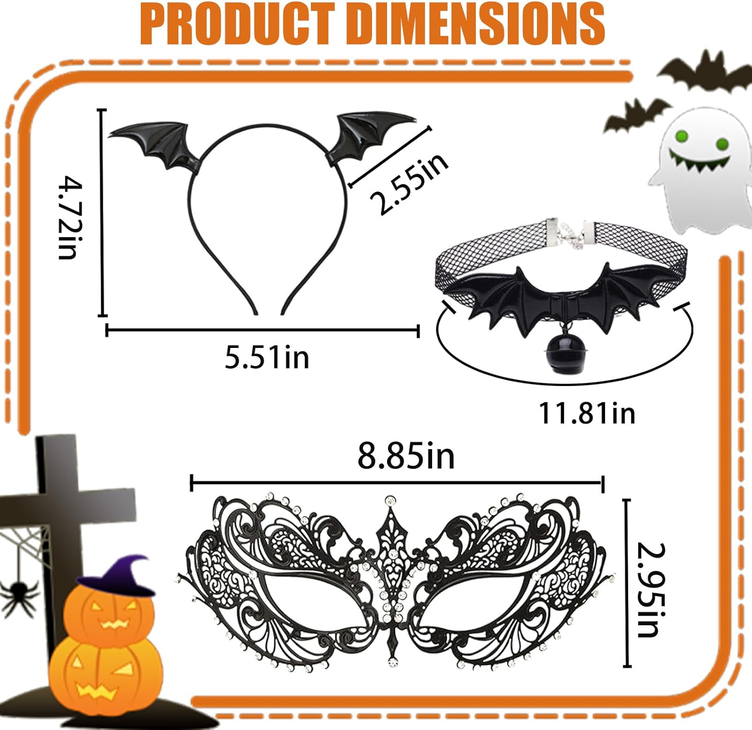 【Contenuto della confezione】1 Mascherina per gli occhi in pizzo da donna, 1 bat hair hoop and 1 bat choker, bat costume hair accessories for Halloween event dressing up. 【Materiale di prima qualità】Il nostro set di maschere in pizzo, ali di pipistrello realizzate in pelle PU e tessuto non tessuto, portatili di dimensioni ridotte e leggere, garantendo durata e praticità per ogni occasione. 【Design classico】La accessori per Costumi da Pipistrello è squisita nella lavorazione, comoda da indossare, leggera, è adatta per la maggior parte delle coppie di ballo di trucco, Halloween, festa di carnevale e altre occasioni, ti farà sicuramente risaltare e brillare alla festa. 【Scene da Utilizzare】Le maschere di Halloween sono adatte a tutti.Non sono adatte solo per le mascherate, ma puoi anche indossarle su carnevali, Capodanno e Halloween, garantendo che tu sia il centro dell’attenzione ovunque. 【Ottima scelta per Halloween】Questo accessorio da pipistrello per donne e ragazze è adatto a tutte le occasioni di Halloween. Puoi regalarlo ad amici, persone care, familiari e persino animali domestici per immergerli insieme nello spirito di Halloween.