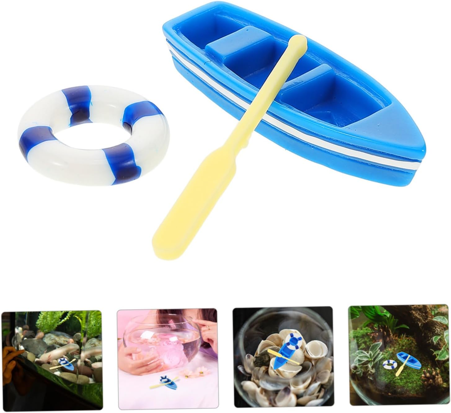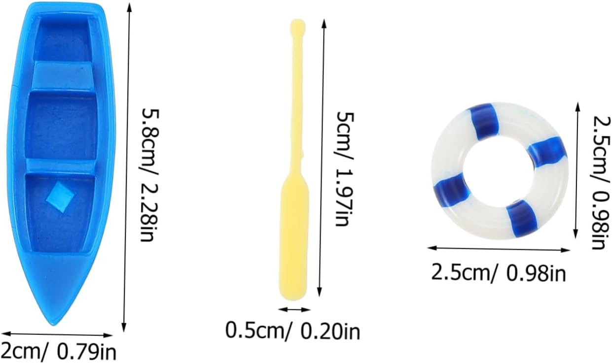 Materiale durevole: le barche in miniatura con remi sono realizzate con materiali in resina, sicuri e durevoli. Design pratico: puoi decorarle con altre miniature. Un'ottima attività per realizzare insieme decorazioni fai-da-te. Ampiamente usato: è adatto a una varietà di scene. puoi posizionare queste barche a casa, in ufficio o in un negozio di decorazioni per aggiungere un tocco di mare Accessori fotografici: queste barche con remi e salvagente sono accessori fotografici estetici per ravvivare foto o meravigliose decorazioni per la scrivania Universale: può essere utilizzato come decorazione per giochi da spiaggia in miniatura, paesaggistica in vaso, decorazione del giardino e decorazione della casa