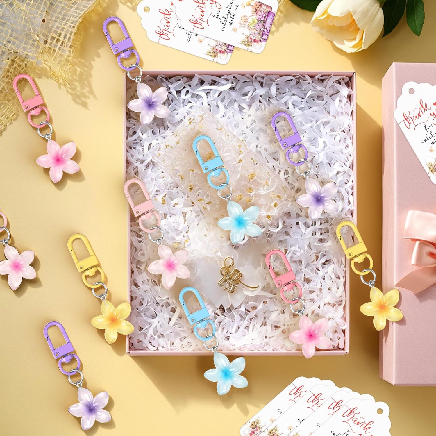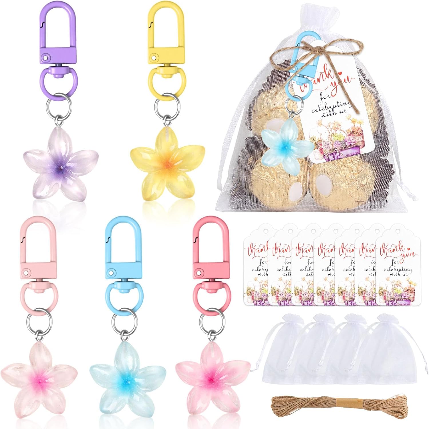 delizioso portachiavi è ottimo per accessoriare abiti tutti i giorni, aggiungendo un senso personalità durante i viaggi Adatto come feste compleanno, feste in classe, regalo calze Natale e così via portachiavi con fiori colorati è attacca facilmente a qualsiasi clip della borsa, degli zaini, della borsa e così via set regalo portachiavi con fiori adorabili sarà sorpreso dai bambini che dagli adulti delizioso ciondolo per borsa è un ottimo regalo per bambini, donne, figlie e amiche