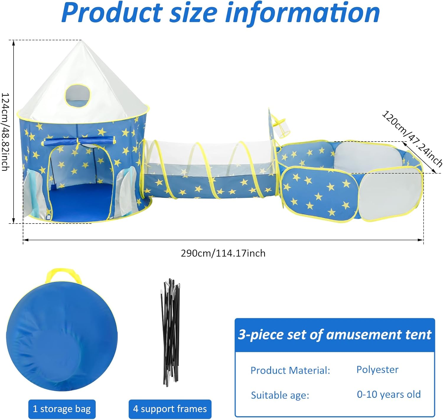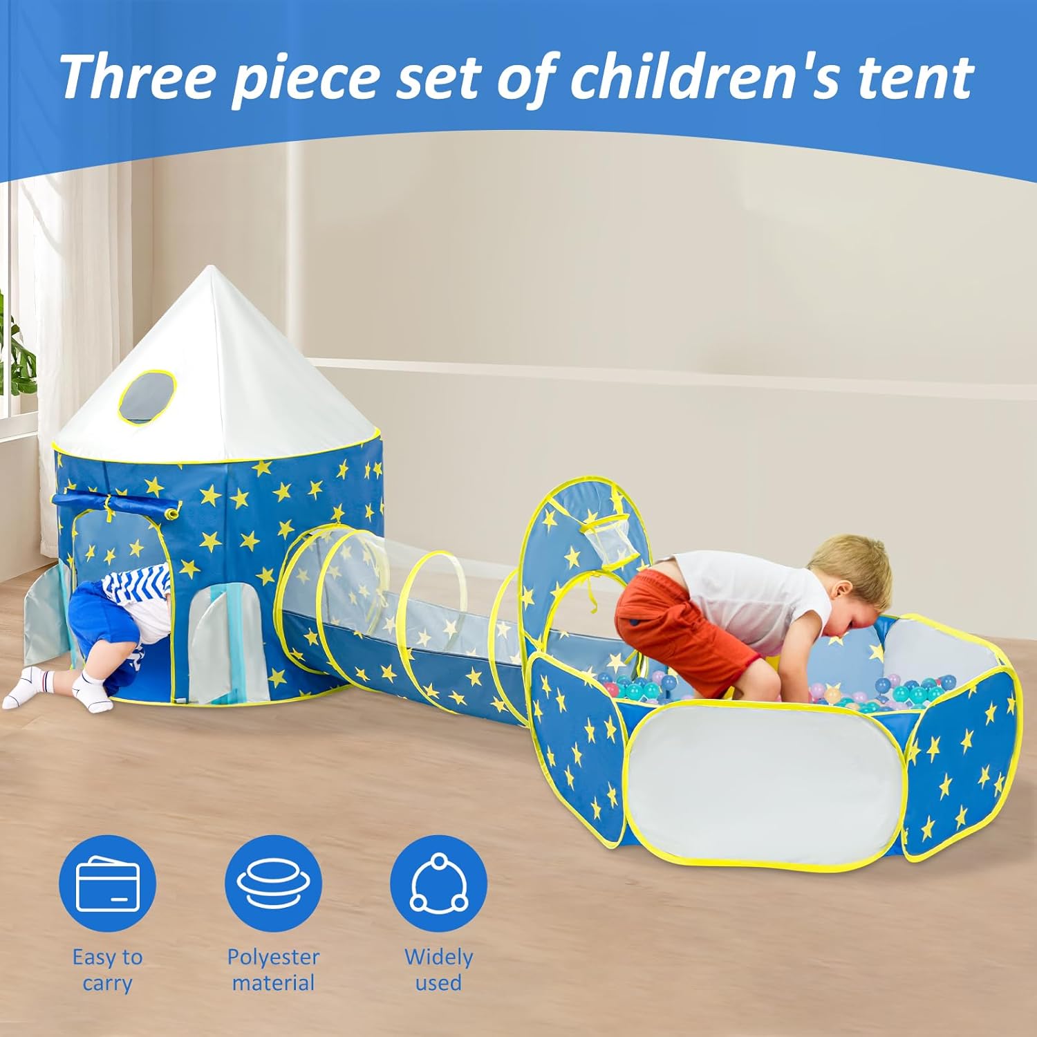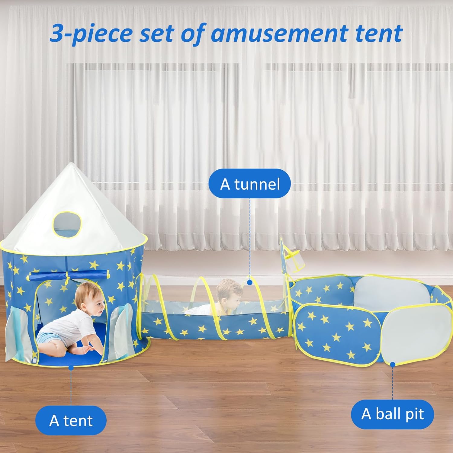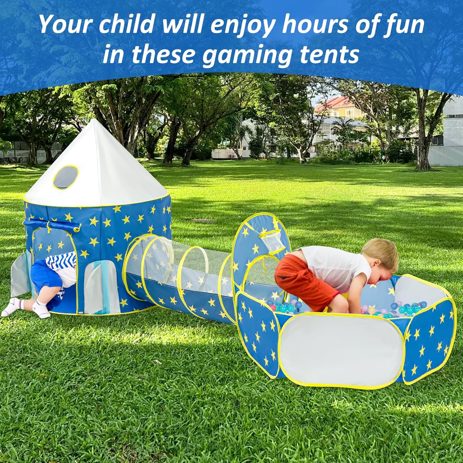 [Set da 3 pezzi] Include una tenda, un tunnel e una piscina di palline. Questi possono essere utilizzati insieme o singolarmente per soddisfare diversi stili di gioco. In questo modo i bambini possono immergersi in meravigliosi scenari di gioco e divertirsi per ore. Materiale in poliestere: il poliestere inodore, comodo, resistente e antistrappo è ideale per neonati e bambini. [Portatile] Grazie al design pieghevole, il tunnel può essere riposto in pochi minuti nella custodia, senza bisogno di spazio aggiuntivo. In questo modo puoi portarlo sempre e ovunque per ore di gioco. [Divertimento infinito] Questa tenda da gioco per bambini offre più divertimento ai bambini. Nascondersi, gattonare, saltare e ritirarsi: il bambino si divertirà per ore in queste tende da gioco. È un ottimo posto per imparare e divertirsi. Versatile: questo set di tende da gioco per bambini è perfetto per attività all'asilo, picnic, feste di famiglia, feste di compleanno e altro ancora. È anche un regalo ideale per i bambini.