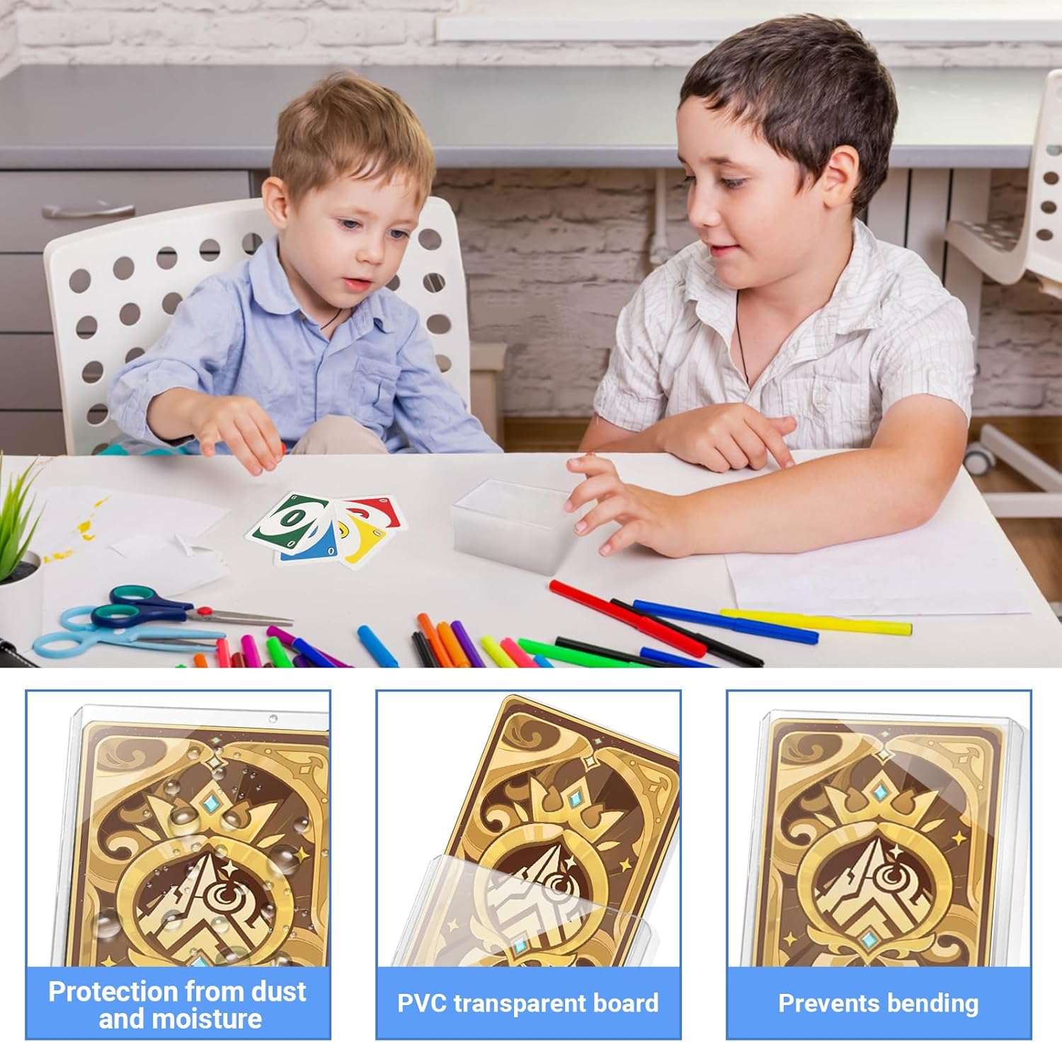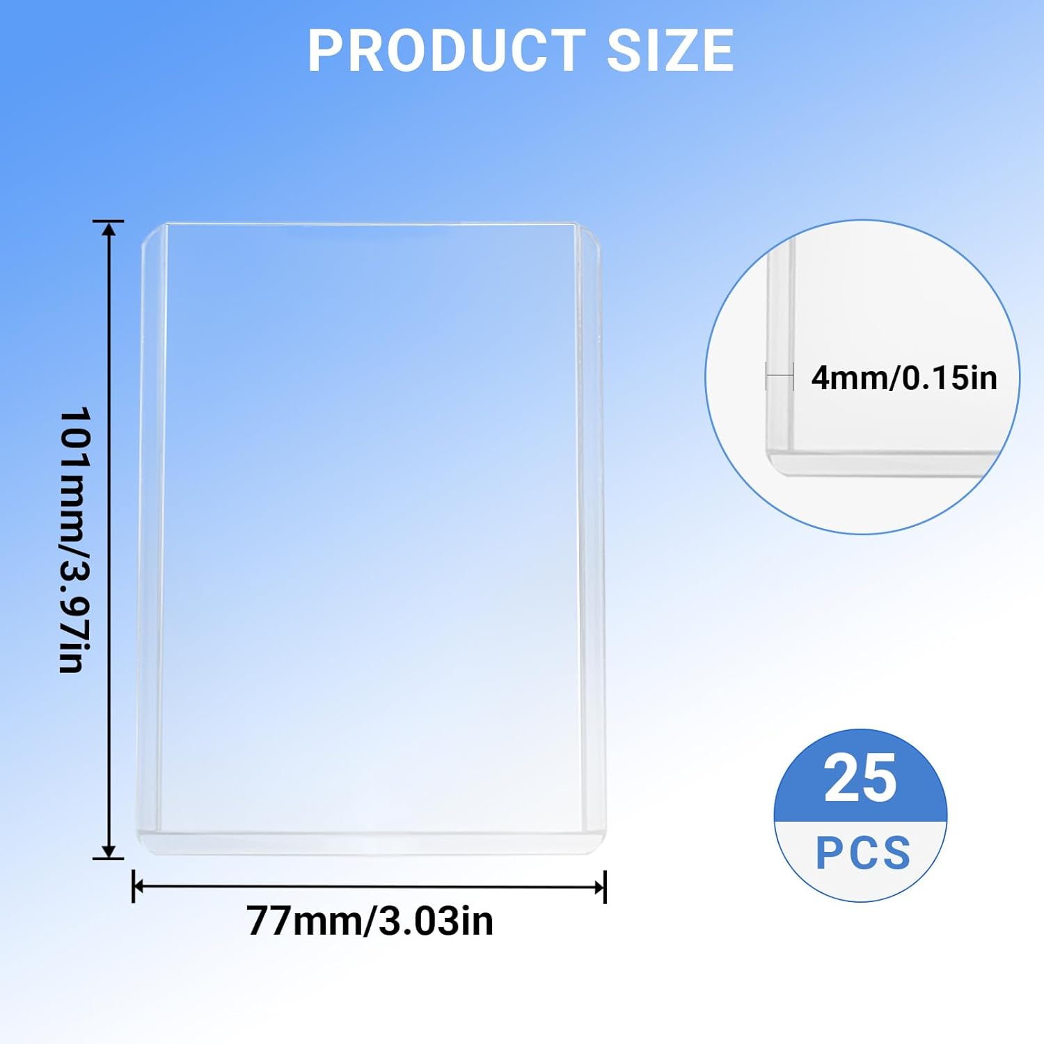 MATERIALE DI PRODUZIONE: Il nostro toploader è realizzato in plastica dura che avvolge le carte per mantenerle pulite ed evitare graffi, e può essere comodamente riposto in una varietà di portafogli DIMENSIONE DEL PRODOTTO: Il toploader pokemon 3" x 4" è perfetto per i collezionisti e i giocatori. Avrete un totale di 24 toploader per mantenere le vostre carte in forma smagliante, godetevi la sicurezza e la comodità di sleeve carte pokemon ALTAMENTE TRASPARENTE: Custo die per carte da collezione è realizzato in materiale trasparente con angoli arrotondati. Stampata in un unico pezzo e saldamente incollata. Il supporto per carte da collezione altamente trasparente e poco riflettente permette di apprezzare ogni dettaglio della carta ROBUSTO E DUREVOLE: Slive carte pokemon offre una migliore protezione per le vostre amate carte. Il robusto portacarte protegge le carte da graffi, polvere e piegature, mentre il design leggermente sovradimensionato riduce il rischio di danni agli angoli, rendendolo ideale per proteggere carte e foto di valore FACILE DA USARE: Il design intelligente consente di portarlo in tasca, in borsa o in valigetta senza doversi piegare o aggiungere ulteriore peso