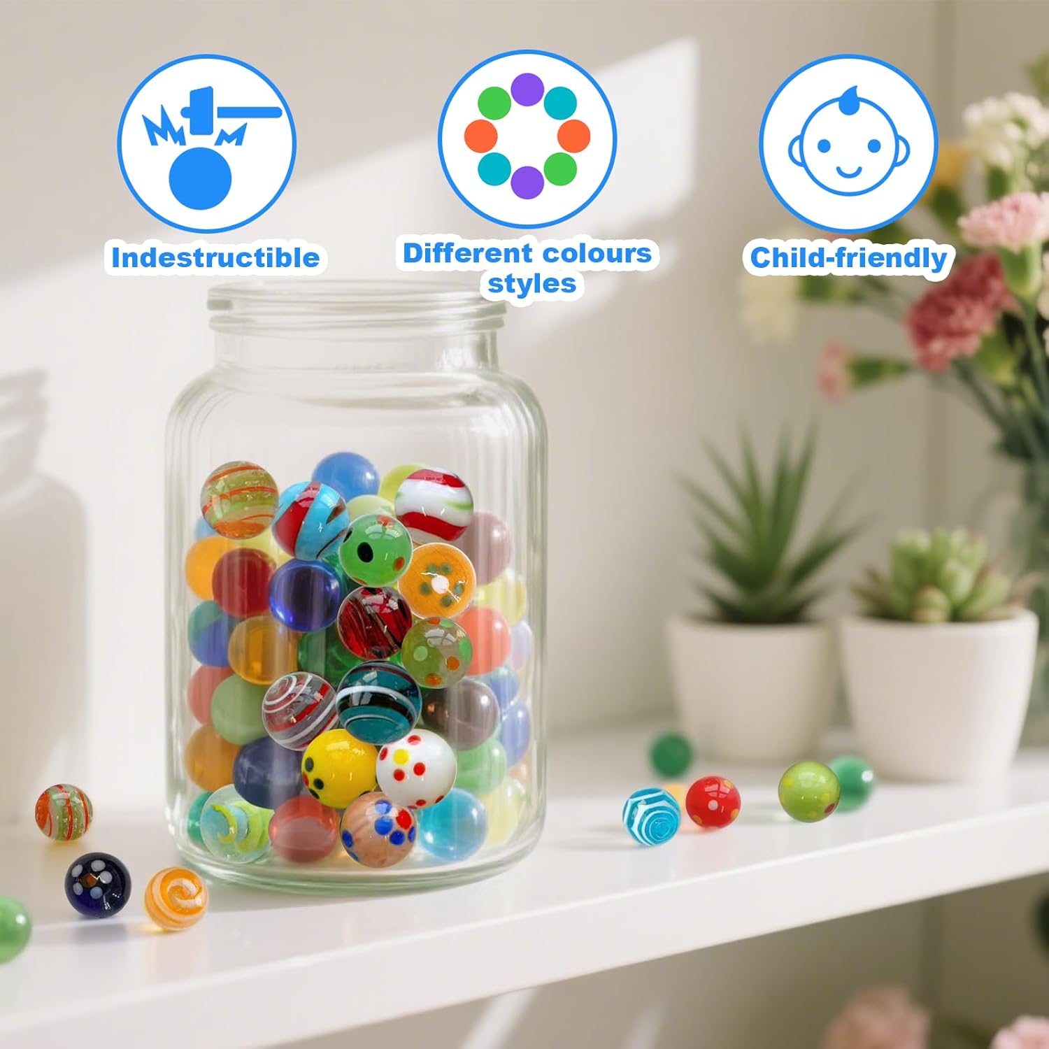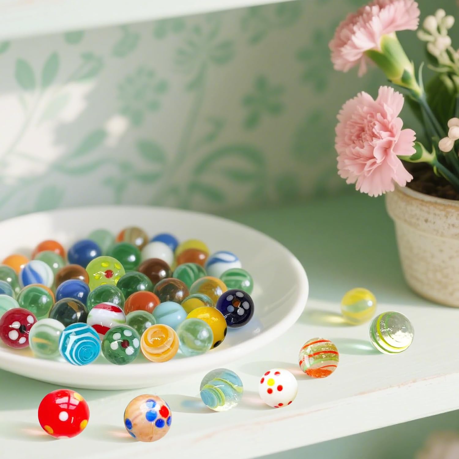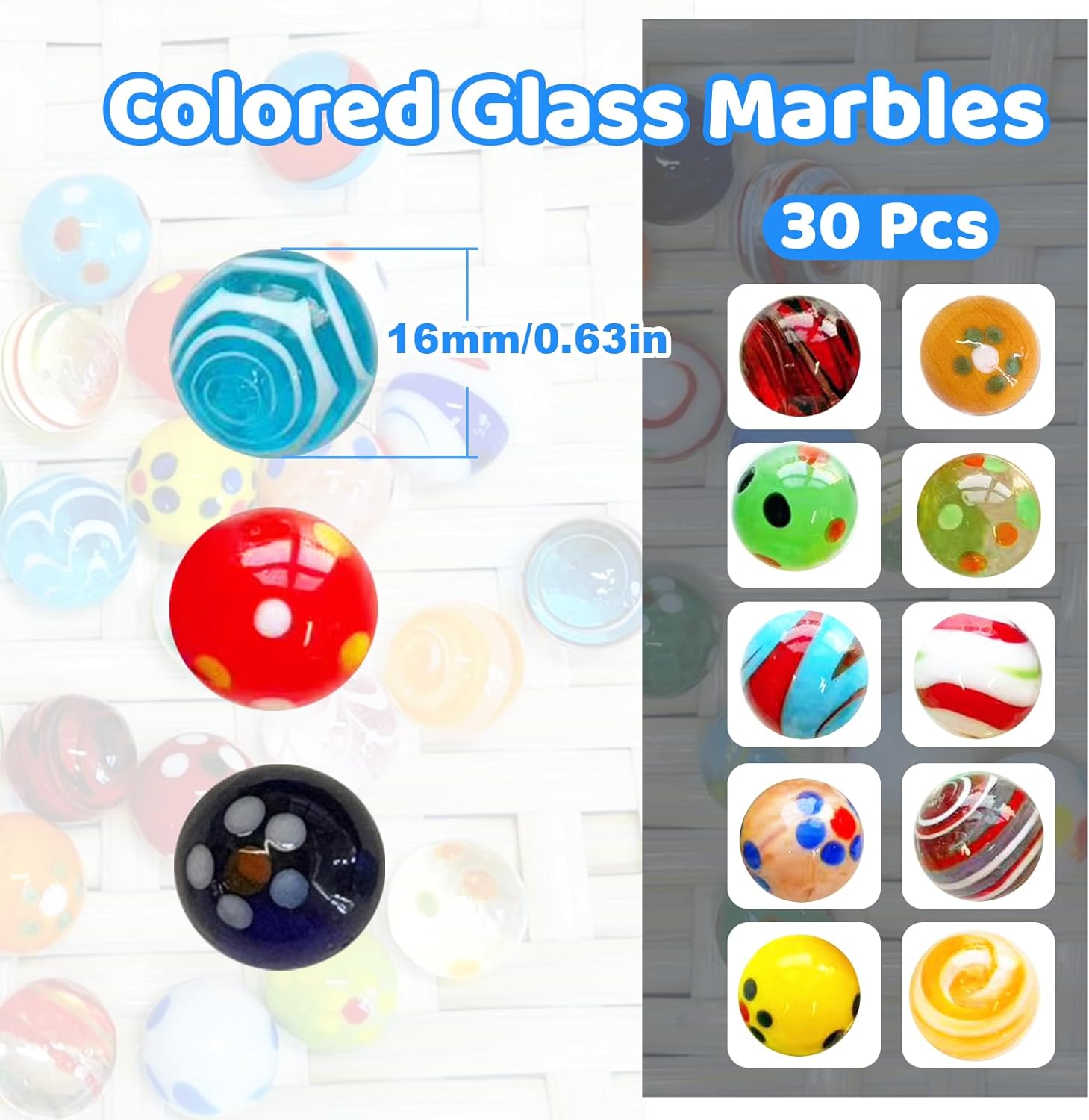 【Set ricco】Riceverai 30 biglie di vetro rotonde in diversi colori e con un diametro di 16 mm. Ogni palla è unica e ha un design speciale, non solo per i giochi ma anche per la decorazione della casa, una bellissima decorazione. 【Qualità eccellente】 Questa biglia di vetro è realizzata in materiale di alta qualità, la superficie è liscia e priva di sbavature, robusta e durevole, l'interno ha una trama colorata, può essere arrotolata bene nel terreno e offre una buona esperienza di gioco. 【Divertimento e giochi】 Queste biglie offrono ai bambini un divertimento senza fine attraverso semplici regole di gioco che aiutano i bambini a migliorare la coordinazione occhio-mano e le capacità motorie, allenare il pensiero e promuovere la crescita, pur essendo perfette per i giochi domestici e di festa. 【Ampie applicazioni】 Le biglie di vetro possono essere utilizzate come riempitivi per vasi, riempitivi per sacchetti regalo, decorazioni per acquari, decorazioni per patio e così via. Puoi usare la tua immaginazione per decorare ogni cosa nella tua vita e creare un meraviglioso valore emotivo. 【Nota】 Il nostro bellissimo marmo colorato è adatto a bambini di età superiore a 3 anni o adulti, i bambini devono essere sotto la supervisione di un adulto durante il gioco.