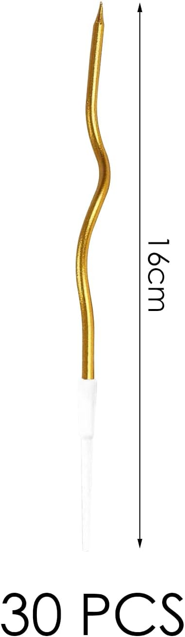 【Contenuto Del Prodotto】Riceverai 30 Pezzi Di Candele Dalla Curva Dorata. Ogni Candela Misura 16 Cm Ed È Di Colore Oro, Adatta Per La Decorazione Di Torte. 【Materiale Del Prodotto】 Questo Prodotto È Realizzato In Cera Di Paraffina, È Sicuro Ed Ecologico, Ha Una Lunga Durata Di Combustione E Non È Facile Da Sciogliere E Deformare. È La Scelta Ideale Per Realizzare Candele. 【Design Creativo】 Questo Prodotto Ha Un Design Unico Con Forma Curva Unica E Lucentezza Dorata Brillante, Che Conferisce Alla Tua Torta Un Effetto Decorativo Unico Ed È Molto Adatto Per Varie Celebrazioni. 【Ampia Applicazione】 Questo Articolo Non È Adatto Solo Per Torte Di Compleanno, Ma Anche Per La Decorazione Di Torte In Occasione Di Matrimoni, Feste E Altre Celebrazioni, Rendendo I Tuoi Eventi Più Emozionanti E Indimenticabili. 【Facile Da Usare】 Queste Candele Sono Facili Da Usare, Basta Inserirle Nella Torta, Non Sono Necessari Strumenti Speciali E Puoi Goderti Il Caldo Effetto A Lume Di Candela Dopo Averle Accese.