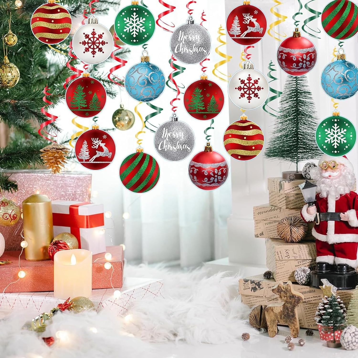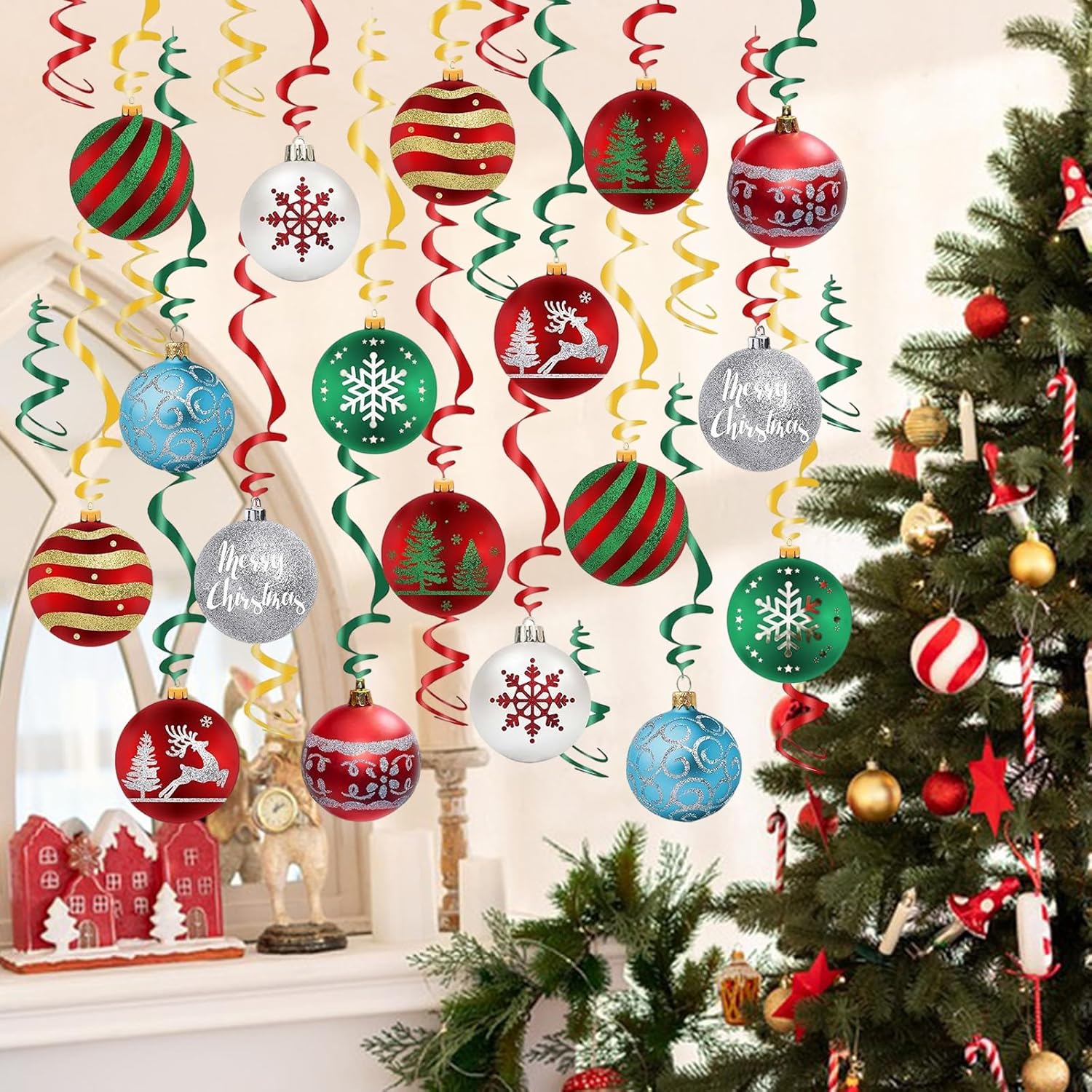 Vortice da appendere natalizio: riceverai 30 decorazioni natalizie da appendere, sono realizzate in lamina di plastica e carta, affidabile e riutilizzabile, e queste decorazioni natalizie aggiungeranno un'atmosfera più interessante alla tua festa. Ravviva l'atmosfera: le nostre decorazioni a spirale da appendere per feste di Natale sono luminose e colorate, e creeranno un'atmosfera allegra per grandi eventi e miglioreranno l'atmosfera della festa, lasciando ricordi indimenticabili. Decorazione fai da te: puoi appendere decorazioni fai da te che ti piacciono, da appendere al soffitto, alla finestra, al caminetto, alle sporgenze, alla porta, all'arco, ai rami degli alberi o ovunque tu voglia. Rosso e verde per evidenziare il tema natalizio e creare un'atmosfera natalizia. Facile da appendere: ogni decorazione natalizia da soffitto ha ganci in plastica che puoi facilmente appendere o rimuovere i biglietti natalizi da appendere. Dopo Natale, puoi rimuoverli con cura e conservarli per il prossimo Natale Ampia gamma di applicazioni: queste decorazioni per feste di Natale possono sorprendere i tuoi ospiti in diverse occasioni, come adatte per Natale, matrimoni, Halloween, San Valentino, feste di compleanno, ecc., Lasciate che la famiglia e gli amici sentano il tuo cuore.