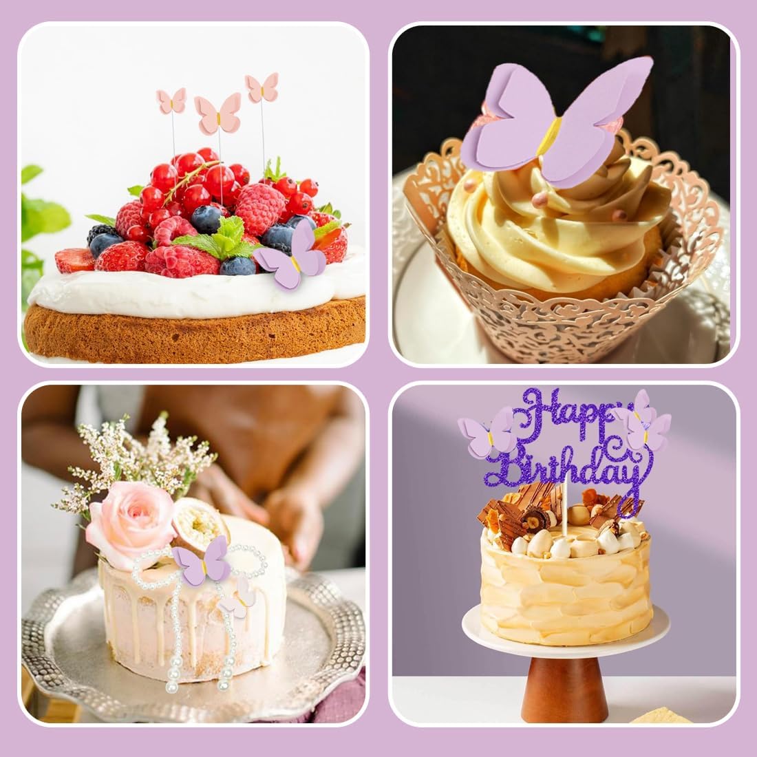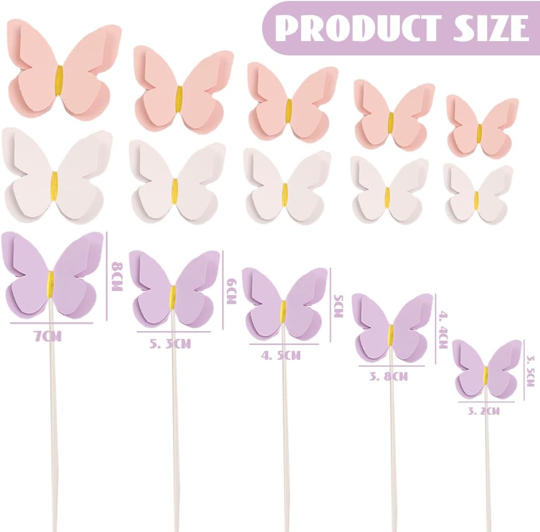 Combinazione di colori multipli: il topper per torta a farfalla contiene 3 colori (rosa, bianco e viola), 10 farfalle in ogni colore, 30 farfalle in totale in 5 dimensioni 7*8 cm/5,3*6 cm/4,5*5 cm/3,8*4,4 cm/3,2*3,5 cm. Ampio utilizzo: il topper per torta a farfalla può essere utilizzato come decorazione per torte, cupcake, gelati, formaggi, frutta o altri piatti. Le farfalle sono decorazioni perfette per Natale, matrimoni, compleanni, fidanzamenti e altre occasioni speciali. Esecuzione squisita: goffratura a doppio strato con design a stampa a caldo, consistenza delicata, senso tridimensionale del piede, i dettagli mostrano la qualità, in modo che la torta da ordinaria a squisita attiri l'attenzione, facile creare l'effetto di Netflix. Funzionamento flessibile fai-da-te: i toppers per torta a farfalla sono dotati di fili e punti adesivi, che possono essere piegati e modellati liberamente, e diversi colori e dimensioni di toppers a farfalla possono essere utilizzati insieme e attaccati per ottenere decorazioni personalizzate. Pratici per la cottura: i toppers per torta a farfalla sono realizzati in carta di alta qualità, sicuri ed ecologici, inodore, leggeri e non schiacciano le torte, facili da esporre, è un pratico oggetto decorativo per gli amanti della pasticceria e per i negozi di dolci.