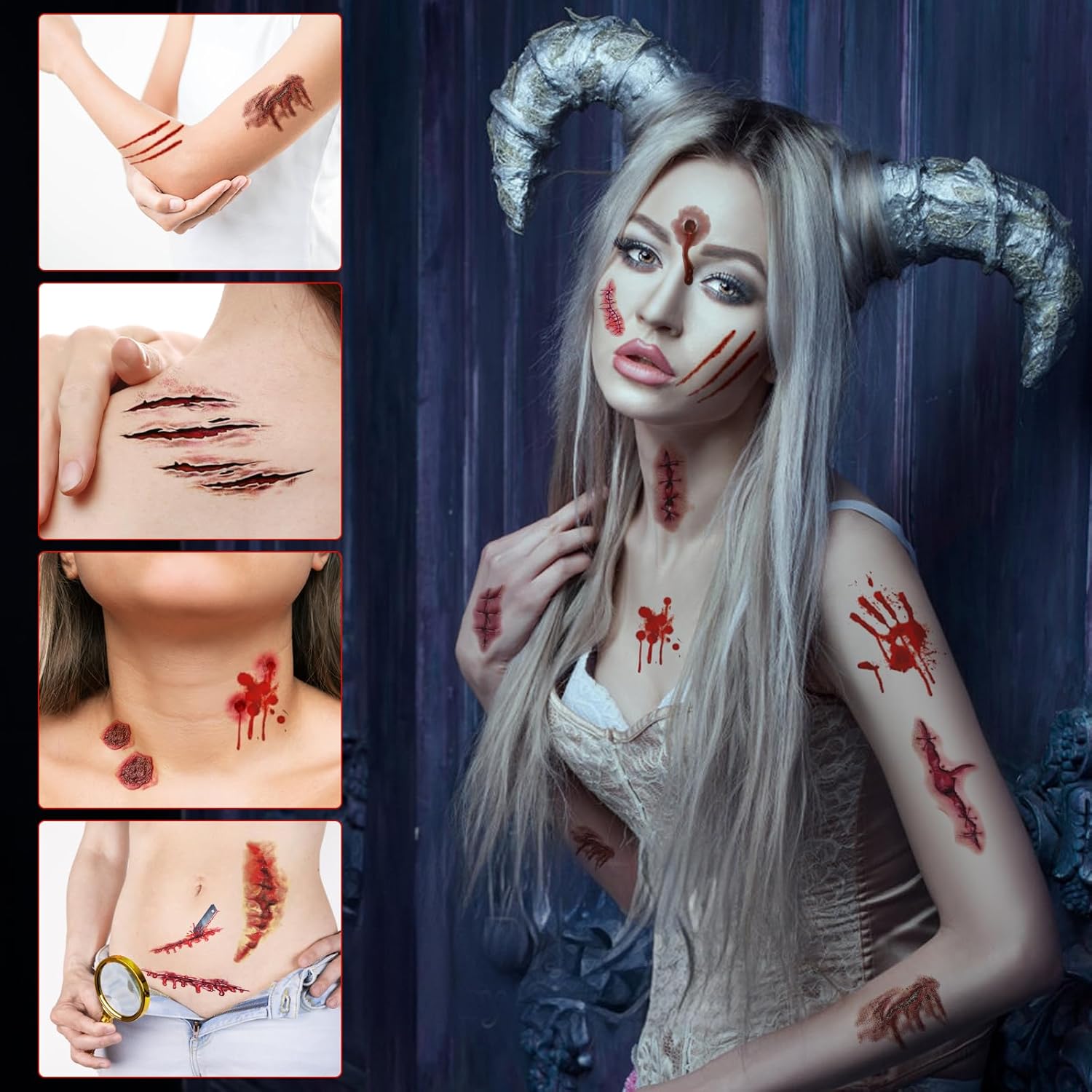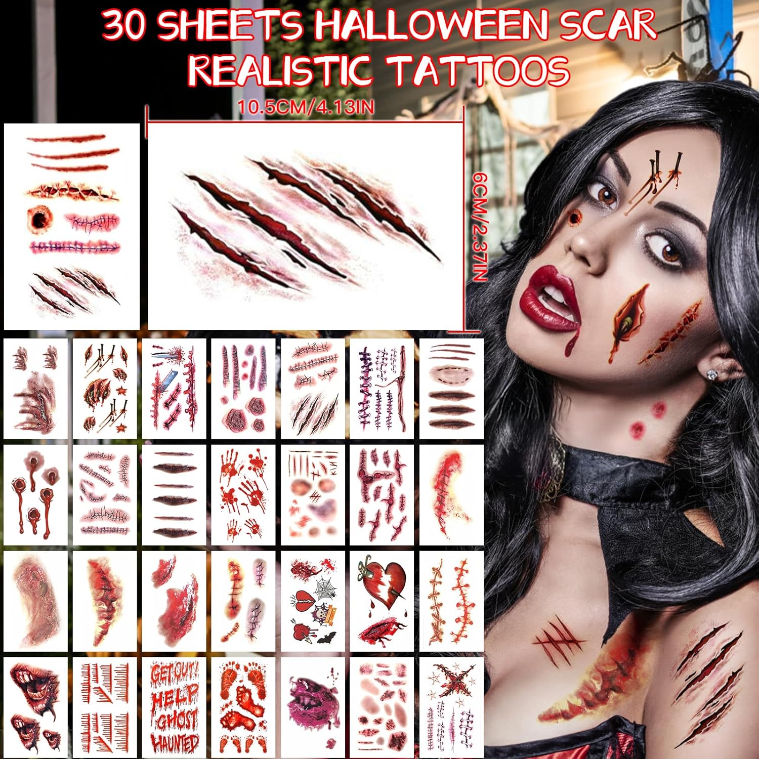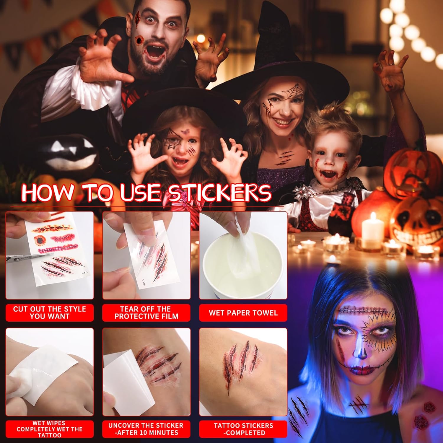 【Sicuro e delicato sulla pelle】 Il tatuaggio della cicatrice di Halloween utilizzava inchiostro ambientale e colla protettiva per l'ambiente, delicato sulla pelle, non tossico e sicuro. Questi tatuaggi con cicatrici sanguinanti e ferite horror sono divertenti per tutte le età, compresi bambini e adulti. Questo accessorio per cicatrici del tatuaggio di Halloween perfeziona il tuo travestimento di Halloween, puoi goderti la notte dell'orrore del Giorno dei Morti. 【Effetto realistico】30 fogli di tatuaggi per cicatrici per il trucco di Halloween dal design unico, ogni foglio contiene più motivi, gli adesivi possono essere attaccati su braccia, spalle e altre parti del corpo. Che sembrano estremamente realistici e naturali, hanno un effetto spaventoso e spaventoso e ti rendono immediatamente il centro della festa. 【Facile da usare e rimuovere】Ritaglia il tuo motivo preferito, posiziona il disegno nella posizione desiderata e premi delicatamente sulla carta di supporto con un panno umido per 30 secondi, rimuovi la pellicola protettiva e il gioco è fatto! Se vuoi rimuoverlo, puoi anche usare olio per bambini, olio per il corpo o olio d'oliva per rimuoverlo facilmente. 【Impermeabile e durevole】 Il tatuaggio della cicatrice per il trucco di Halloween è impermeabile e resistente al sudore e dura da 3 a 5 giorni. Una volta applicati, questi fantastici tatuaggi non si lavano via. Quindi puoi essere sicuro che il tuo trucco di Halloween durerà per tutta la festa di Halloween. 【Ampiamente usato】 I tatuaggi temporanei hanno una varietà di disegni di motivi spaventosi, un ottimo trucco per stupire e spaventare uomini, donne e i tuoi amici. Ideale per feste di Halloween, La notte dei morti, Mardi Gras, cosplay, arte, servizi fotografici, progetti di artigianato e molto altro