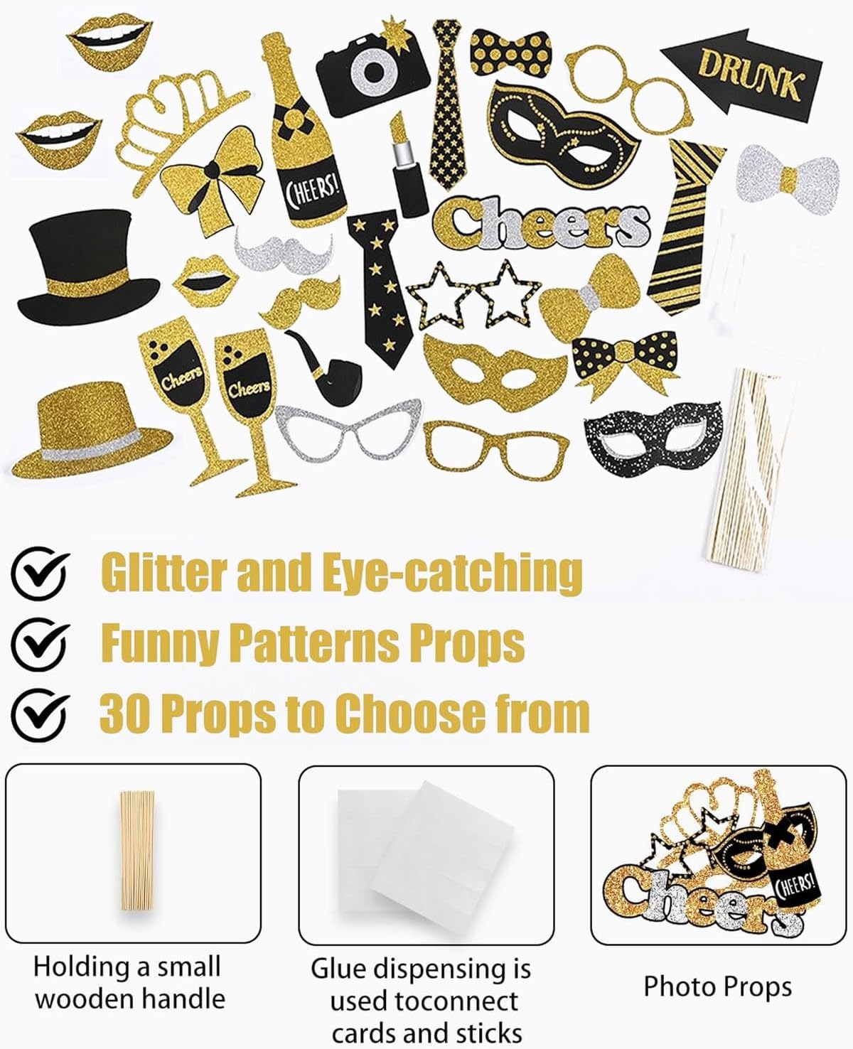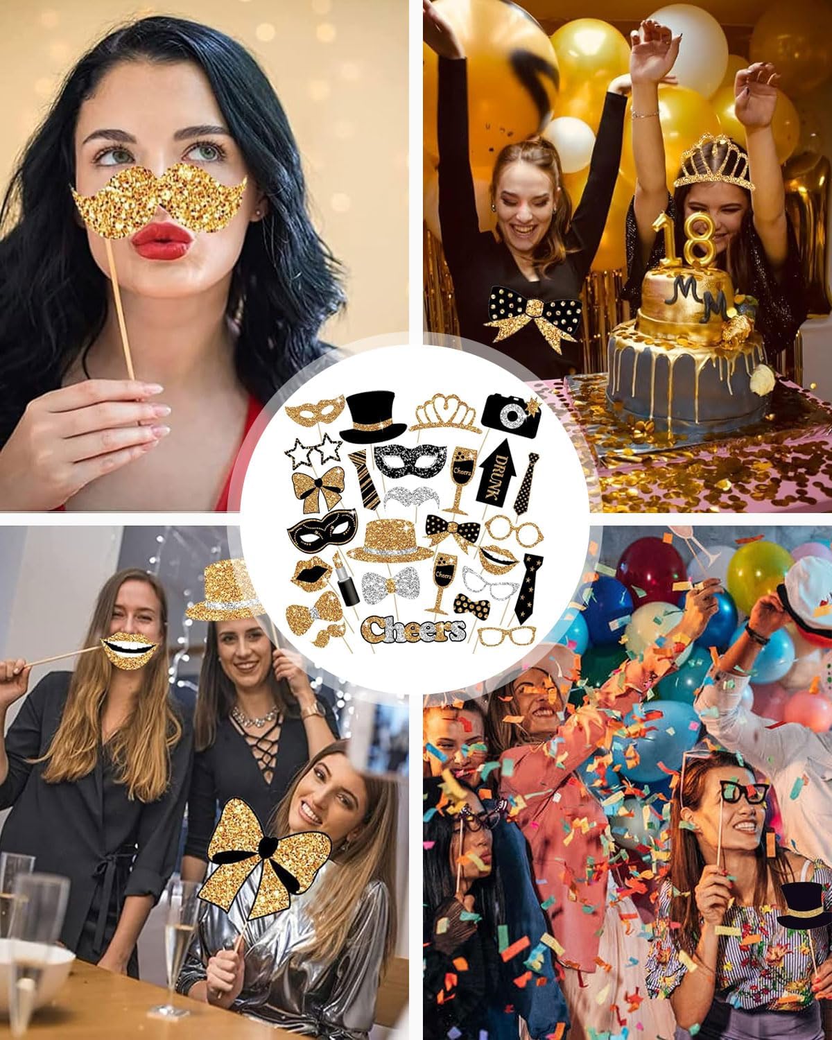 Accessori fotografici alla moda: il set di accessori per cabine fotografiche contiene 30 diversi accessori alla moda e divertenti, come cravatte, bicchieri, baffi, cappelli, labbra per baci, corone, occhiali e altro ancora, in una vasta gamma di stili per soddisfare le tue esigenze. Adatto a tutte le occasioni: questi divertenti accessori fotografici di carta per feste sono la decorazione ideale per compleanni, Natale, carnevale e feste di Capodanno, party e qualsiasi evento fotografico. I nostri accessori fotografici per feste creeranno un'atmosfera divertente. Materiali di alta qualità: realizzato con cartone di alta qualità, include bastoncini di bambù e adesivi resistenti, quindi è facile da assemblare e molto resistente. Realizzato principalmente con materiali di carta, è ben rifinito, ha un aspetto elegante, i motivi sono chiari e vivaci e non si danneggia facilmente. Facile da installare: basta un semplice assemblaggio. Basta attaccare i chiodi di bambù in dotazione con adesivi su ogni accessorio della cabina fotografica. Quindi sollevare l'accessorio davanti al viso, sopra la testa, ecc. Scattare la foto in qualsiasi momento. Aggiungi divertimento alla tua festa: questi accessori fotografici da noi progettati contengono molti elementi divertenti che renderanno la tua festa carina e originale, oltre a decorare i tuoi oggetti e creare un effetto raffinato quando scatti le foto.