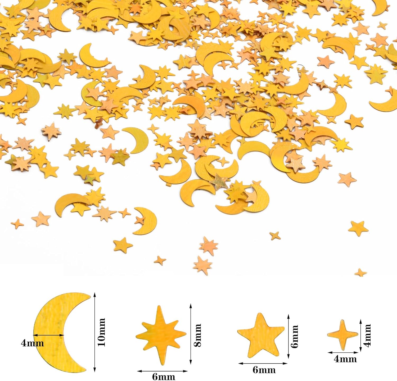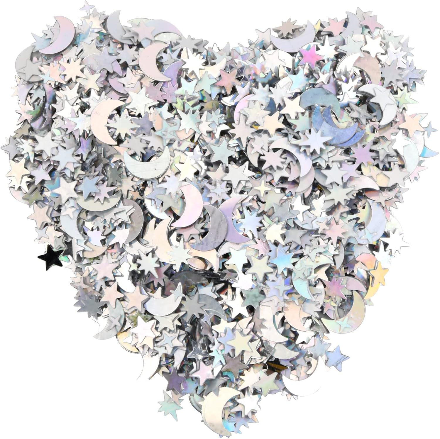 【Decorazione di stelle e frammenti di luna】 Questi adorabili coriandoli di luna e stelle possono essere utilizzati per regali o decorazioni da tavola, possono riflettere diverse luci sotto le luci, creando un'atmosfera molto romantica, perfetta per la posa. Fai risaltare il tuo regalo o la tua festa di matrimonio! La confezione include: decorazioni con stelle e luna da 30 g, circa 4000 pezzi, diametro stella 6 mm, luna 10 mm. Disponibile in argento/oro. 【Materiale di alta qualità】 I frammenti di stella lunare sono realizzati in PVC laser olografico, che non sbiadisce, non si inumidisce né si deforma facilmente se esposto all'acqua. Sicuro ed ecologico, non tossico e innocuo. 【Decorazione Scintillante】 Queste paillettes a stella e luna sono fatte di forme di stella e luna, con superficie liscia e colori brillanti e belli, brillano sotto la luce e si trasformano in colori laser multicolori, sufficienti per attirare l'attenzione! 【Ampia applicazione】 I bellissimi e delicati pezzi di stelle e luna sono molto adatti per la decorazione o la realizzazione artigianale. Usalo per decorare la tua tavola, cartoline, album, scatole regalo e altro ancora. Può essere utilizzato come decorazione natalizia per varie feste, compleanni, San Valentino, Natale, ecc. E può creare un'atmosfera bellissima e da sogno!
