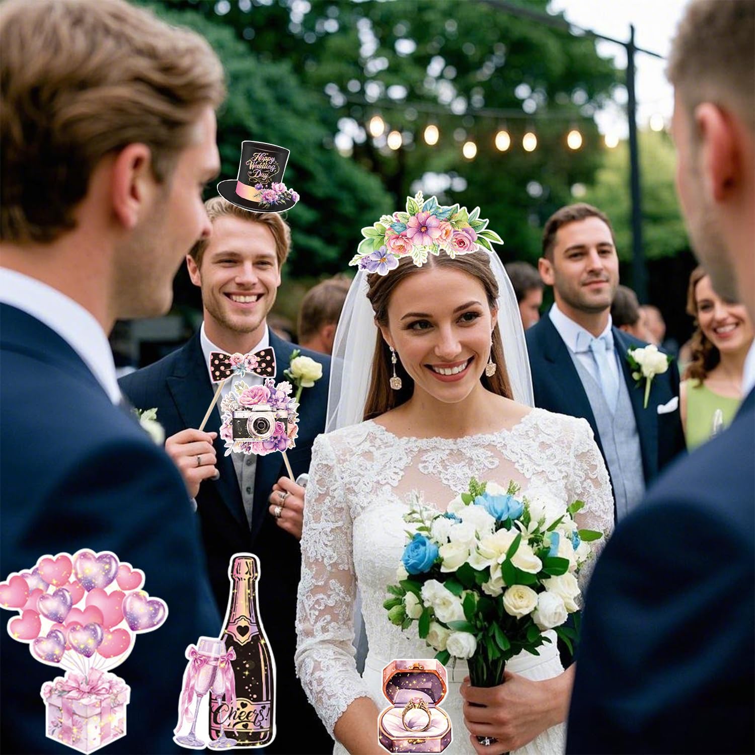 🎉【Festa di matrimonio】Set da 30 pezzi di oggetti di scena per foto di matrimonio in carta, incluso velo, scatola per anelli, oggetti per la futura sposa e altro ancora, perfetti per le foto di matrimonio. ✨ 【Design a tema】 Composizioni floreali rosa e viola con tipografia romantica, caratterizzate da un'estetica morbida e delicata e creano senza sforzo foto di matrimonio suggestive. 🤵【Selezione diversificata】Assortimento di diverse categorie con oggetti decorativi e interattivi per foto di gruppo. 💐【Facile da usare】Facile da configurare grazie alla struttura in carta leggera per una facile movimentazione, adatto per matrimoni e fotografie all'aperto. 👰【Usi versatili】L'ampio set da 30 pezzi arricchisce i servizi fotografici di matrimonio e le interazioni delle feste con dolci accenti cerimoniali e crea un'atmosfera ancora più suggestiva.