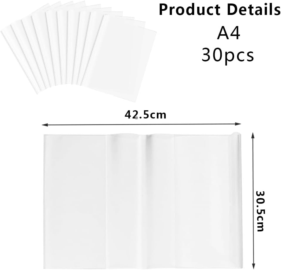 【Contenuto della confezione】: 30 copertine per libretti incolore, trasparenti e cristalline. 【Materiale durevole】: materiale PVC, impermeabile, resistente all'usura, forte flessibilità, nessuna deformazione dopo l'arricciatura, protegge efficacemente il libro dall'umidità. 【Design flessibile】: grazie al design intelligente, le copertine si adattano a diversi spessori di libri. In questo modo anche i libri più spessi sono protetti in modo ottimale. 【Protezione perfetta】: La copertina per libretti / quaderni è un aiuto efficace per proteggere quaderni, libri di lavoro, quaderni, scatole di quaderni e libri da polvere, sporco, umidità, pieghe, strappi e orecchie di cane. 【Uso versatile】: Ideale per la scuola, l'università, l'ufficio o la casa - le nostre copertine per libri mantengono i vostri preziosi documenti organizzati e protetti.
