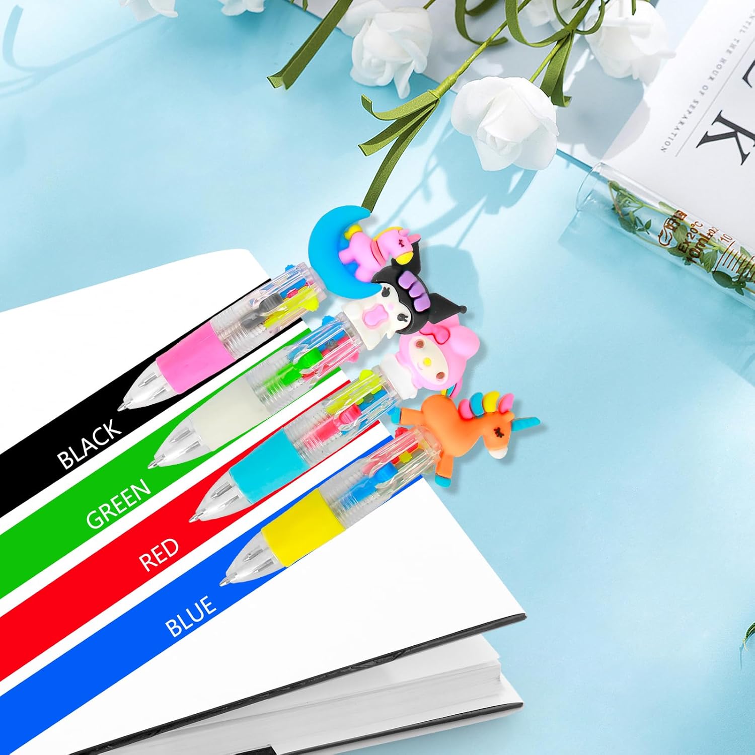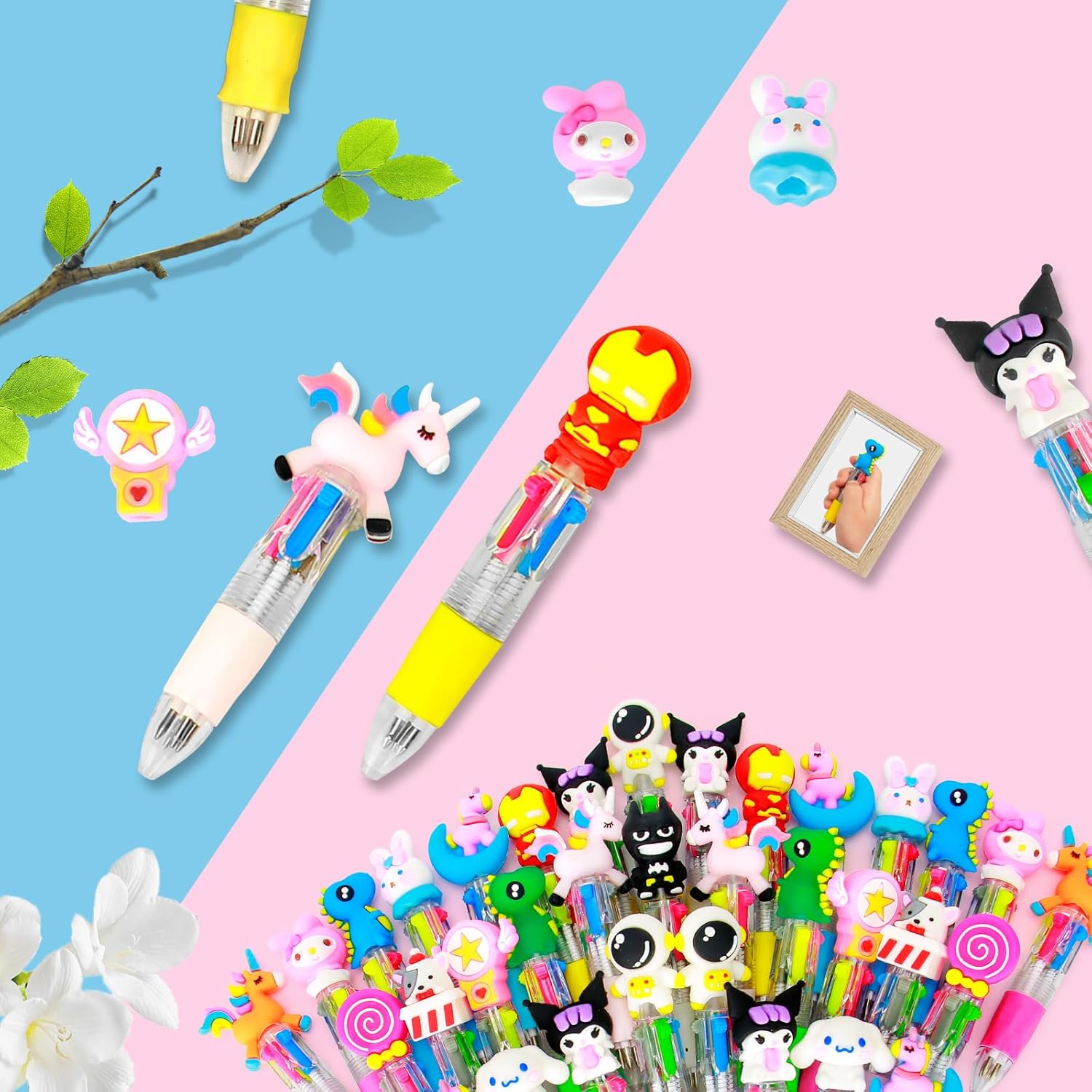 Penna Kawaii Multicolore Per Bambini - Gadget compleanno bambini penne colorate design ergonomico, che la rende più comoda da tenere in mano, progettata appositamente per le piccole mani dei bambini, realizzata in plastica resistente, in grado di mostrare motivi di animali dei cartoni animati e garantire portabilità e colori intensi . Commutazione Fluida - Gadget compleanno bambini meccanismo di commutazione semplice, con 4 colori brillanti (blu, nero, verde e rosso) tra cui scegliere, che consente ai bambini di scegliere facilmente il colore di cui hanno bisogno, aggiungendo comodità d'uso, solo una penna multicolore Equivalente alla funzione di più penne monocolore, risparmiando spazio e costi. Bomboniere Per Feste Di Compleanno - Le penne a sfera colorate per bambini servono come bomboniere, sono facili da distribuire ai più piccoli che partecipano alla festa e aggiungono anche un'atmosfera gioiosa alla festa. Divertimento - Matite gadget compleanno bambini 30 penne a sfera decorate con personaggi dei cartoni animati aggiungono divertimento e dolcezza al regalo. Regalini fine festa compleanno sono adatte a bambini di tutte le età e possono soddisfare le preferenze di bambini diversi. Scelta Del Regalo - Le penne a sfera per bambini dei cartoni animati sono adatte per regali per il rientro a scuola, Festa dei bambini, regali per feste di compleanno per bambini, feste di laurea, Natale, Ringraziamento e Capodanno, che possono portare loro più colori e creatività.
