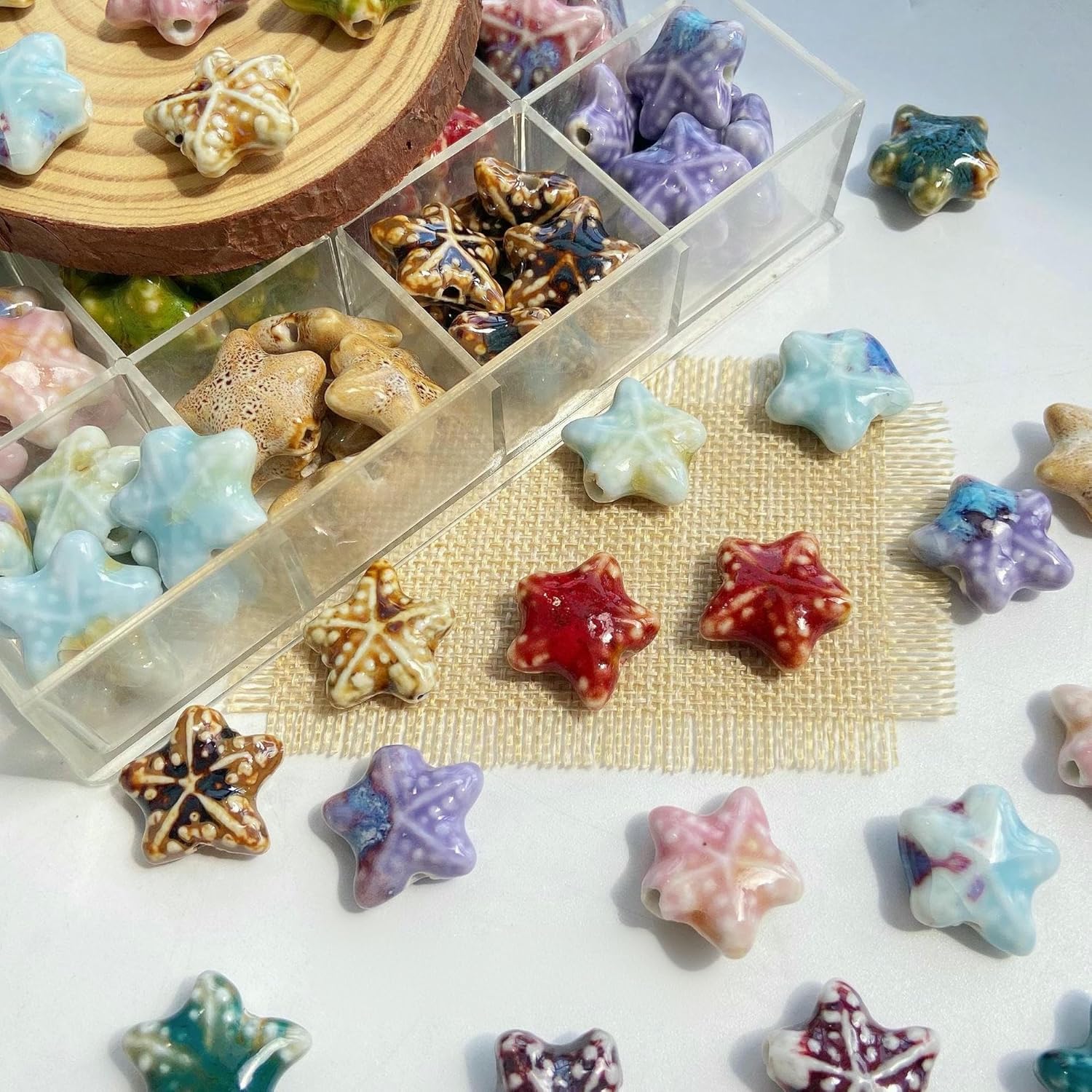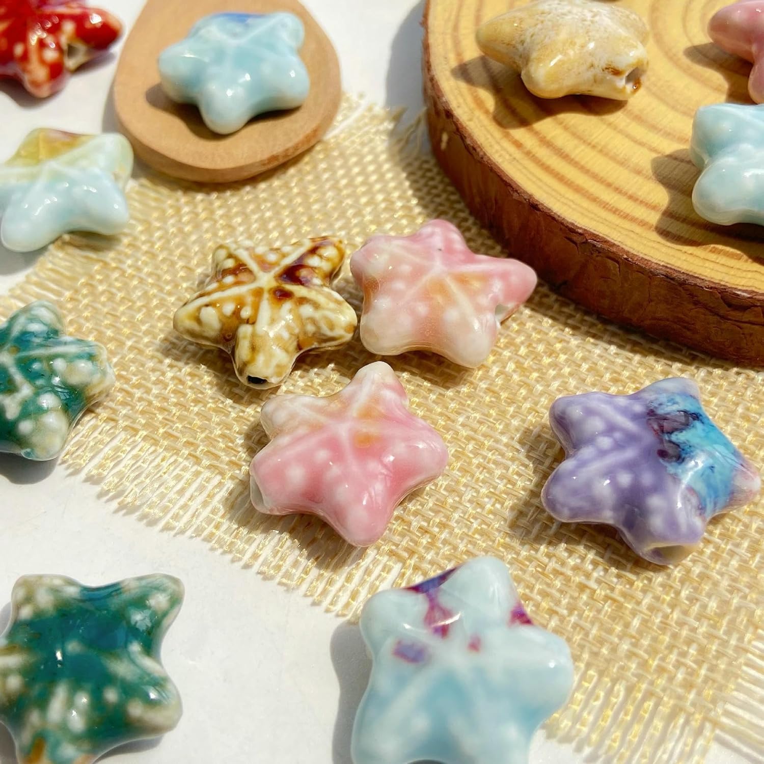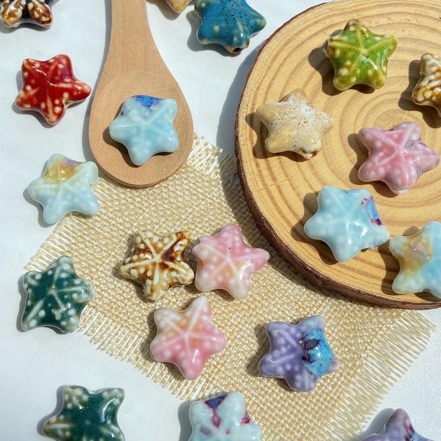 Perline sfuse in ceramica smaltata a forma di stella marina, dimensioni: 21 mm, diametro del foro: circa 3 mm, 14 colori, 30 pezzi/confezione Queste perle di porcellana a forma di stella marina fatte a mano sono realizzate in ceramica, hanno un aspetto liscio, non si rompono o sbiadiscono facilmente, sono comode da indossare e possono essere utilizzate a lungo Queste perline sfuse in ceramica a forma di stella marina sono perfette per essere utilizzate con cordini in pelle, corde di canapa, strisce di tessuto intrecciato e altri materiali per perline per arricchire le tue possibilità di design con perline Queste perle di ceramica colorate sono progettate a forma di stella marina, con colori intensi e un aspetto unico, perfette per braccialetti di perline per una vacanza al mare Queste graziose perline artigianali a forma di stella marina in porcellana sono perfette per realizzare braccialetti, collane, orecchini, ciondoli, portachiavi e vari lavori fai da te